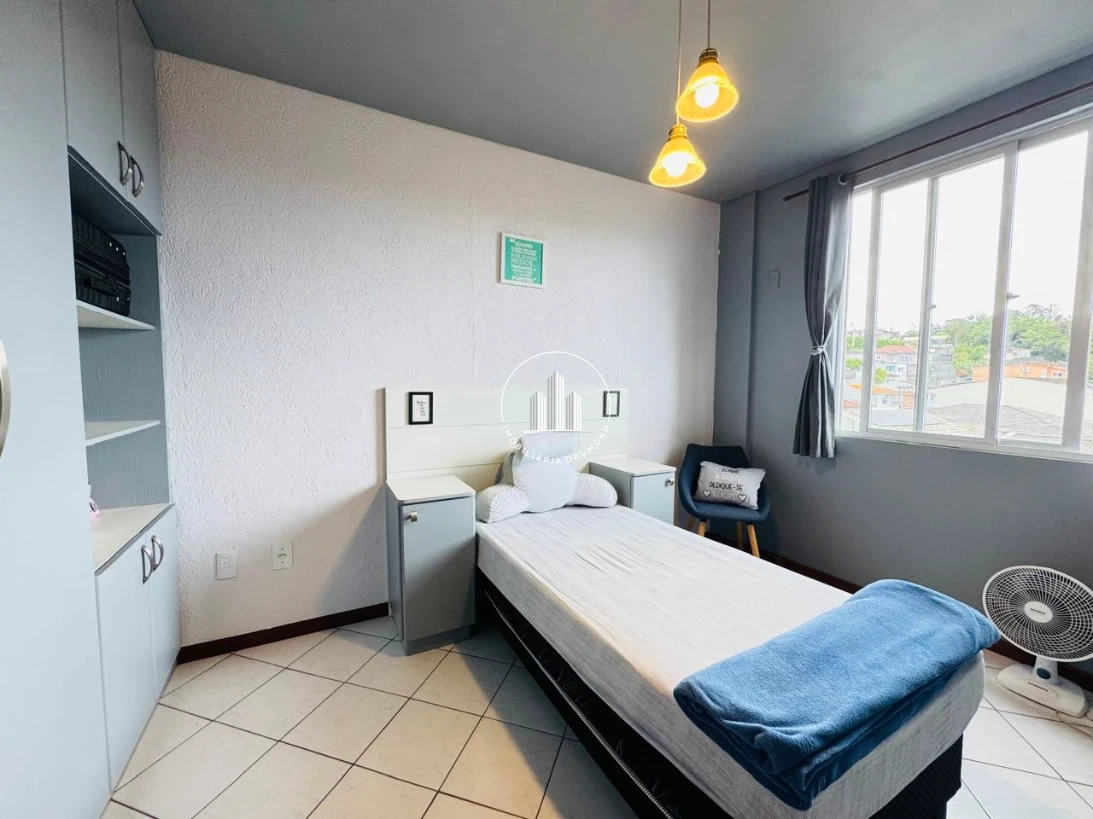 Apartamento 2 quartos em Praia Comprida, São José com 60,85m² privativos e vista da montanha. O imóvel possui 2 dormitórios, 1 banheiro e área total de 76,45m², construído em 1999 e em ótimo estado de conservação. A posição solar manhã em todos os cômodos garante ambientes bem iluminados durante todo o dia, sendo um apartamento pronto para morar.
