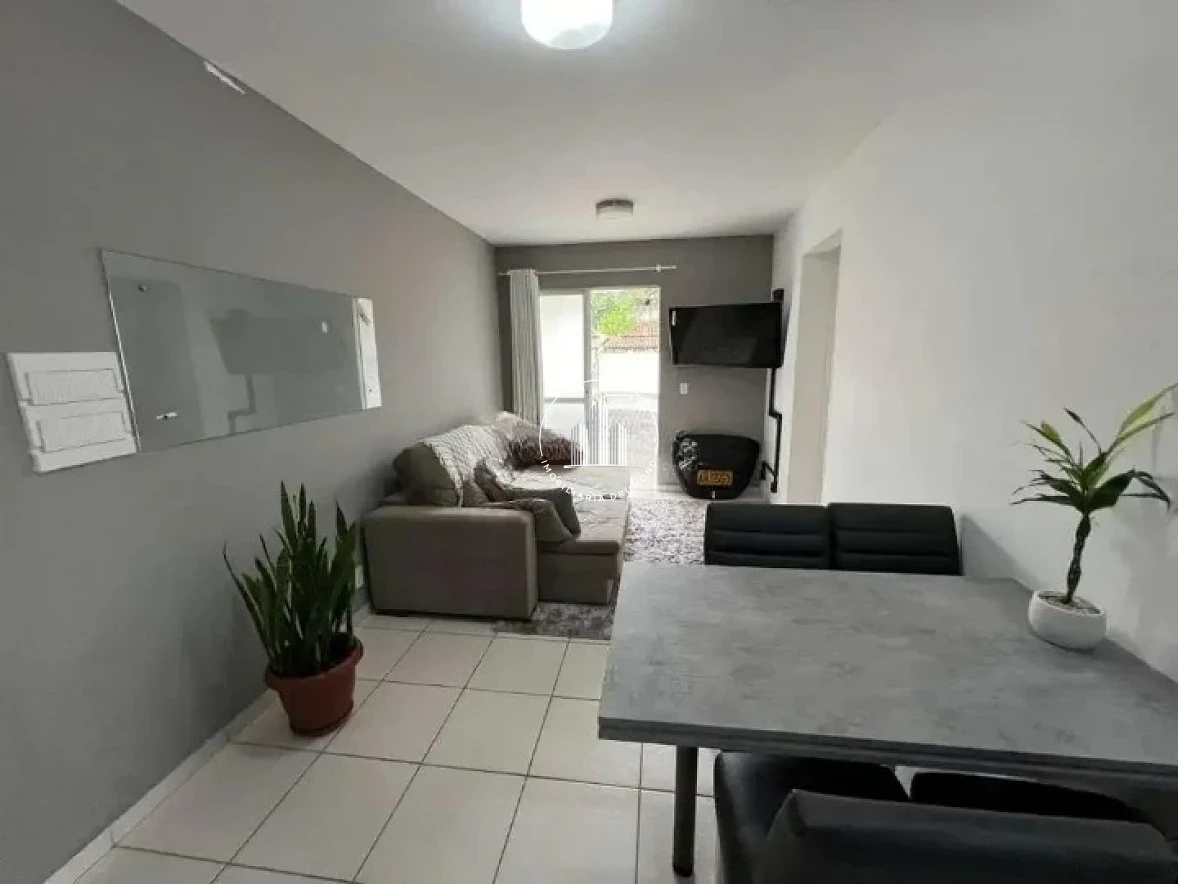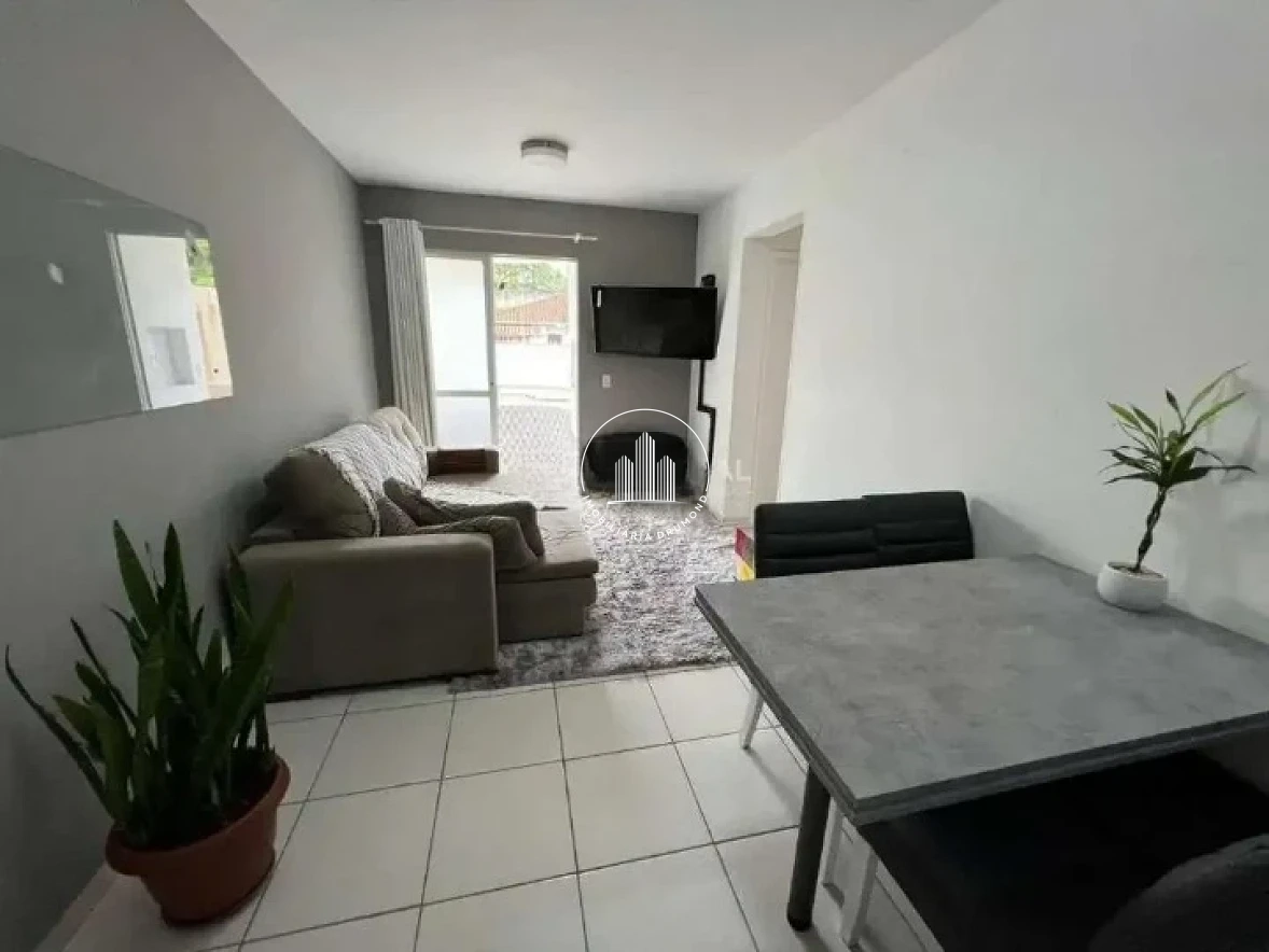 Apartamento de 53m² no Jardim Janaina em Biguaçu, conta com 2 dormitórios, sacada com churrasqueira, banheiro social, sala para 2 ambientes, área de serviço; 1 vaga de garagem privativa, medidor de água, luz e gás individual.
