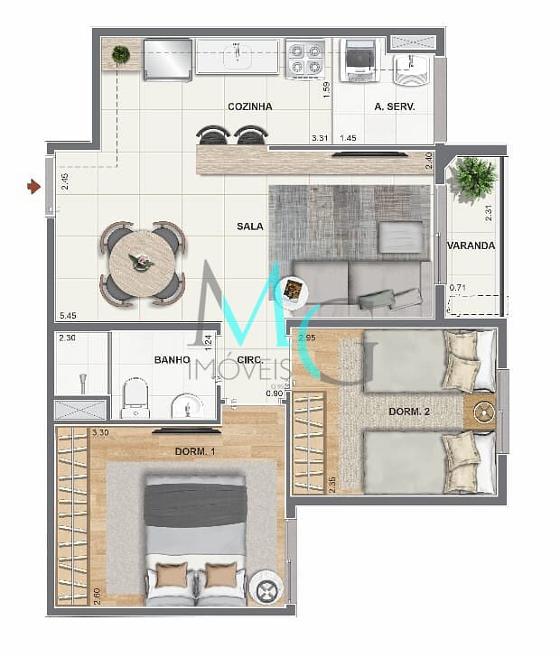 Apartamento à Venda com 2 quartos, 47 m² por R$ 421.150