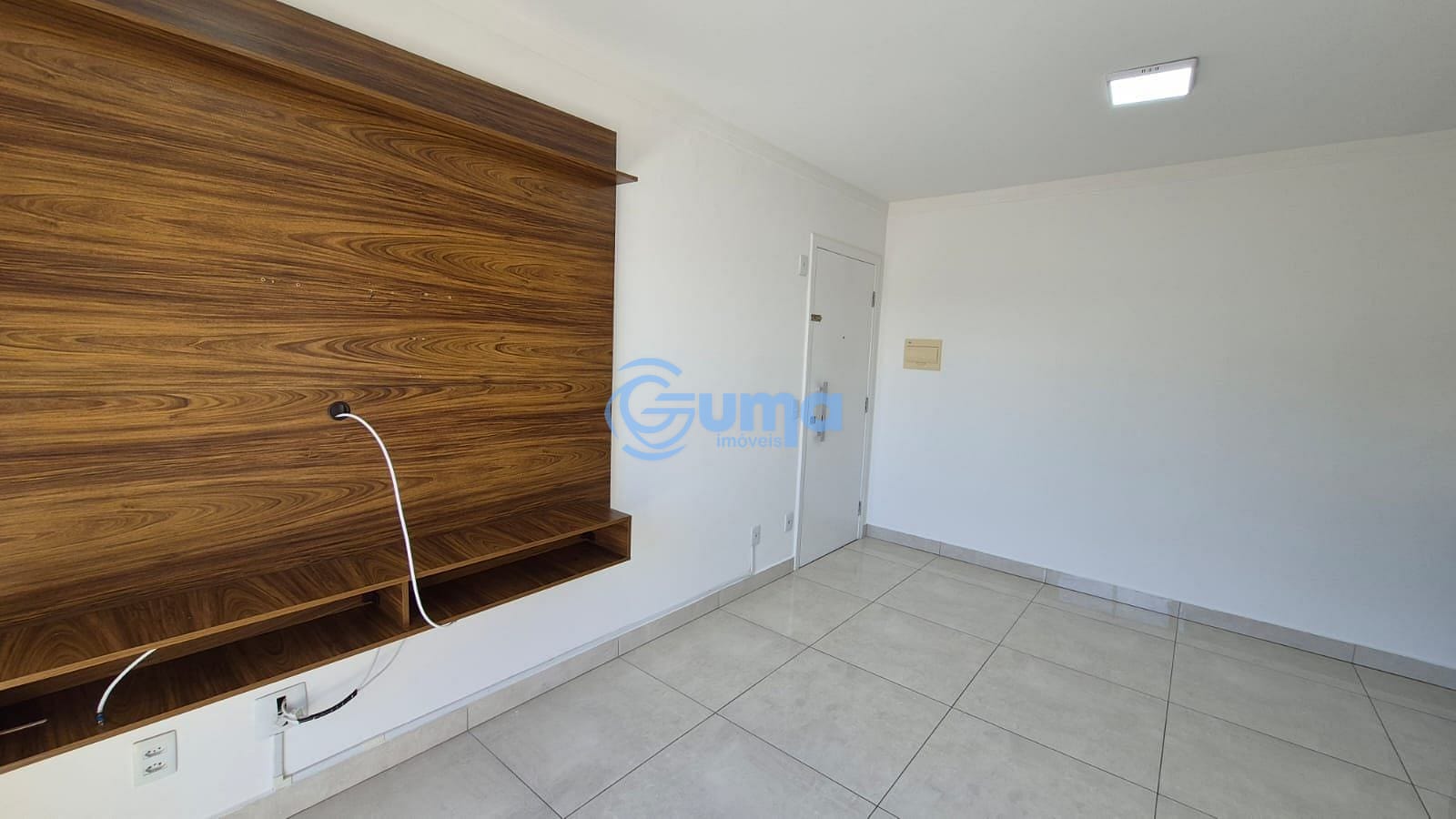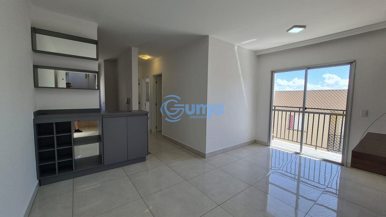 Sala com sacada e painel para TV