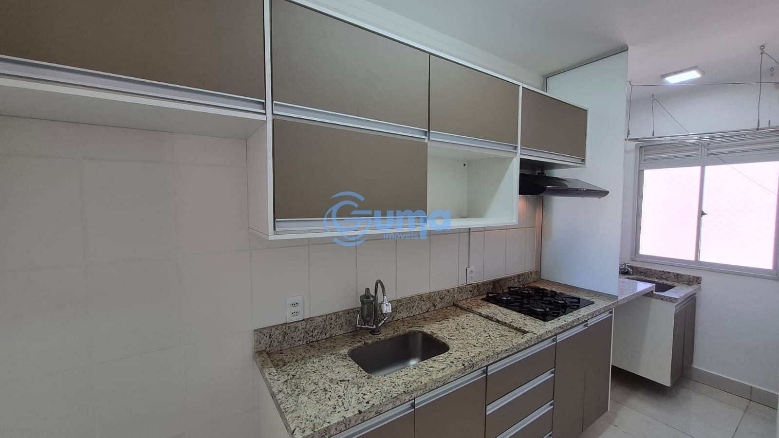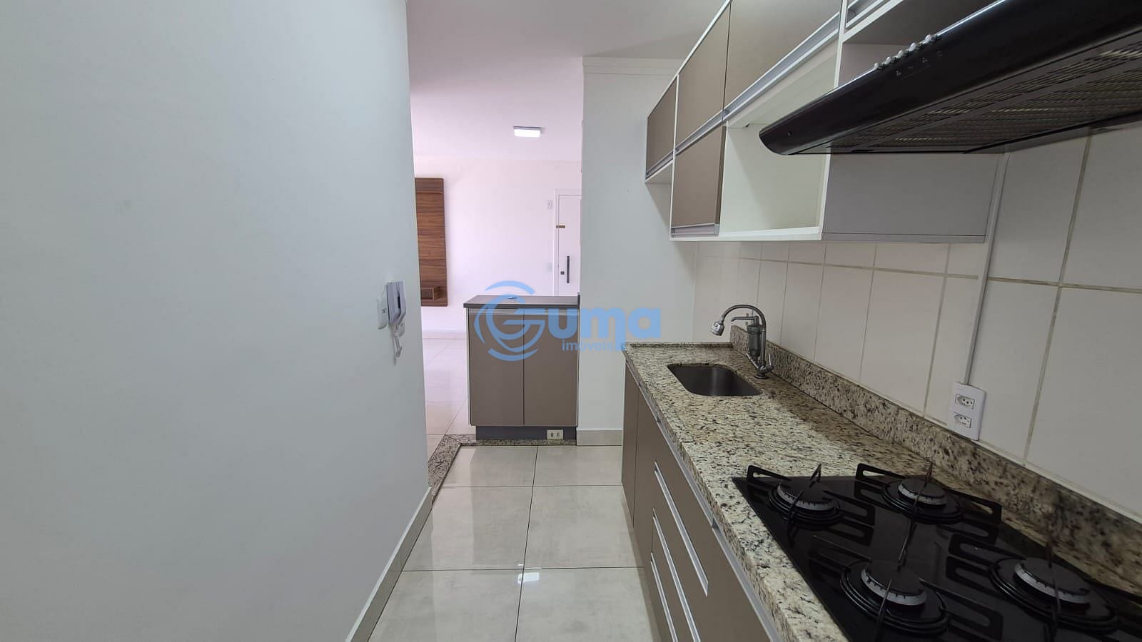 Cozinha planejada com armários, cooktop e suggar