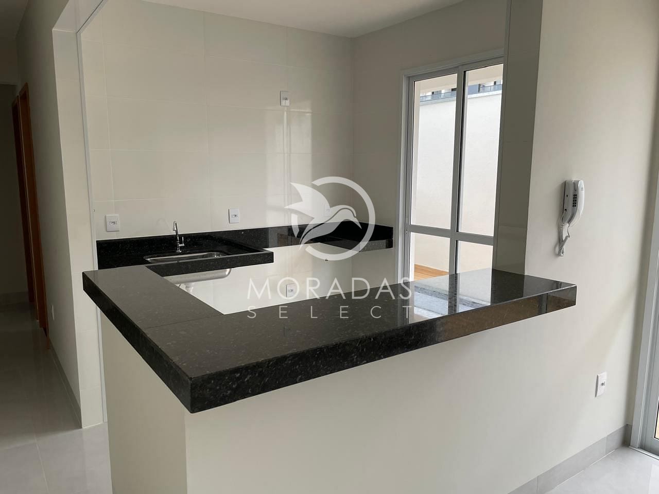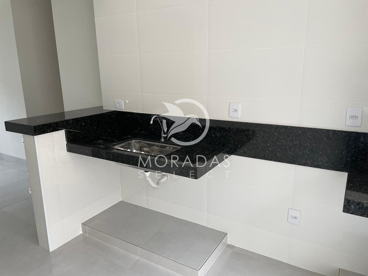 Acabamento com piso porcelanato, bancadas em granito.