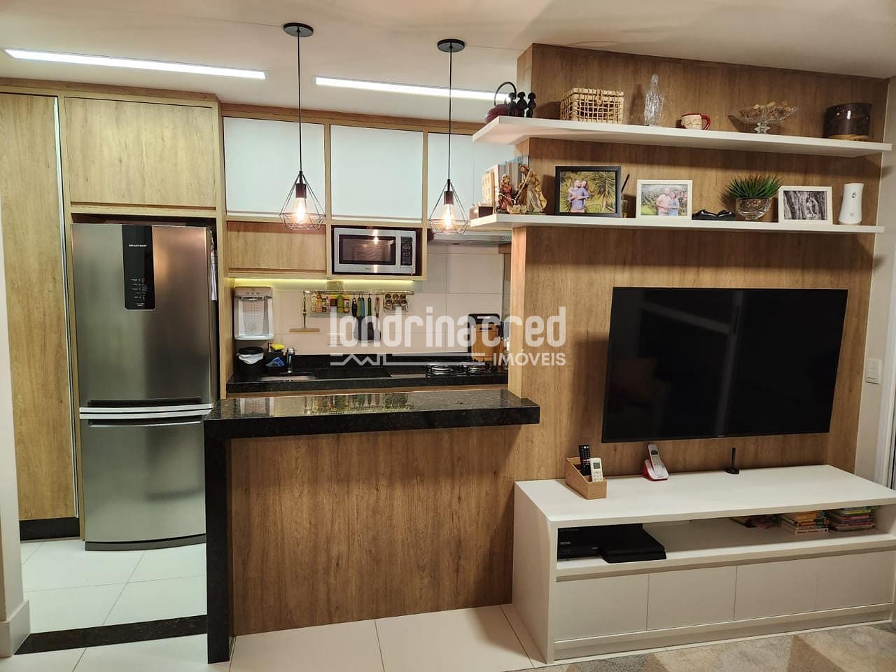 - Sala para 2 ambientes com painel de TV e marcenarias;