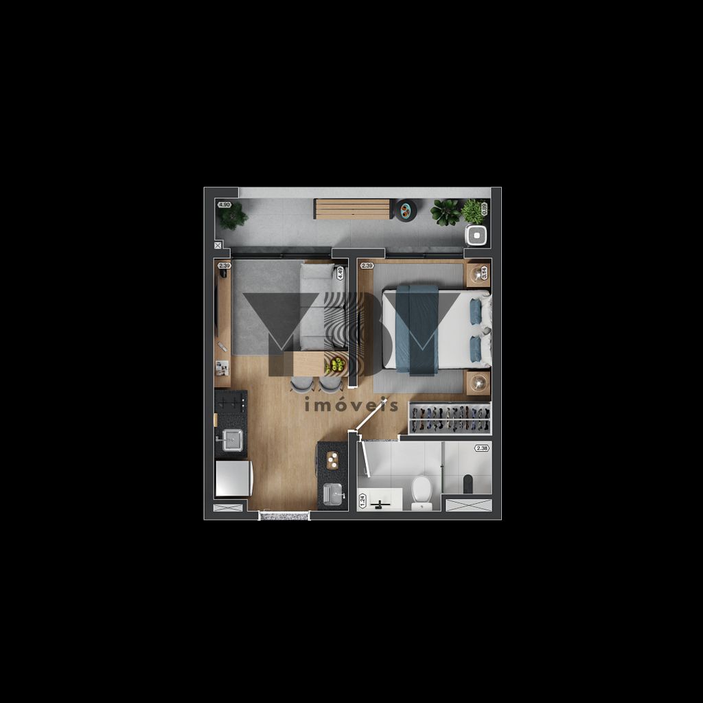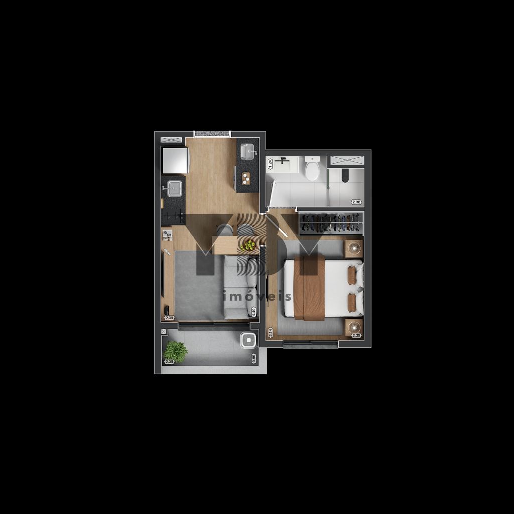 Apartamento à Venda com 2 quartos, 35 m² por R$ 330.910
