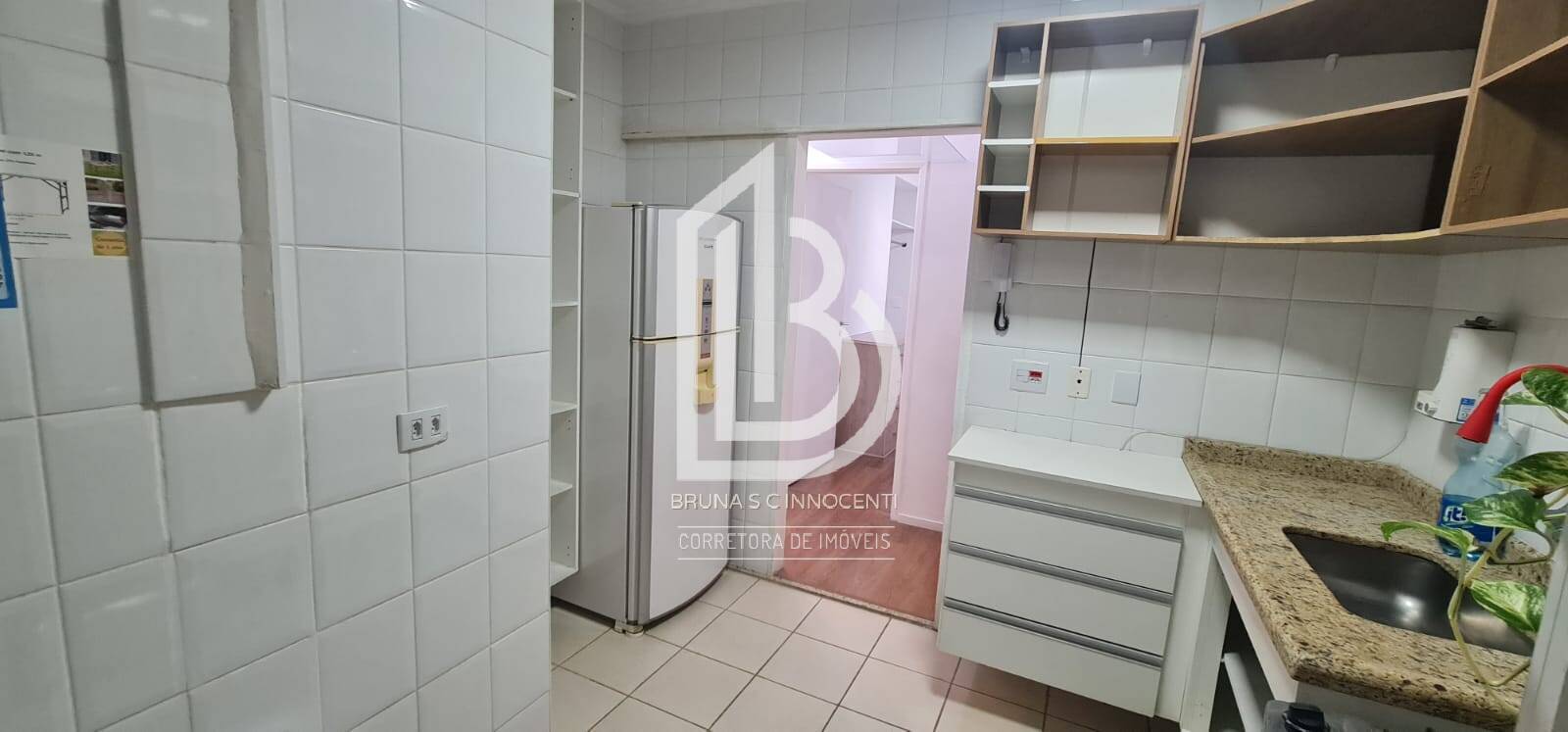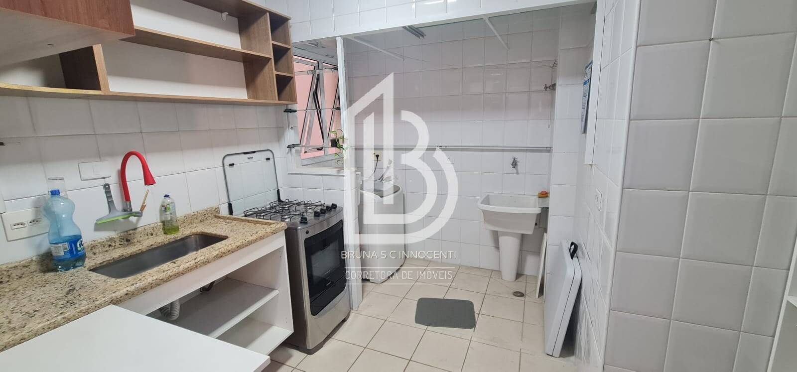 Cozinha com armários e área de serviço