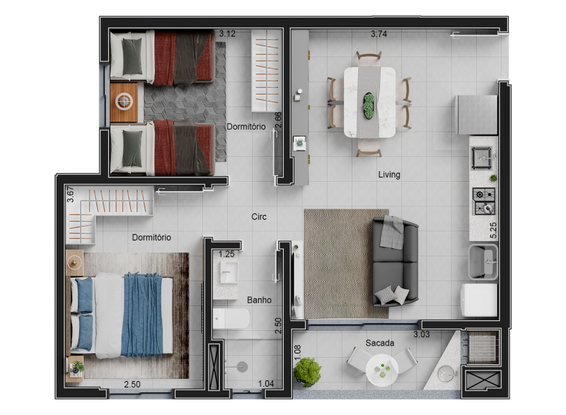 Apartamento no São Vicente com 54m² semi mobiliado.