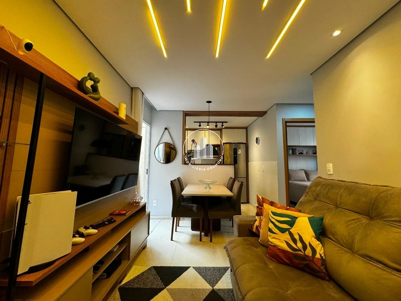 O condomínio conta com infraestrutura completa incluindo piscina, salão de festas equipado e área de churrasqueira para confraternizações. A segurança é garantida com câmeras de monitoramento e portaria 24 horas, proporcionando tranquilidade aos moradores em um ambiente familiar.