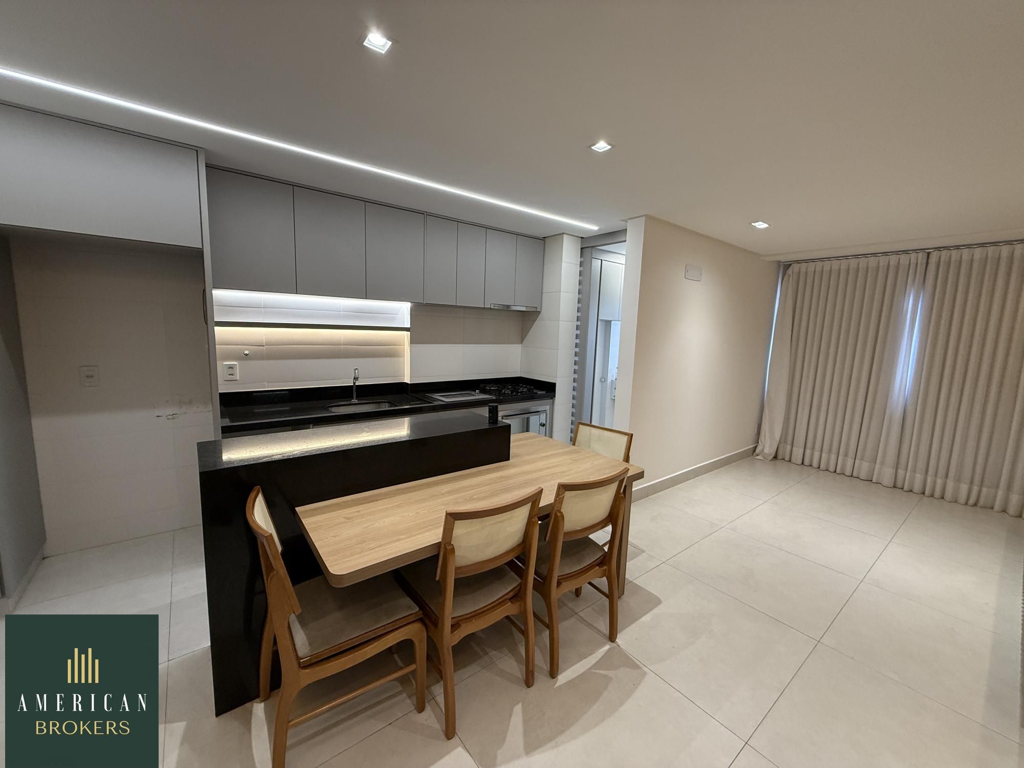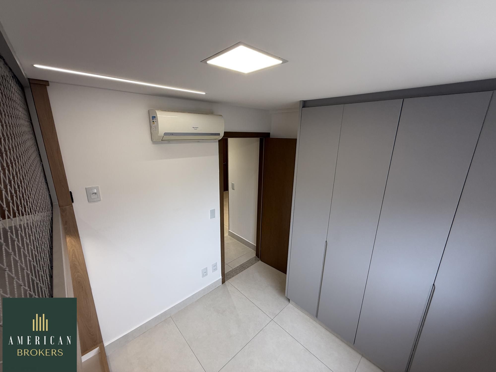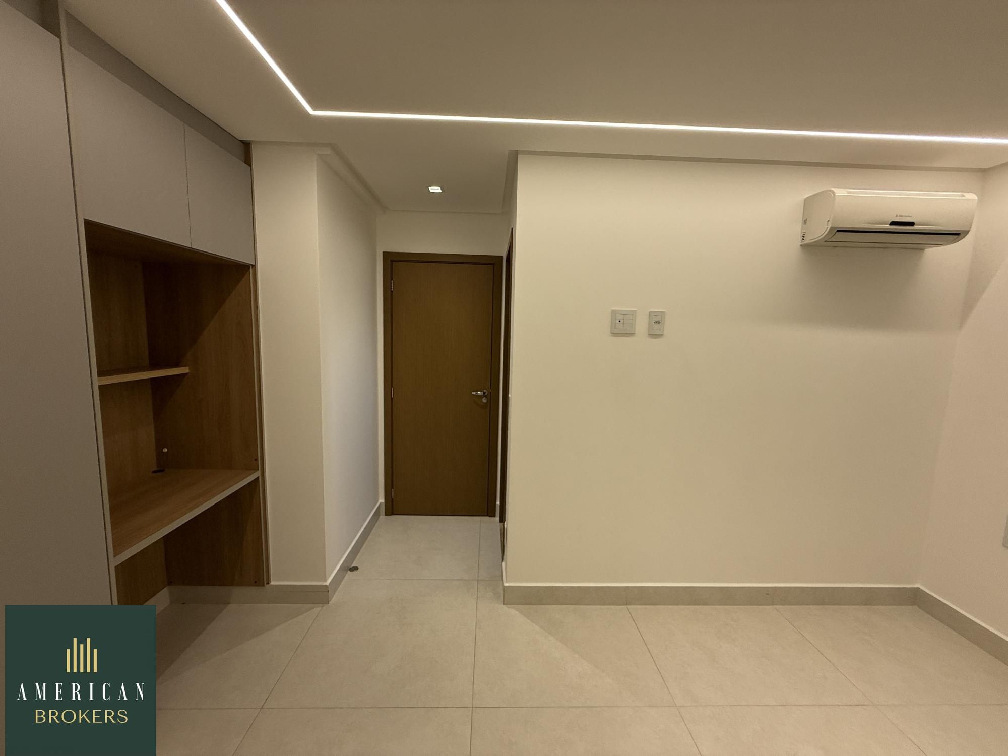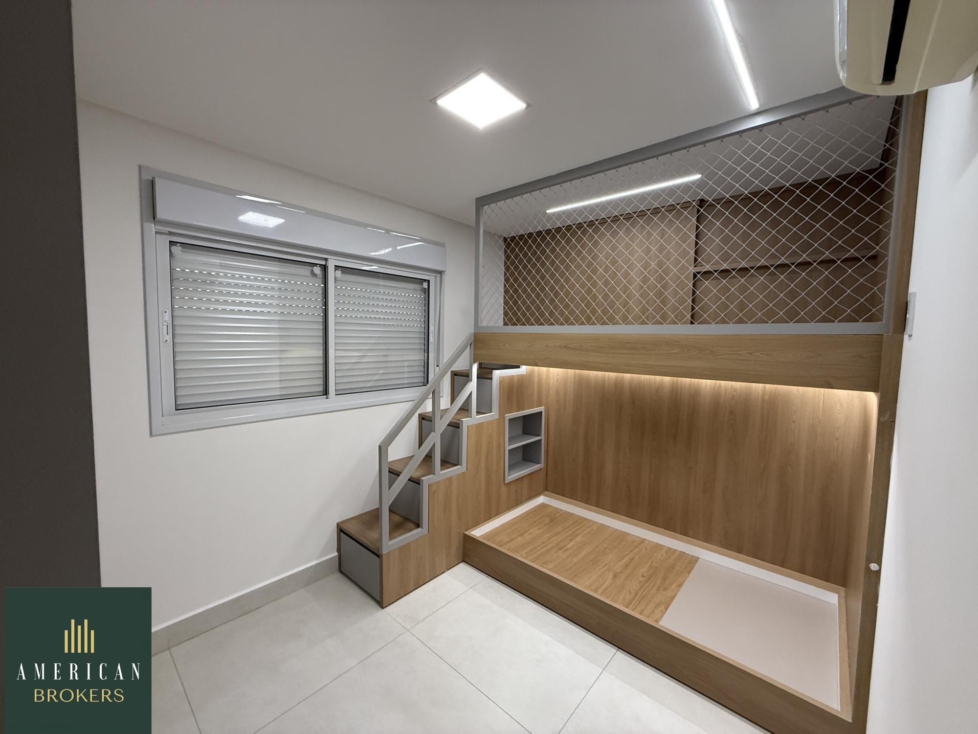Sala para 2 ambientes com painel para tv, blecaute e cortina, projeto de iluminação, cozinha montada em armários, fogão, forno e churrasqueira a gás, área de serviços montada em armários, quarto com guarda roupa e ar-condicionado, cama adaptada para criança que pode ser retirada, banheiro social, pia na cerâmica branca, espelho, armário, blindex, chuveiro, suíte com armário, ar-condicionado, banheiro, cuba na cerâmica branca, espelho, armário, vai ser instalado blindex e chuveiro. Apartamento lindo todo no porcelanato 80 x 80 projeto de iluminação e luzes automáticas controladas por aplicativo no celular.