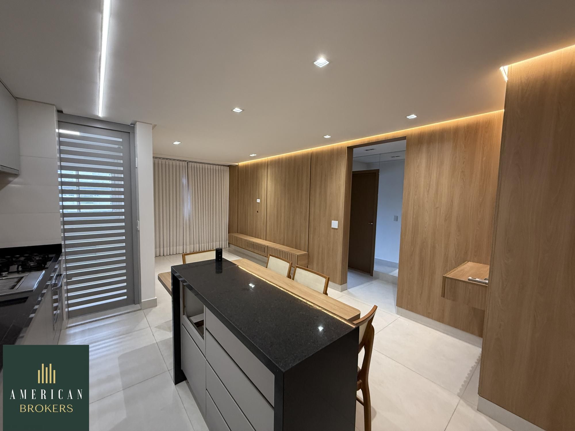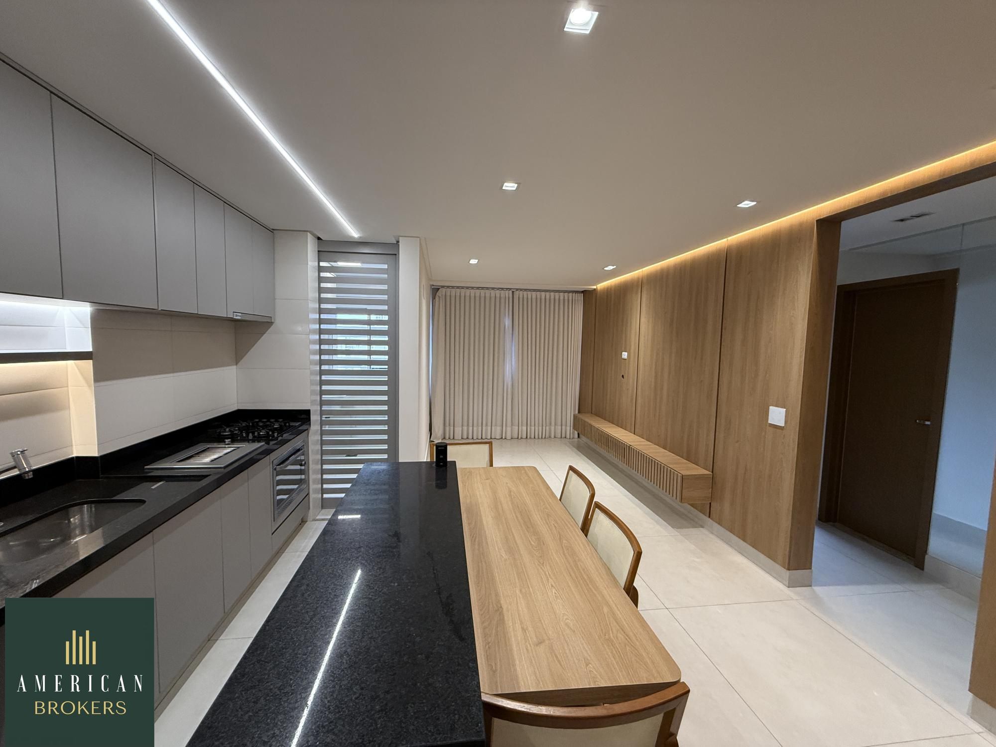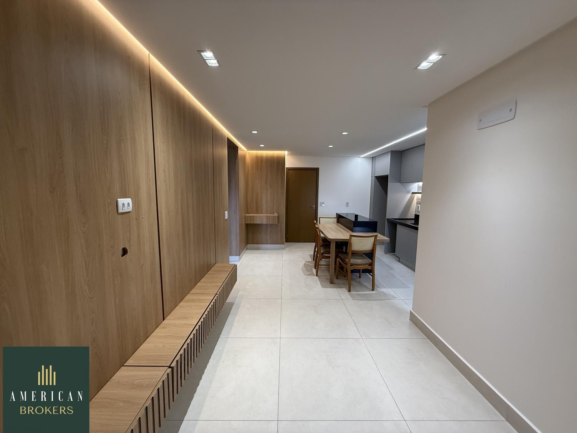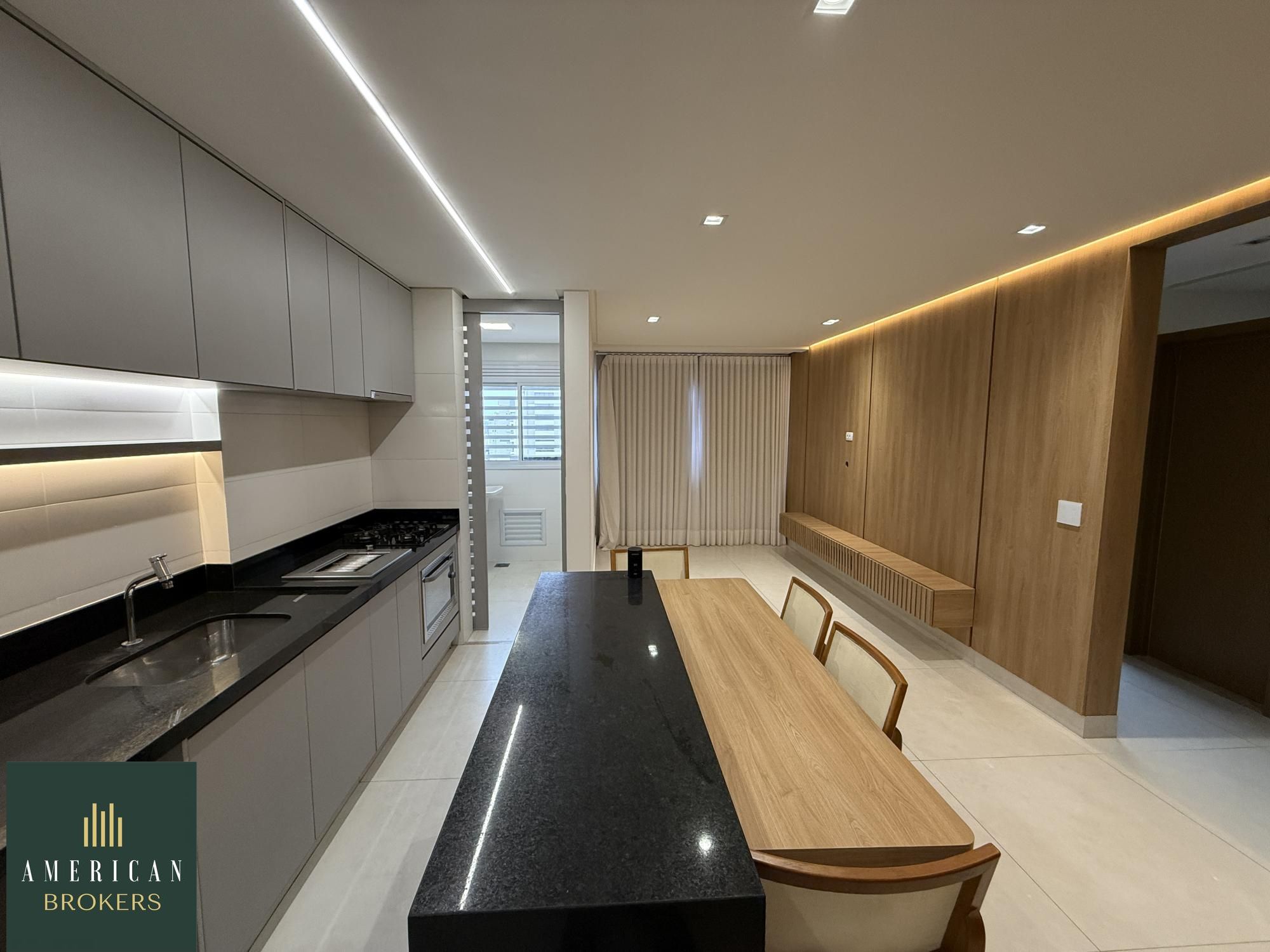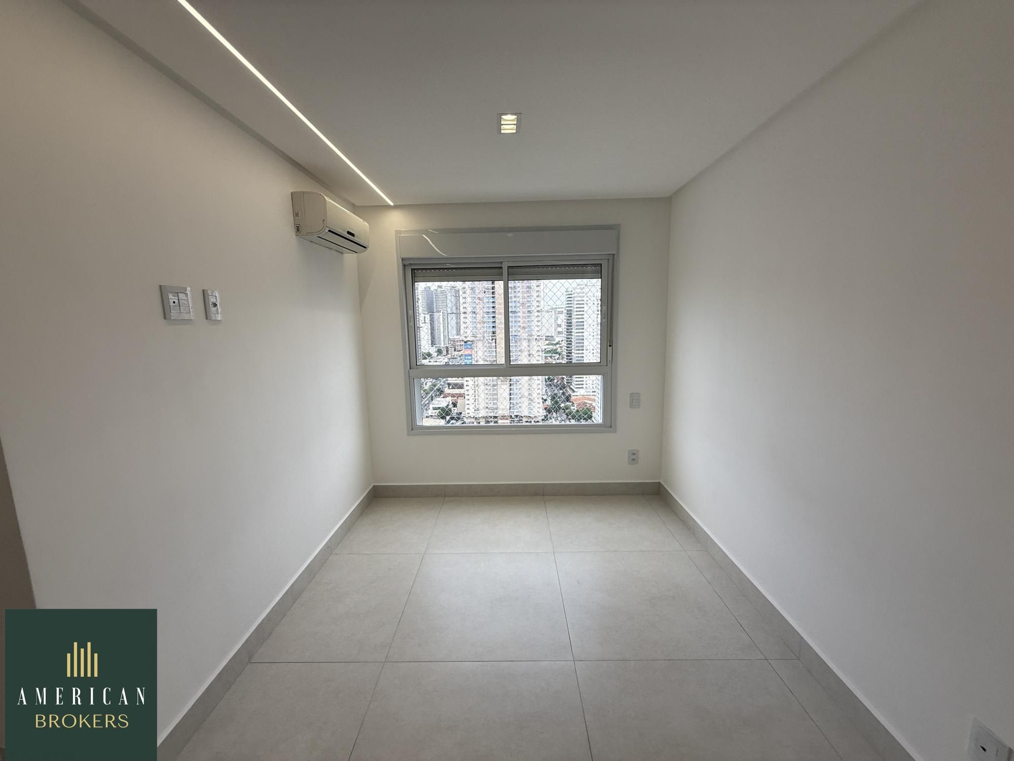 Sala para 2 ambientes com painel para tv, blecaute e cortina, projeto de iluminação, cozinha montada em armários, fogão, forno e churrasqueira a gás, área de serviços montada em armários, quarto com guarda roupa e ar-condicionado, cama adaptada para criança que pode ser retirada, banheiro social, pia na cerâmica branca, espelho, armário, blindex, chuveiro, suíte com armário, ar-condicionado, banheiro, cuba na cerâmica branca, espelho, armário, vai ser instalado blindex e chuveiro. Apartamento lindo todo no porcelanato 80 x 80 projeto de iluminação e luzes automáticas controladas por aplicativo no celular.