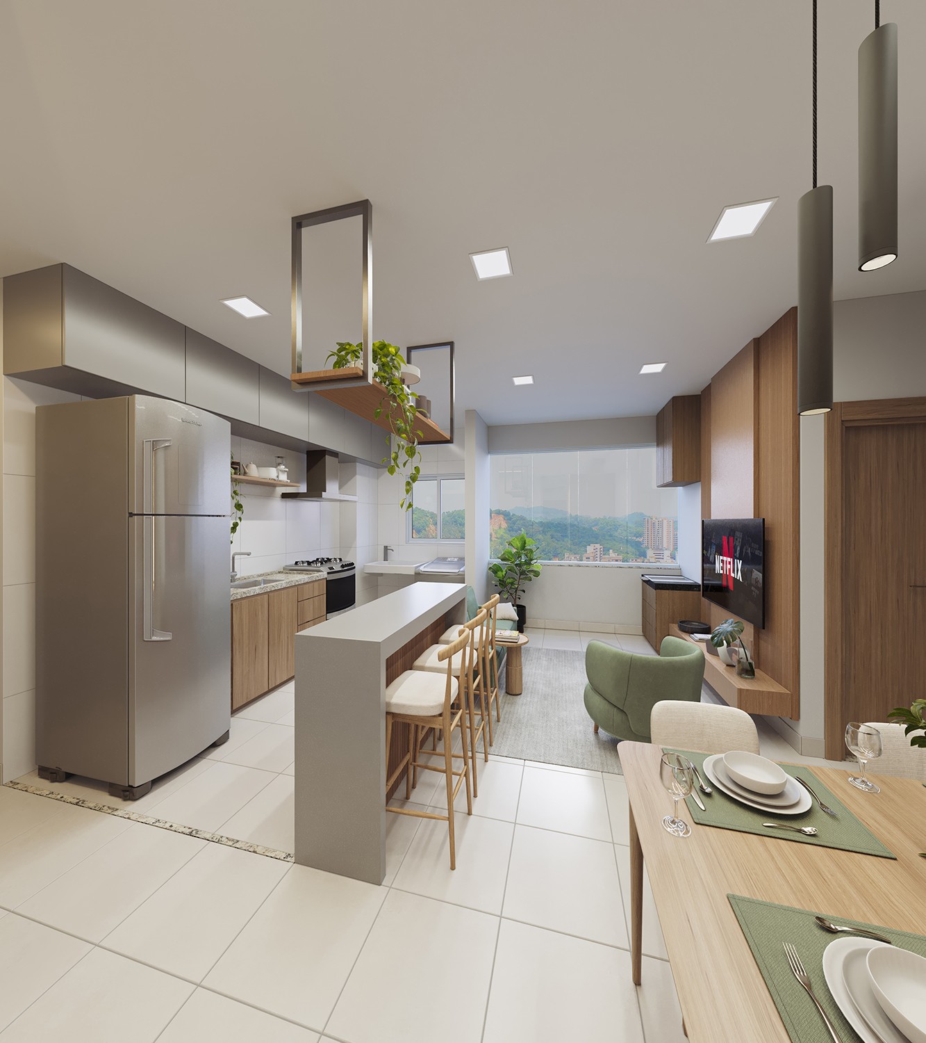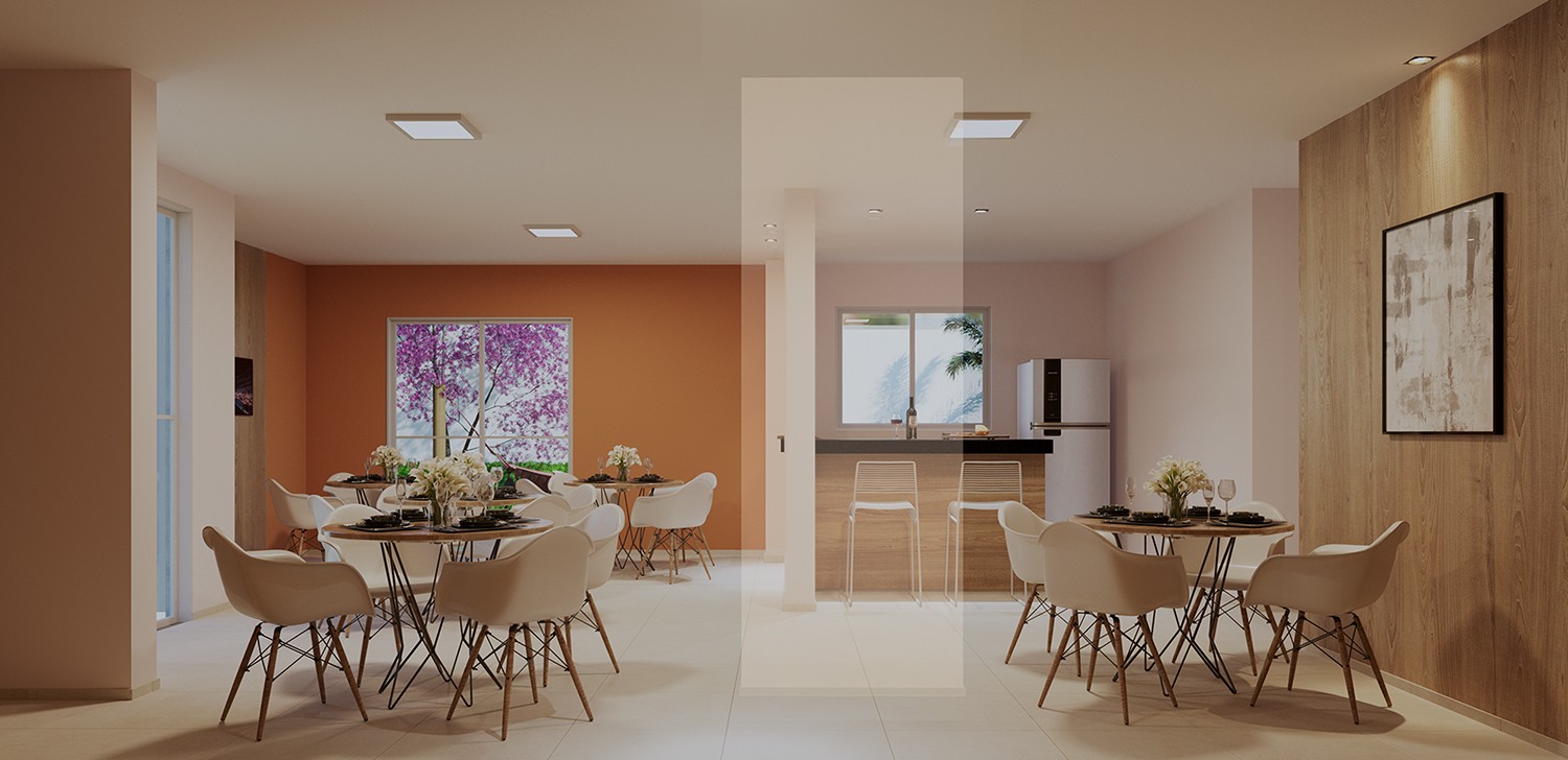 Apartamentos de 2 quartos com suíte e varanda, com acabamento moderno e uma distribuição inteligente dos ambientes.