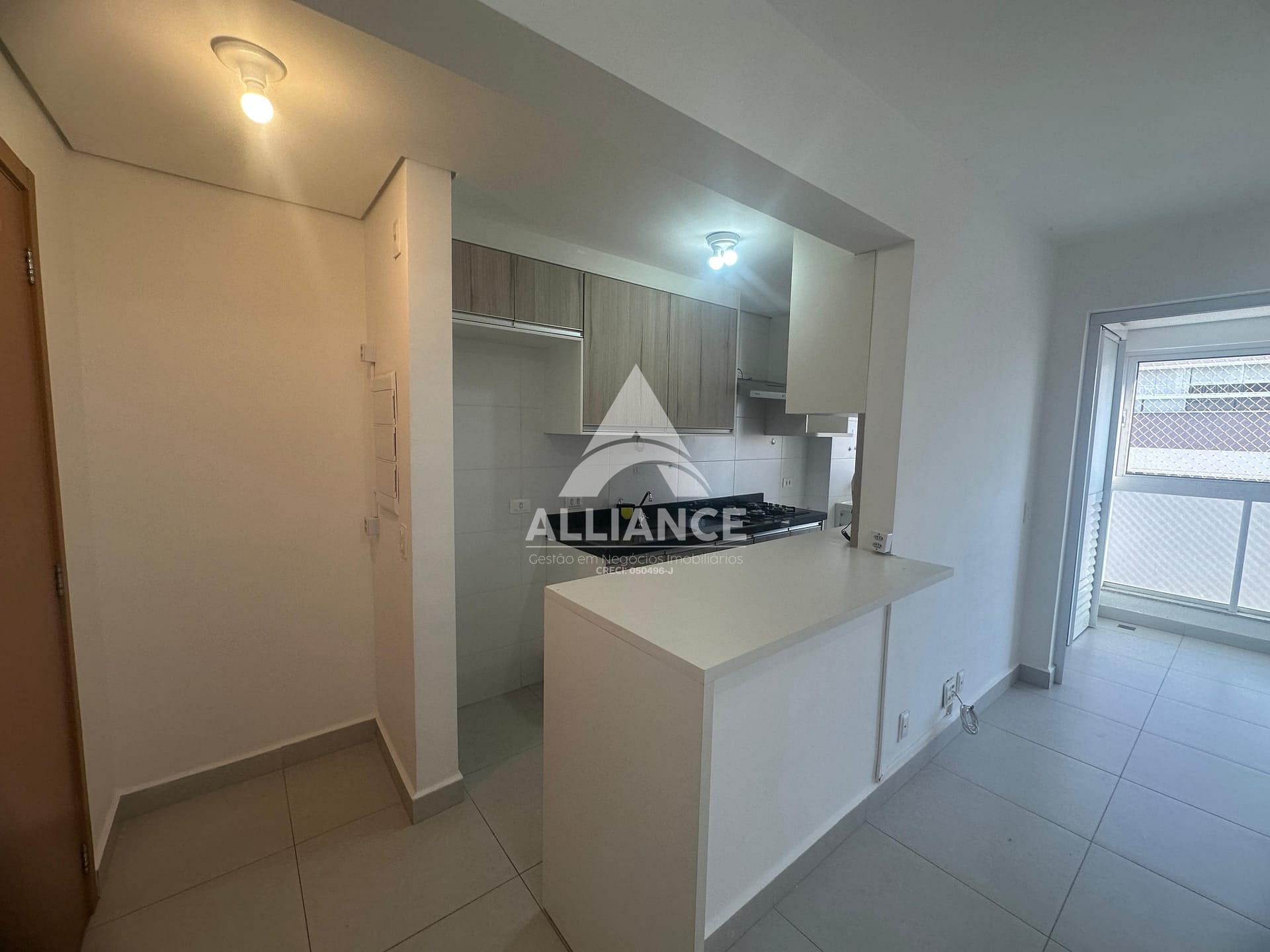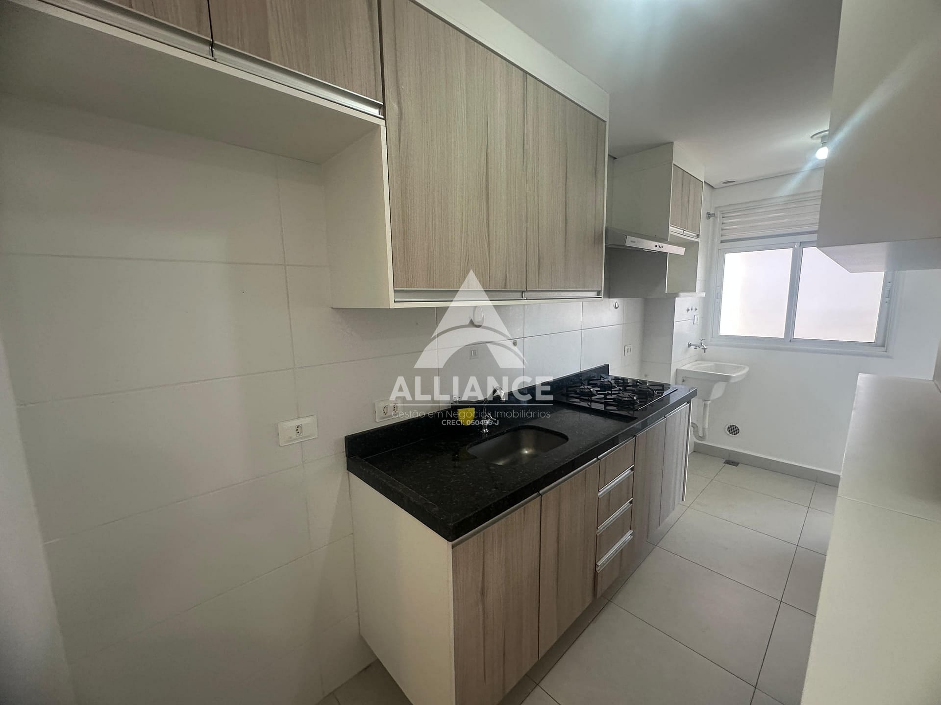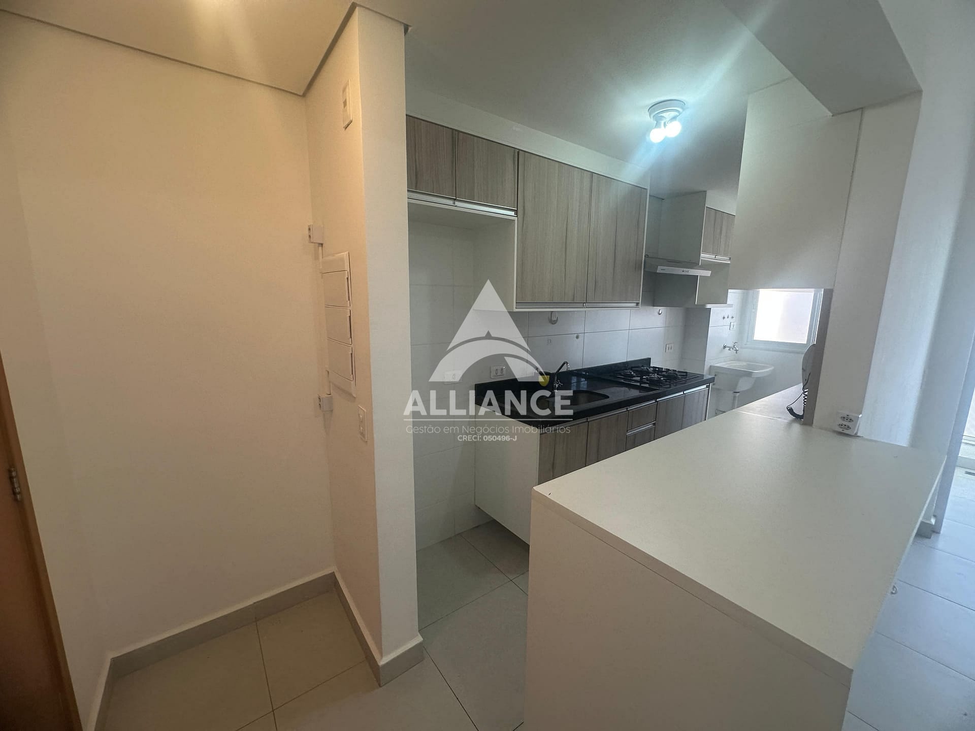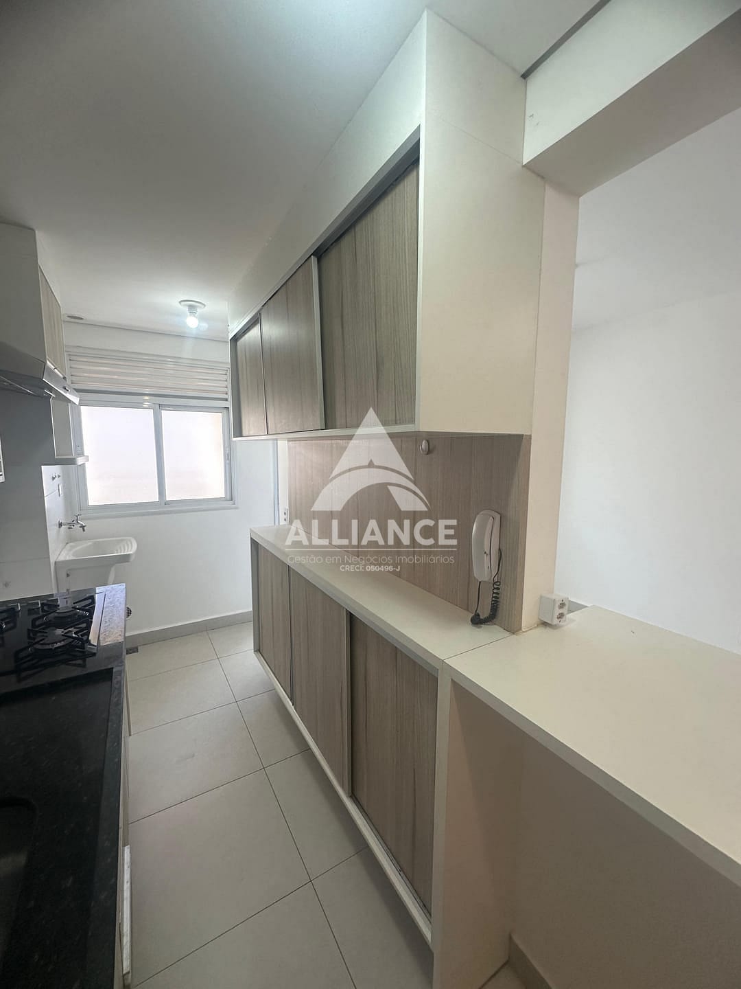 Cozinha com armários e cooktop