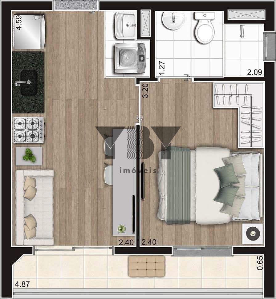 Apartamento à Venda com 2 quartos, 36 m² por R$ 361.800