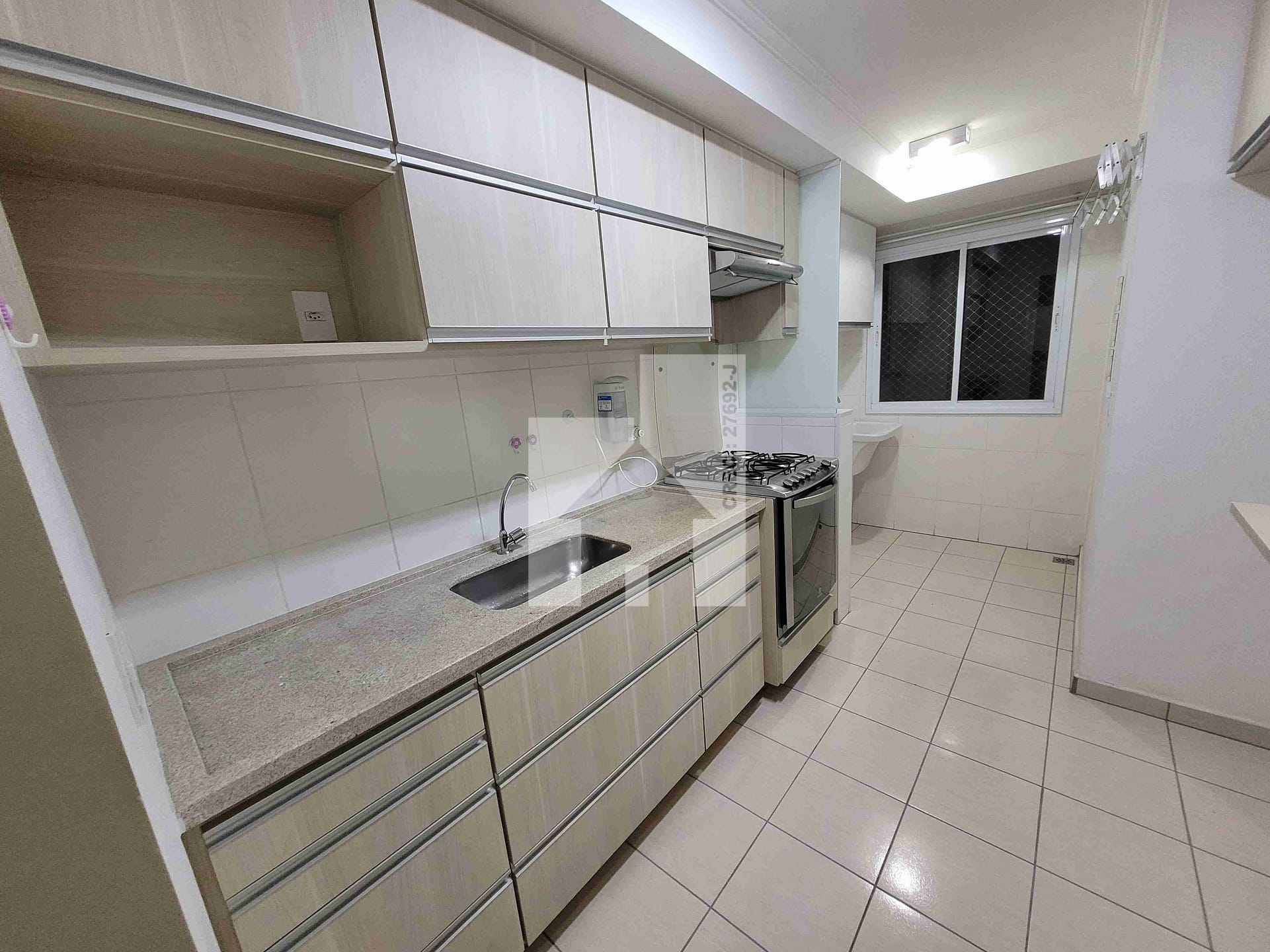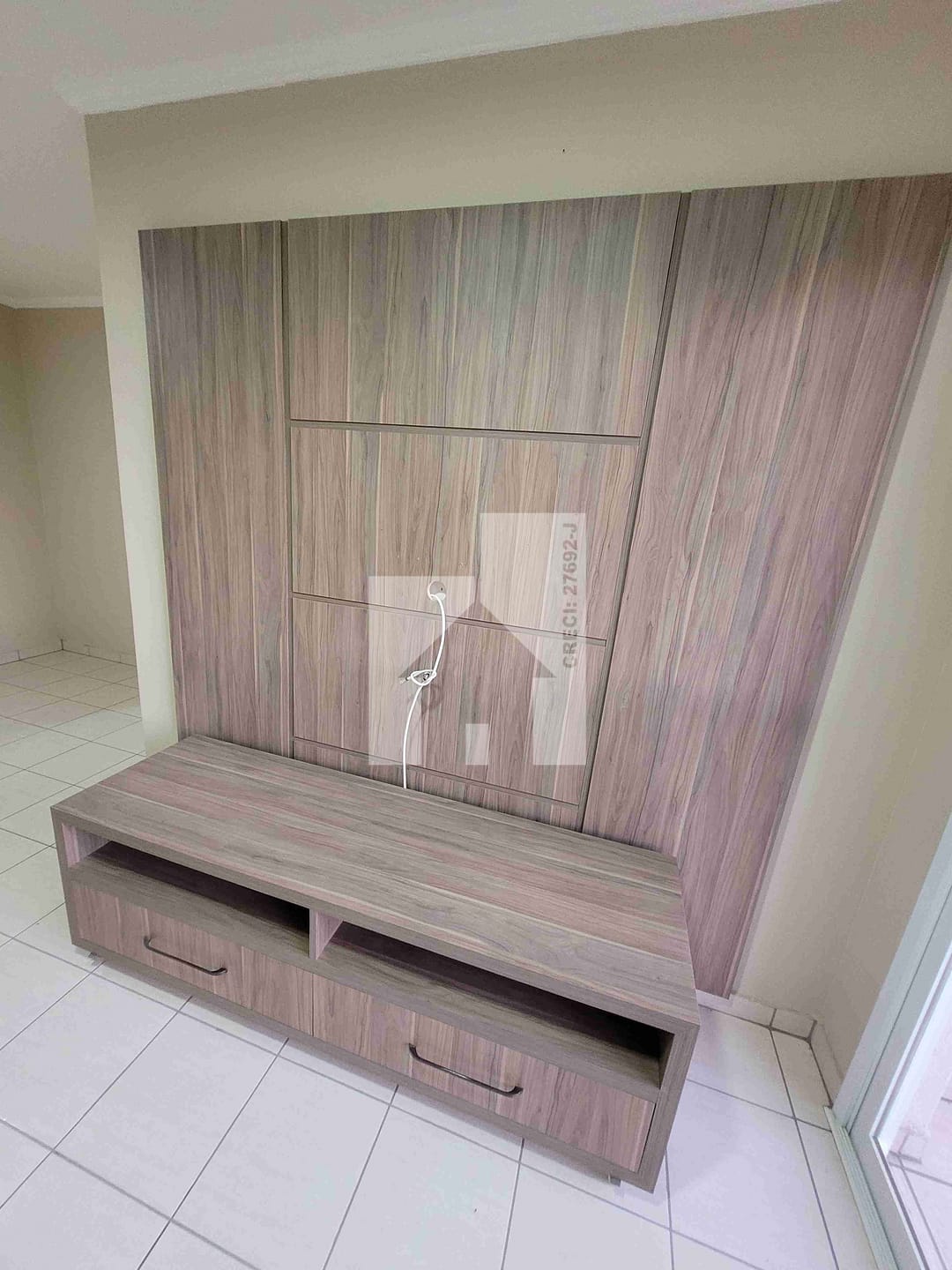 O apartamento conta com sala 2 ambientes com Rack, 2 banheiros com gabinetes e box, armários em todas as dependências, incluindo a cozinha (com fogão embutido e depurador de ar) e área de serviço. A varanda ampla e a divisão dos ambientes proporcionam ótima funcionalidade e integração dos espaços.