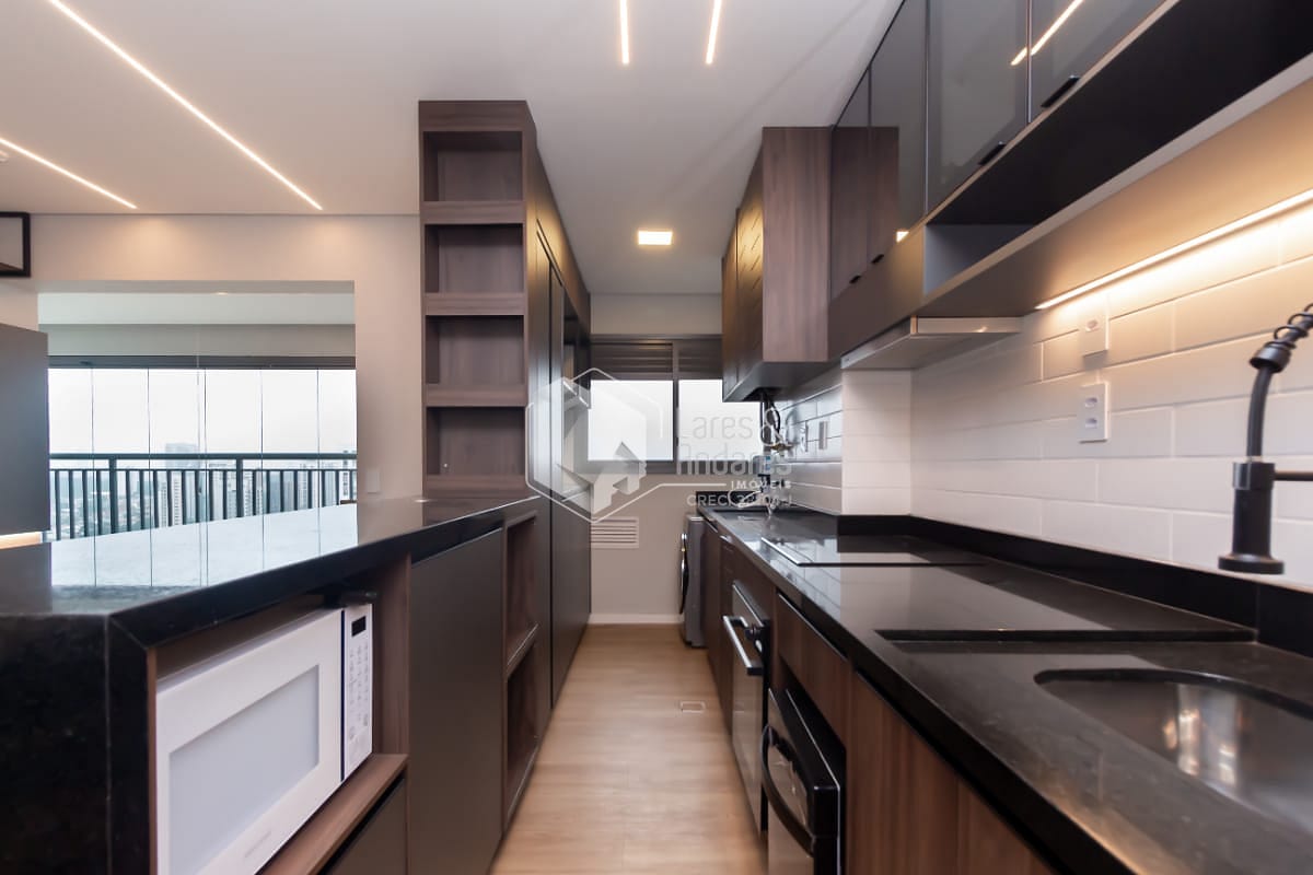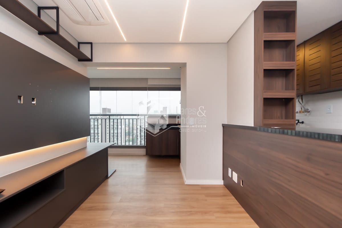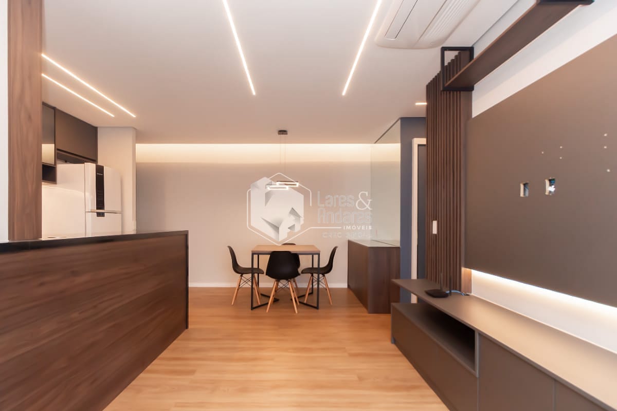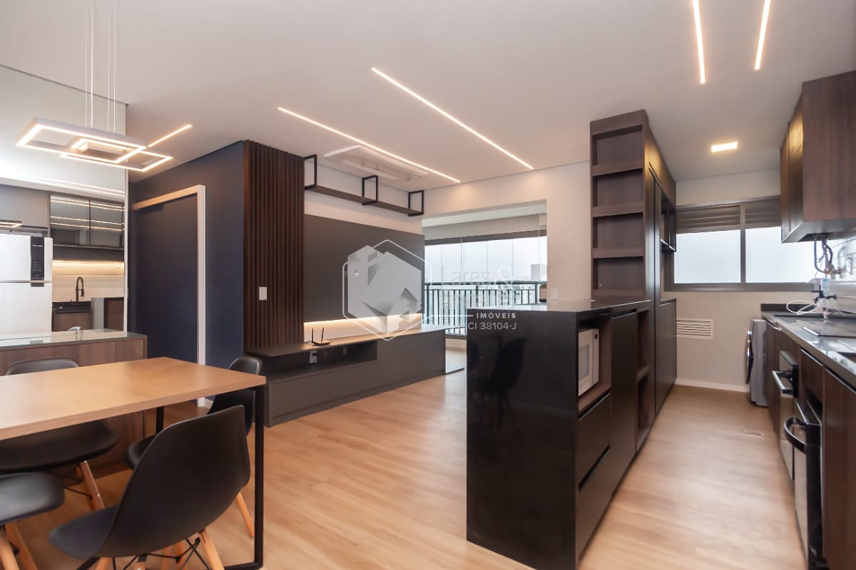 Ao entrar no apartamento, você é recebido por uma sala ampla e bem distribuída em dois ambientes, já equipada com ar condicionado central, iluminação planejada e atmosfera acolhedora. A sala de jantar acomoda perfeitamente uma mesa para quatro lugares, enquanto a sala de estar já conta com rack planejado e excelente aproveitamento do espaço. O grande destaque é a varanda gourmet: sacada envidraçada, vista livre privilegiada e um ambiente pensado para relaxar, desfrutar e receber. Na área íntima, o banheiro social conta com gabinete planejado, espelho e box de vidro. O primeiro dormitório, também com ar condicionado, é versátil podendo ser escritório, quarto infantil ou de hóspedes. Já a suíte é um convite ao descanso, equipada com móveis planejados, cortina blackout, cama de casal e ar condicionado central, além de um banheiro elegante com porcelanato, gabinete planejado, box de vidro e ventilação natural. A cozinha é totalmente equipada com geladeira, micro-ondas, lava-louças e fogão cooktop, além da lavanderia já com balcão planejado e máquina de lavar.