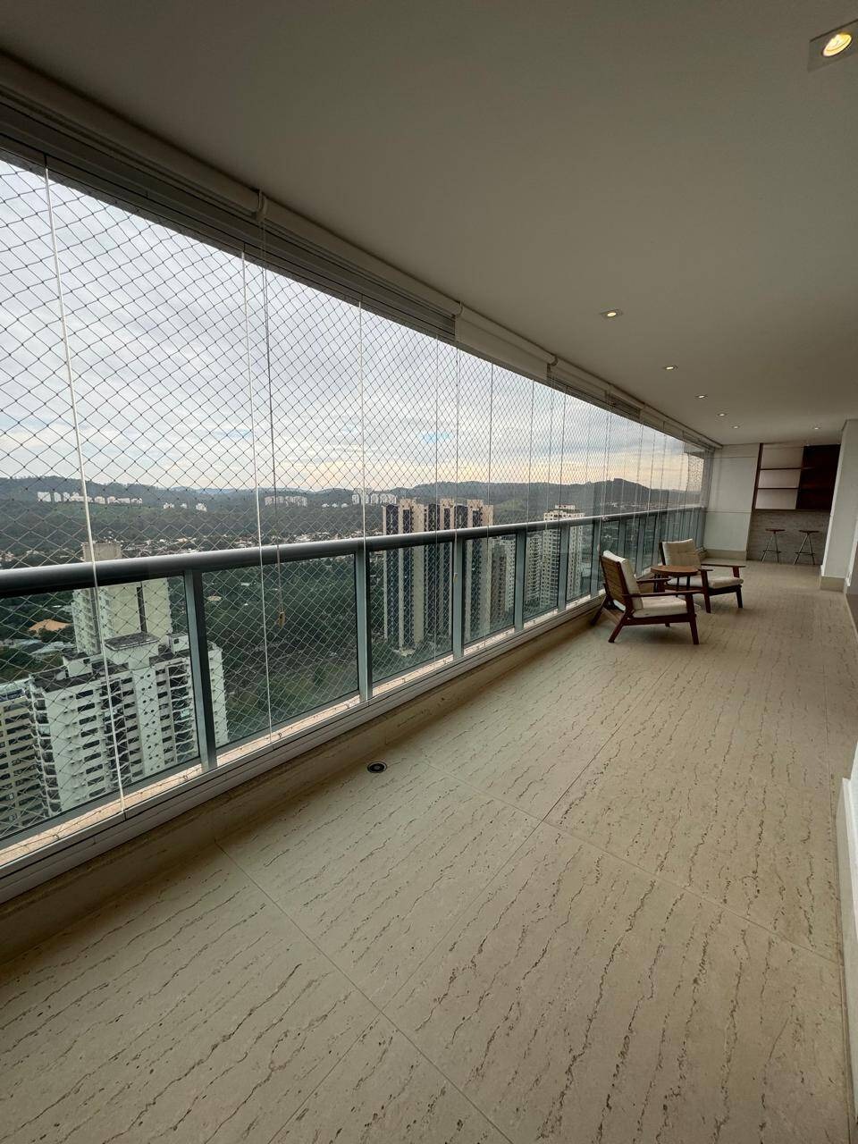 Excelente apartamento no centro de Alphaville, totalmente mobiliado e com 3 suítes (sendo 1 master com banheira de hidromassagem e ar condicionado). Com 5 banheiros, sala para 3 ambientes, sacada gourmet fechada com vidro, lavabo, escritório, bar, cozinha planejada espaçosa e lavanderia planejada com lava e seca. Conta também com dependência de empregada completa e 3 vagas cobertas de garagem.
