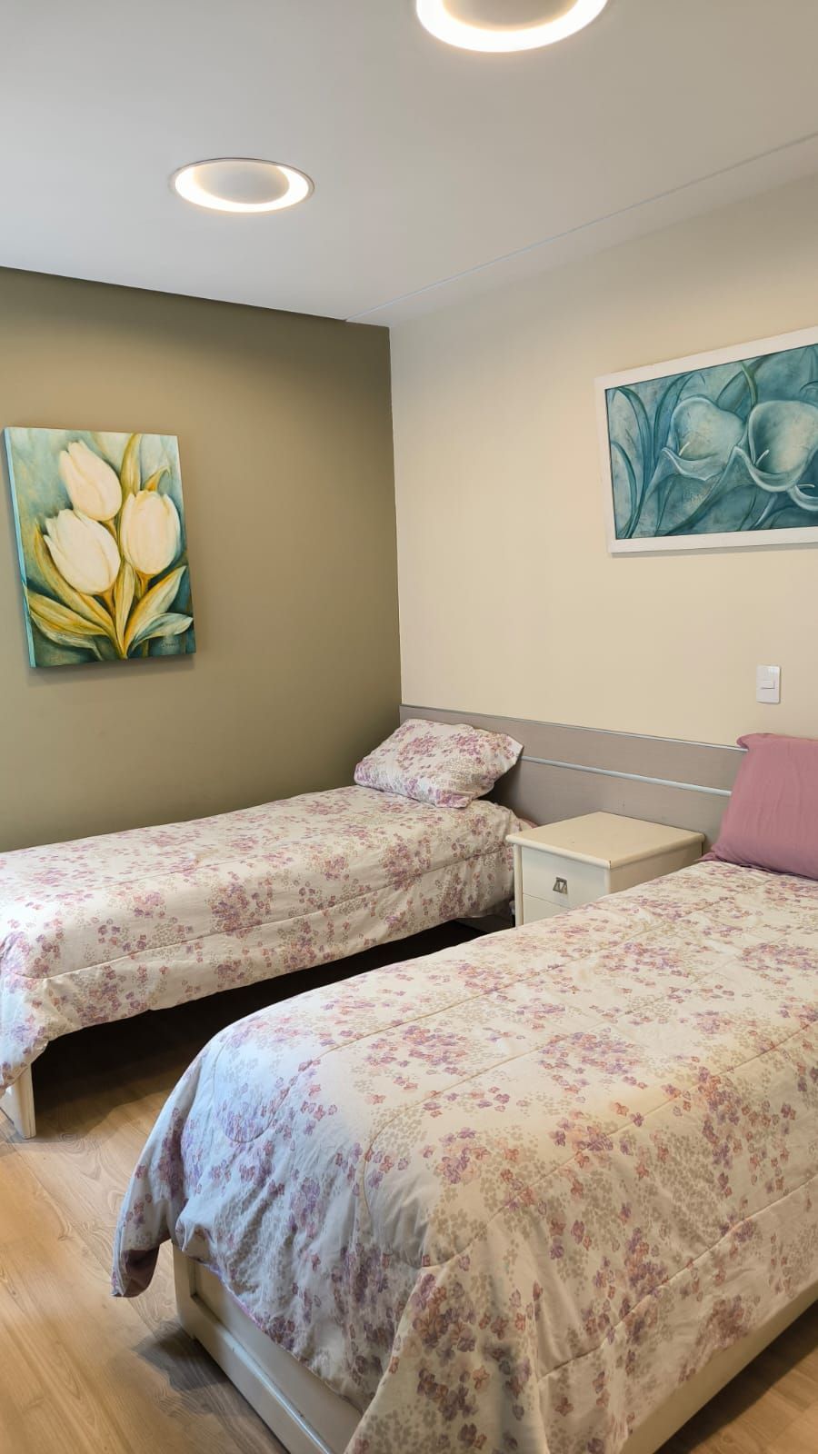 Banheiros das suítes com cromoterapia embutida nas luminárias, proporcionando um verdadeiro spa em casa