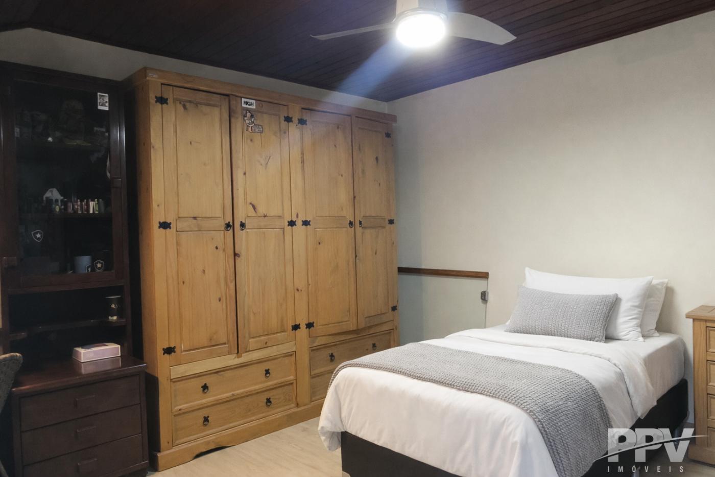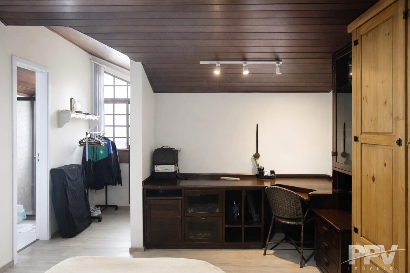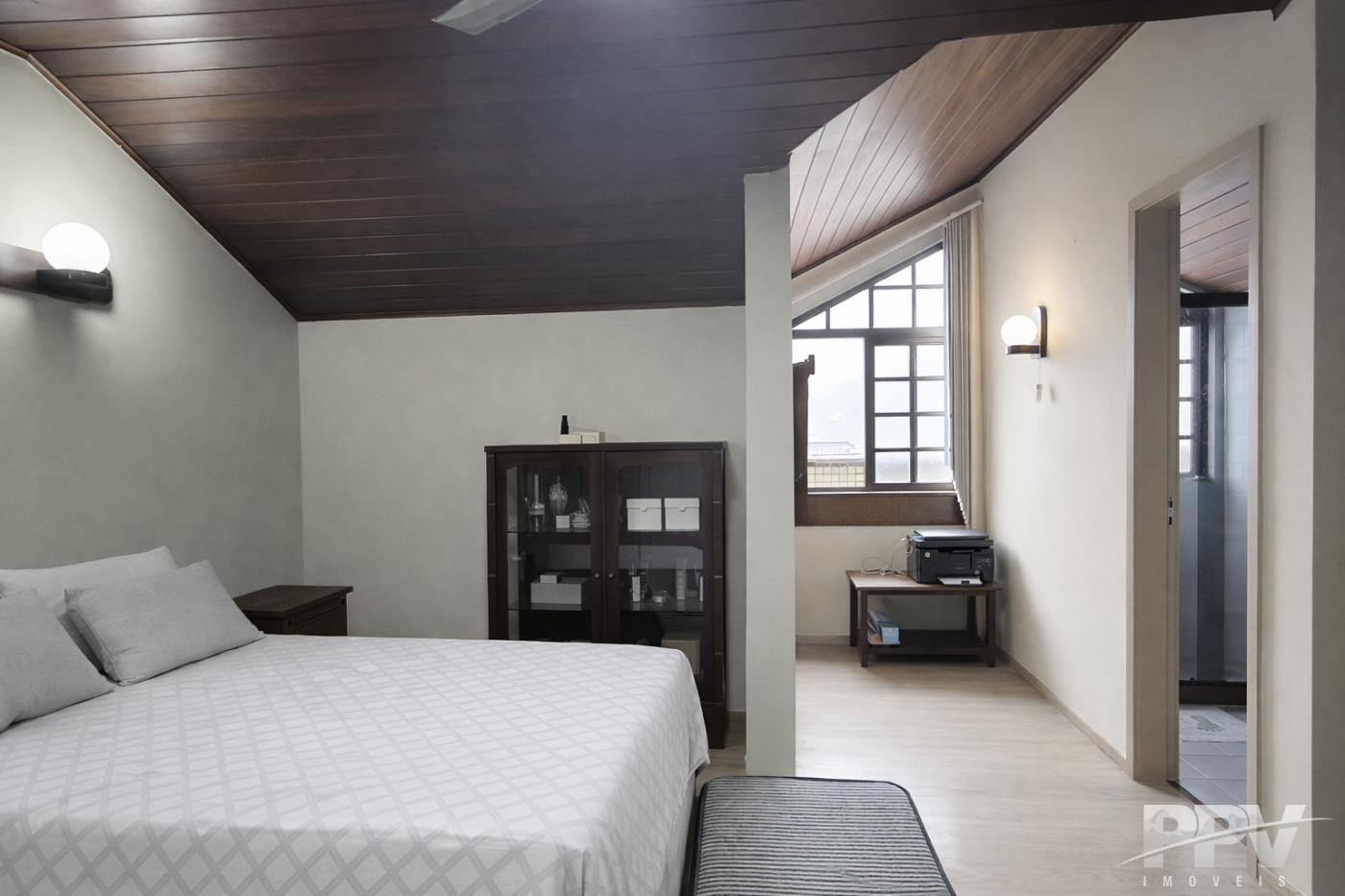 No andar superior, encontram-se as outras duas suítes, ambas mais amplas, bem ventiladas e com total privacidade. O imóvel ainda dispõe de um sótão espaçoso, ideal para diferentes possibilidades de uso.