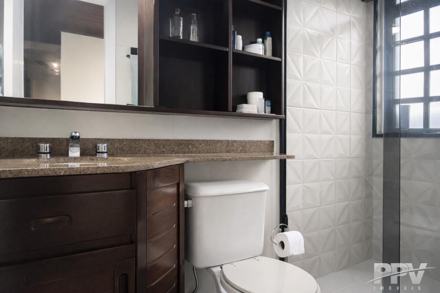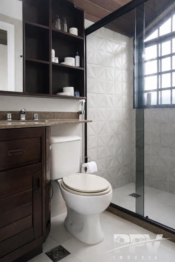 Os banheiros das suítes possuem box blindex e armários, oferecendo funcionalidade e bom acabamento. A suíte localizada no primeiro piso também conta com varanda privativa, trazendo ainda mais conforto.