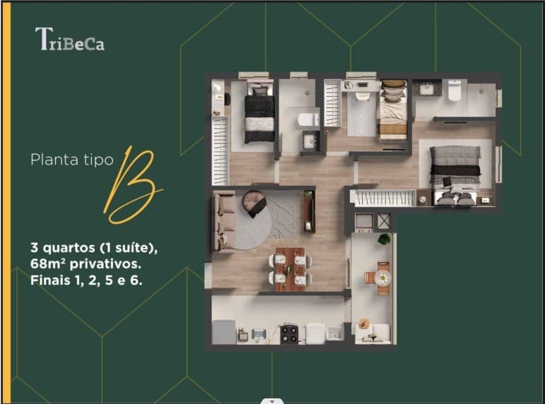 68 m² de área privativa