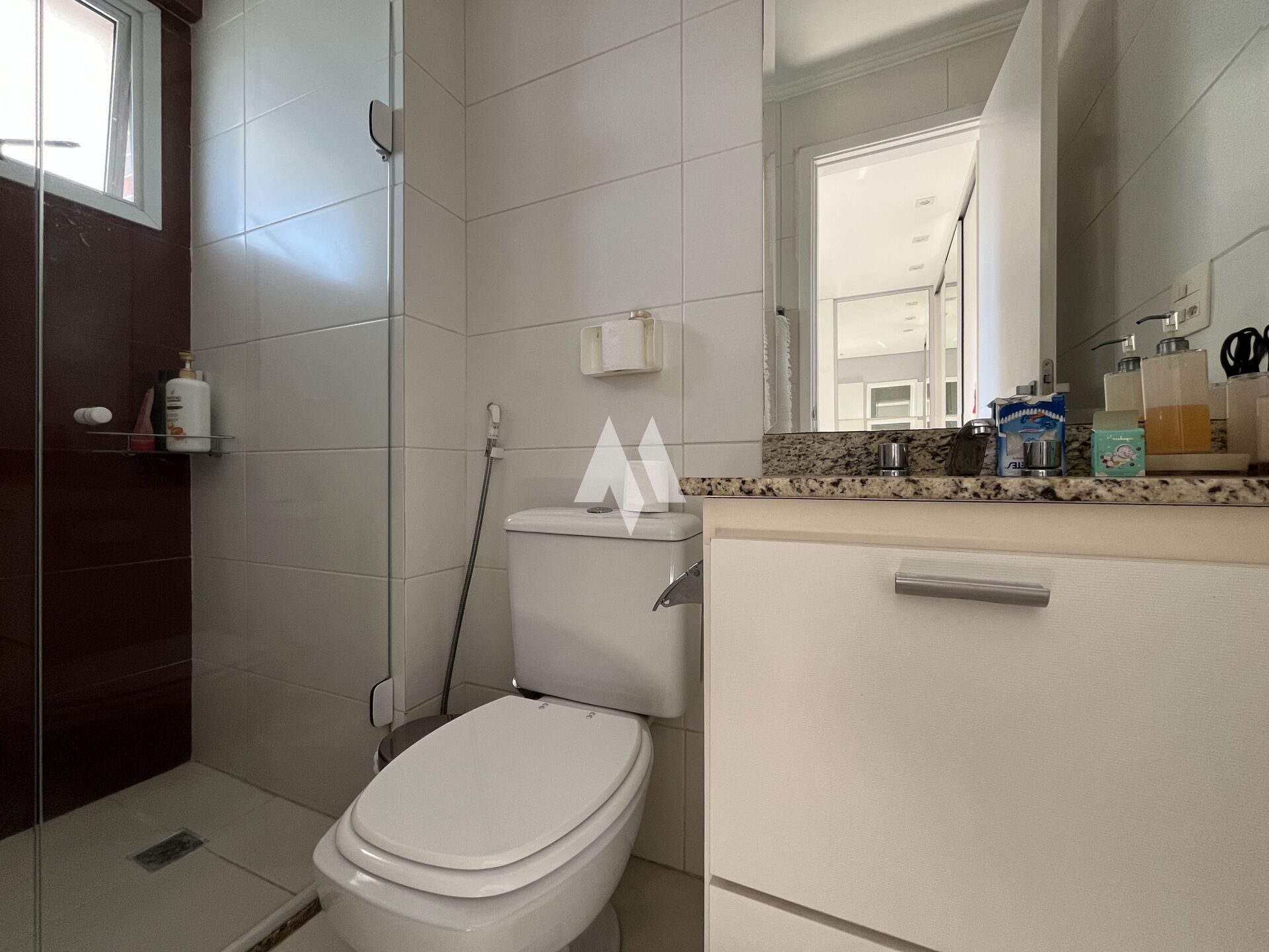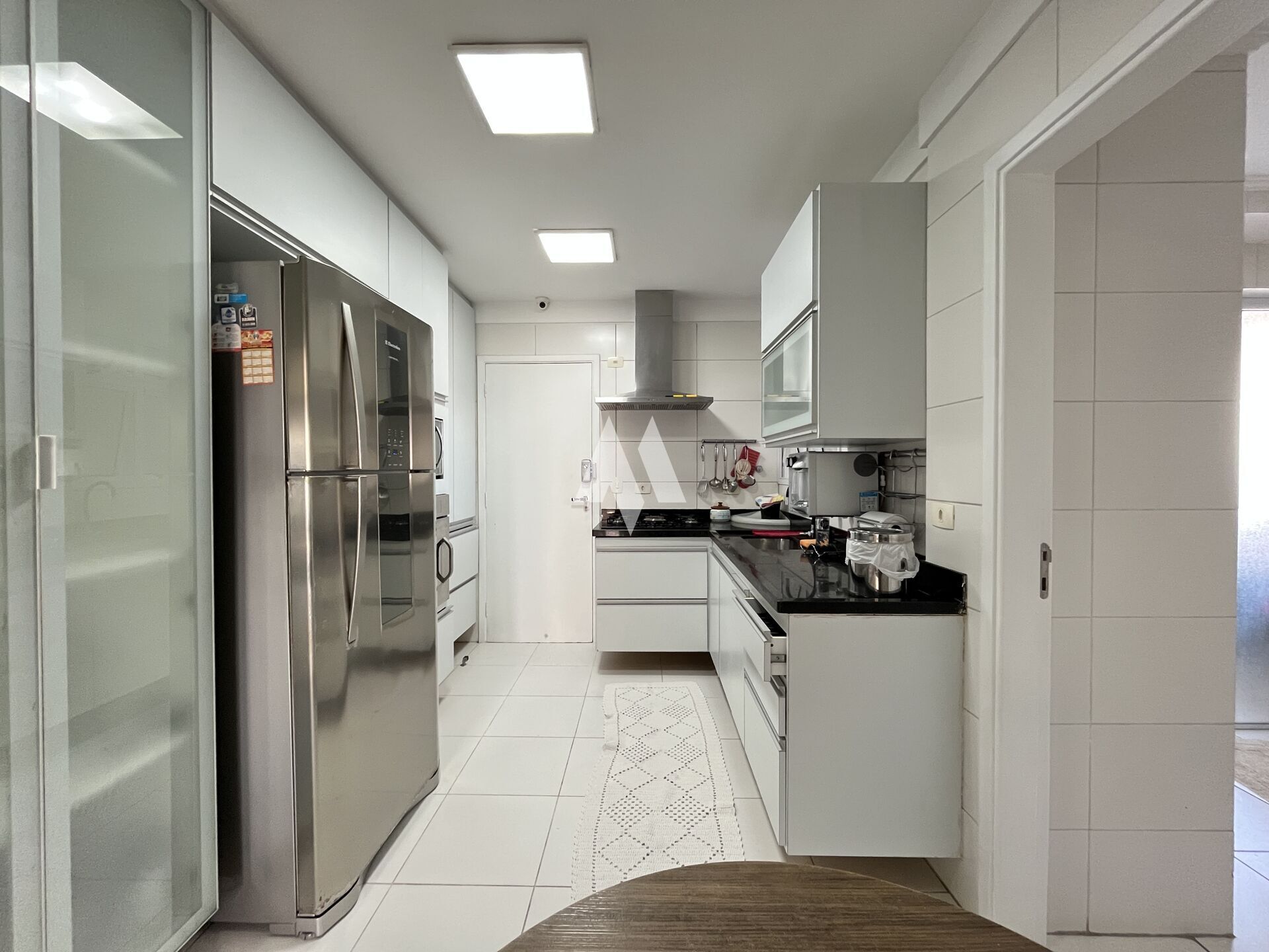 Varanda gourmet com vista livre, sala 3 ambientes, 3 suítes, lavabo, dependência revertida para escritório, cozinha equipada, área de serviço com banheiro, área técnica e depósito privativo no andar.