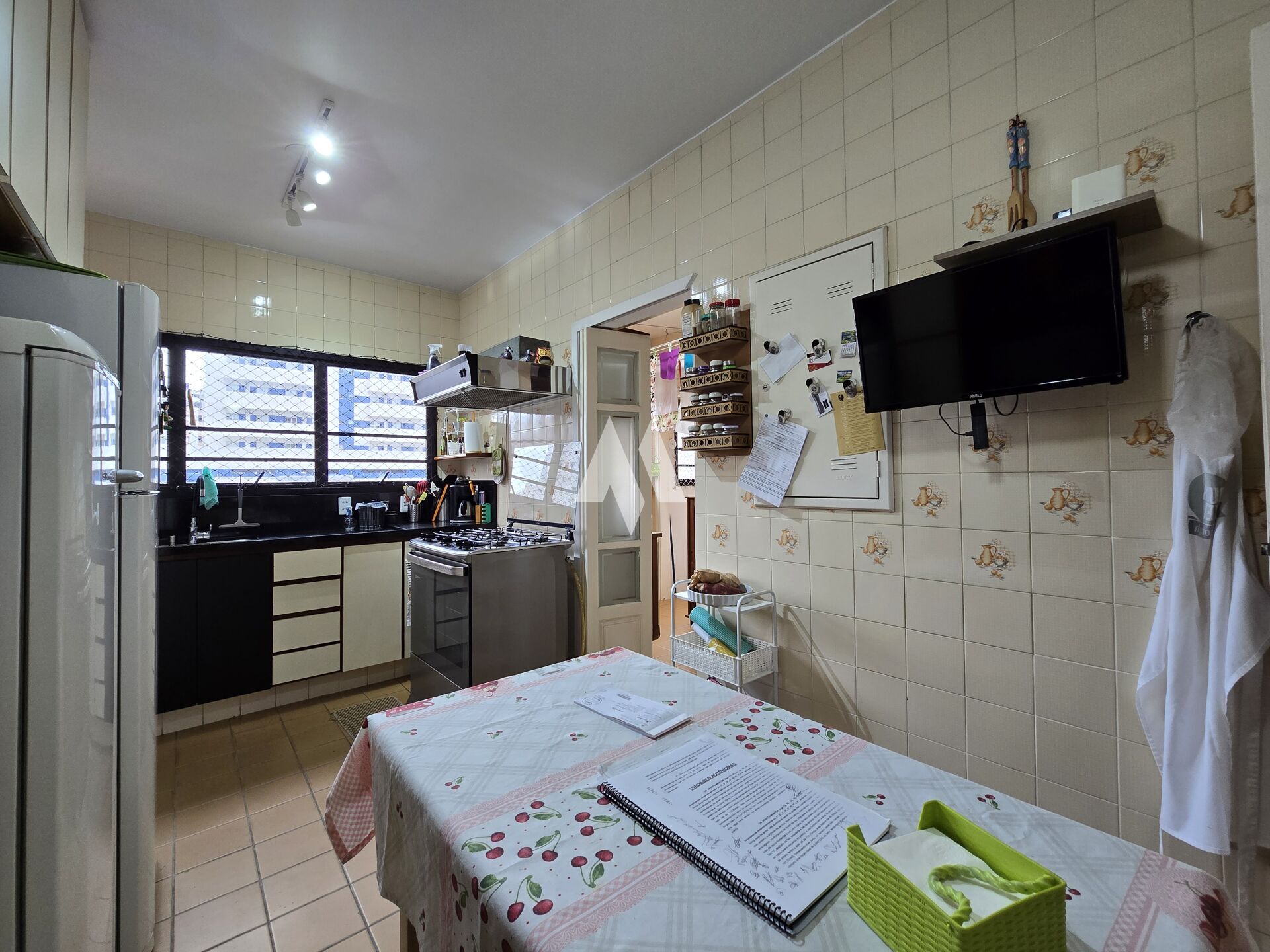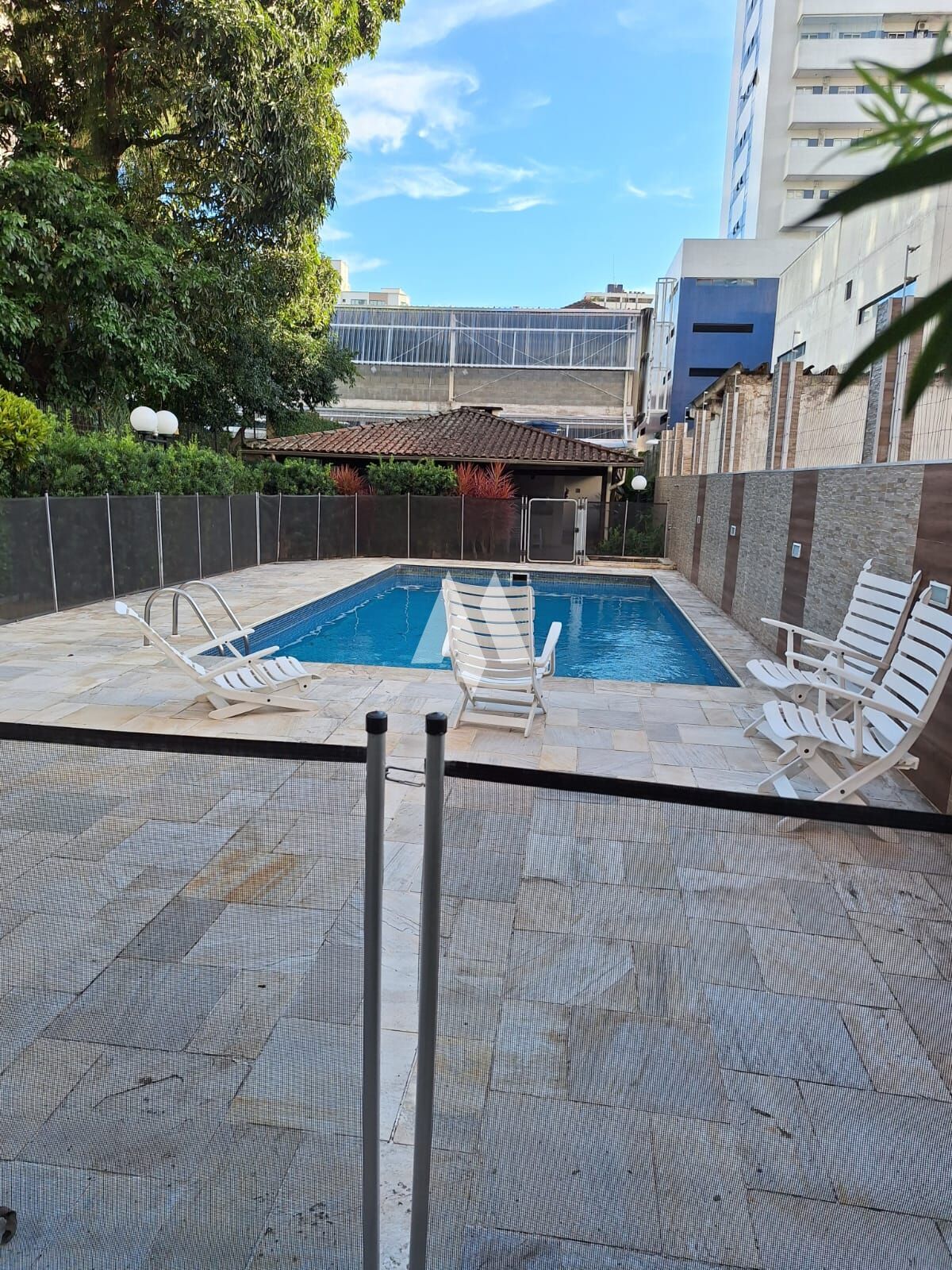 O condomínio oferece área de lazer com piscina e churrasqueira, além de elevador social e de serviço, portão eletrônico, interfone e portaria em meio período, garantindo conforto, segurança e praticidade aos moradores.