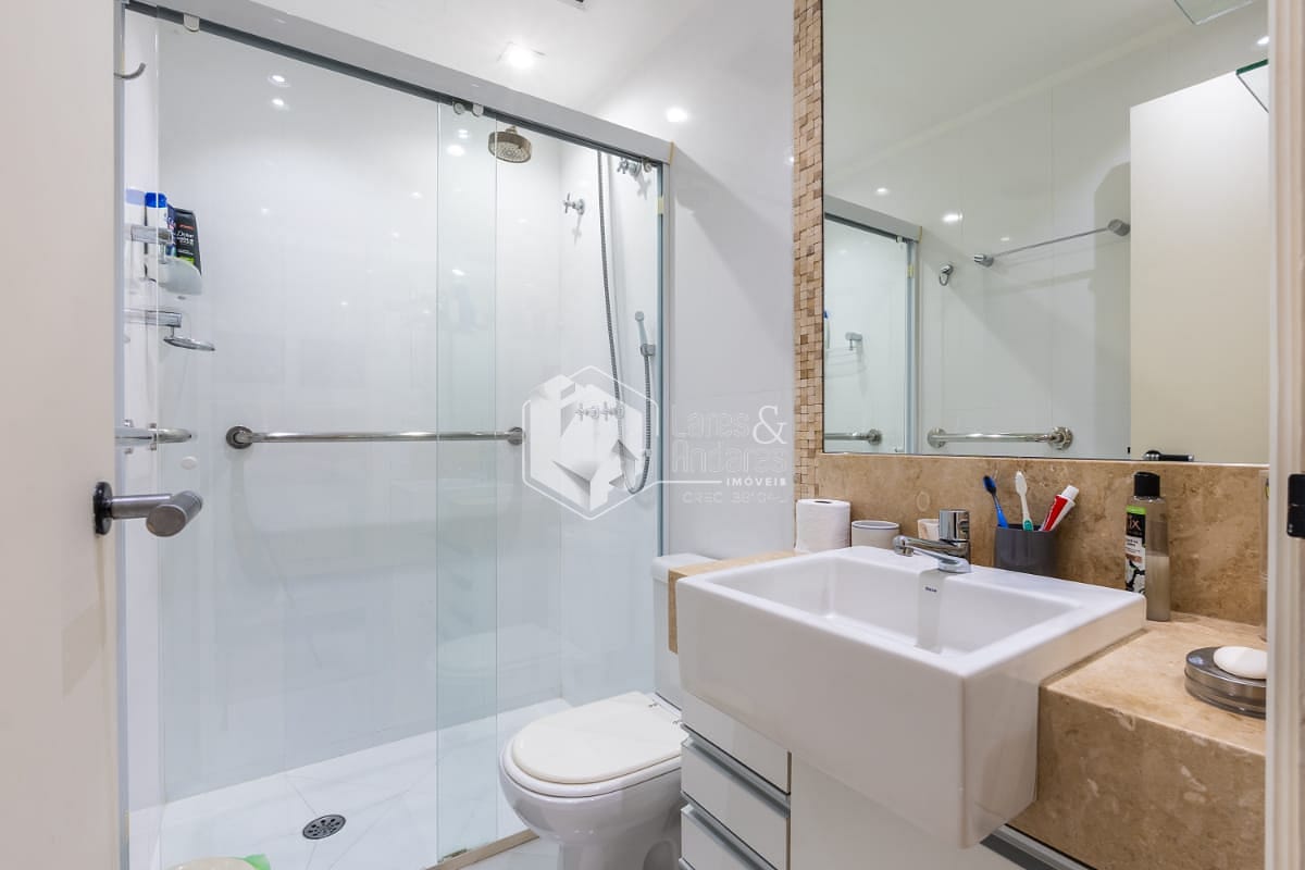 Banheiros bem dimensionados, com acabamentos de qualidade.