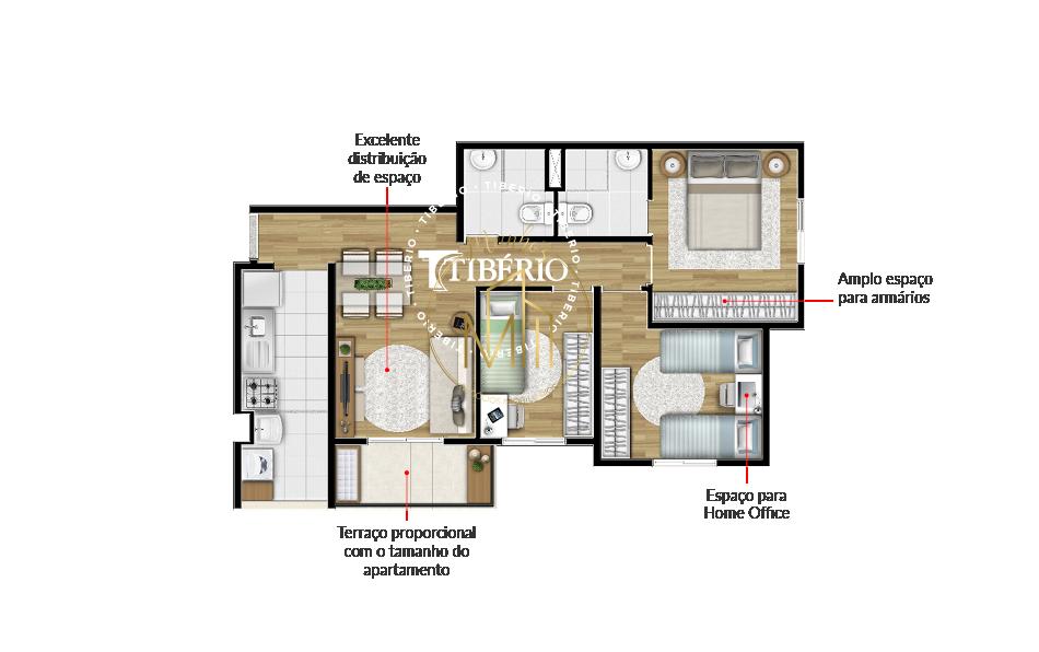 Área Privativa de 59,59 m².