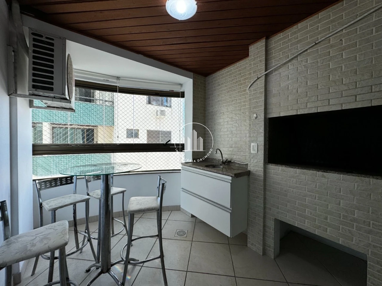 - Sacada gourmet com pia e churrasqueira a carvão;