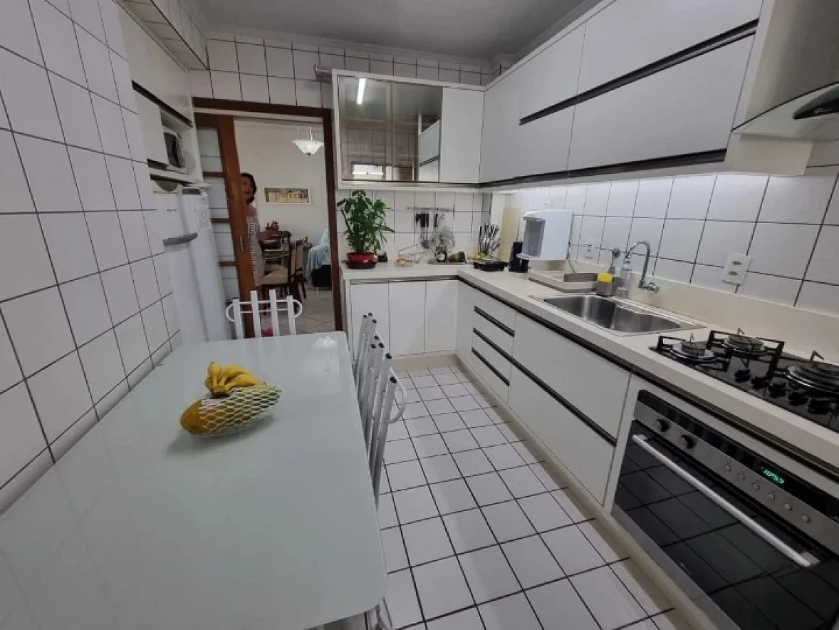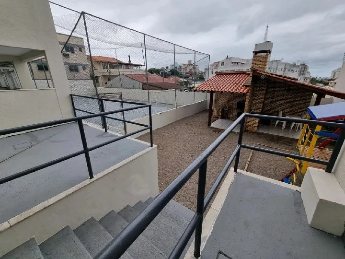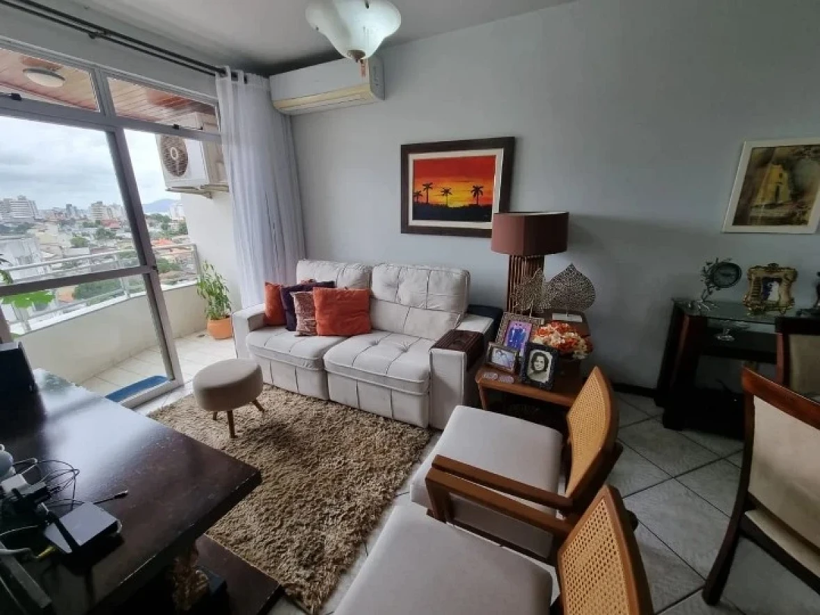 Apartamento em Capoeiras Florianópolis, 100m² privativos, 03 quartos com suíte, sala dois ambientes com sacada, cozinha com armários planejados, garagem com hobby box, sacada na suíte. Imóvel possui armários planejados na cozinha. Sol da manhã, vista parcial do mar.