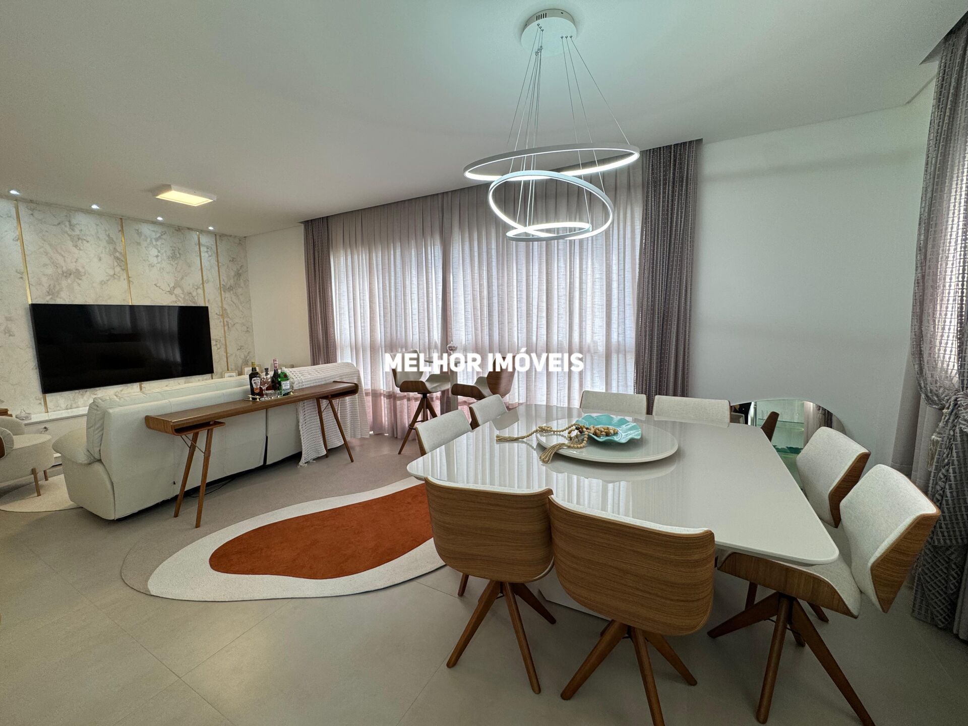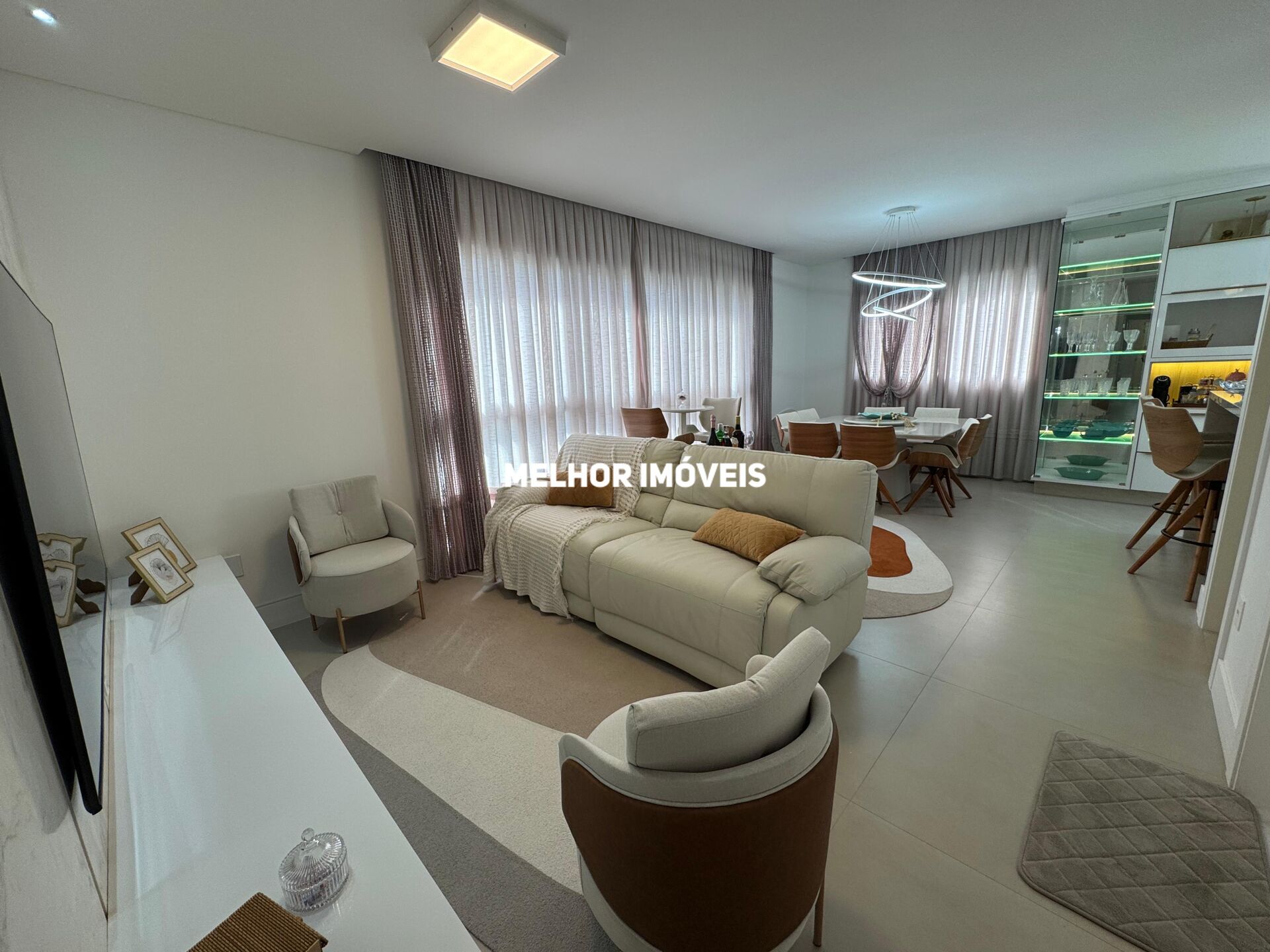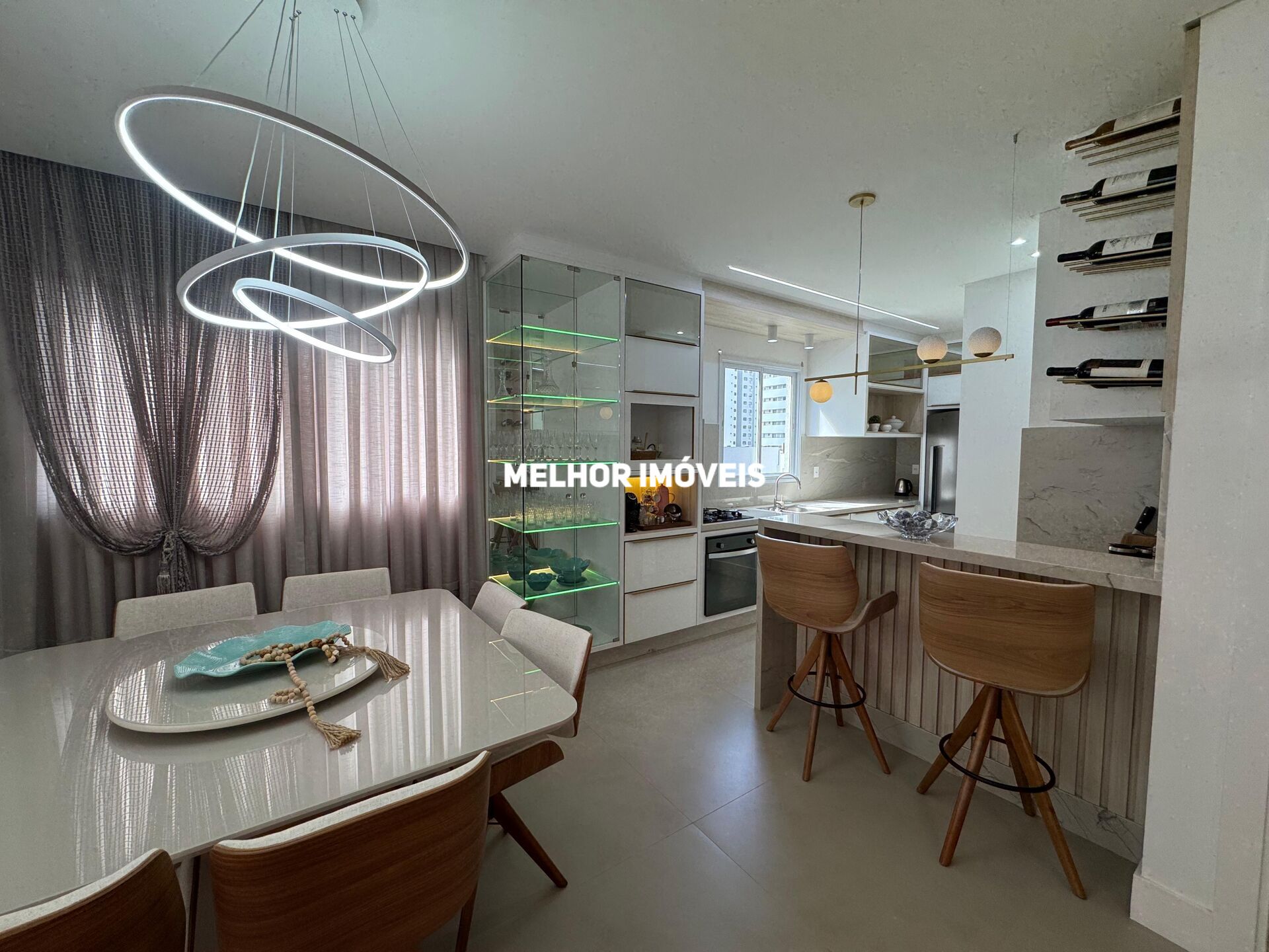 Apartamento Equipado com 03 suítes, living integrado, lavabo, sala de estar e jantar, área de serviço, churrasqueira a carvão e 03 vagas de garagem.