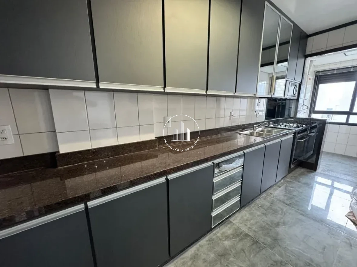 Este apartamento está com um excelente padrão de acabamento, sendo o revestimento do piso em porcelanato retificado na cozinha, área de serviço e sala e Laminado de madeira nos dormitórios.Tem detalhes em gesso nos tetos. A pintura é toda em produto automotivo, tanto nas paredes, quanto nos itens de pontos elétricos, ar condicionados e portas.