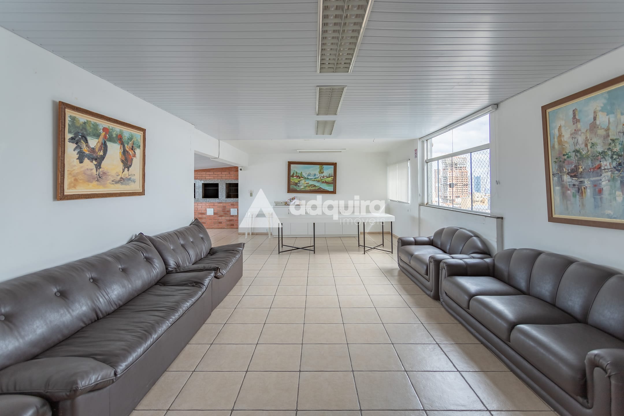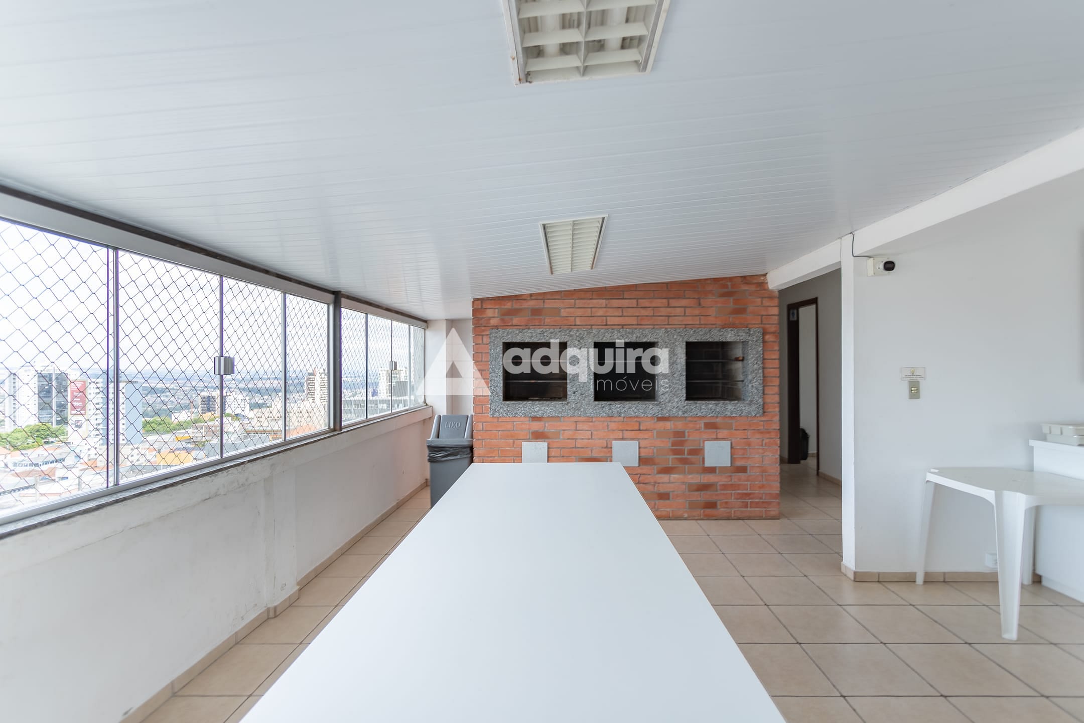 Salão de festas com churrasqueira no último andar, proporcionando uma bela vista pra cidade.