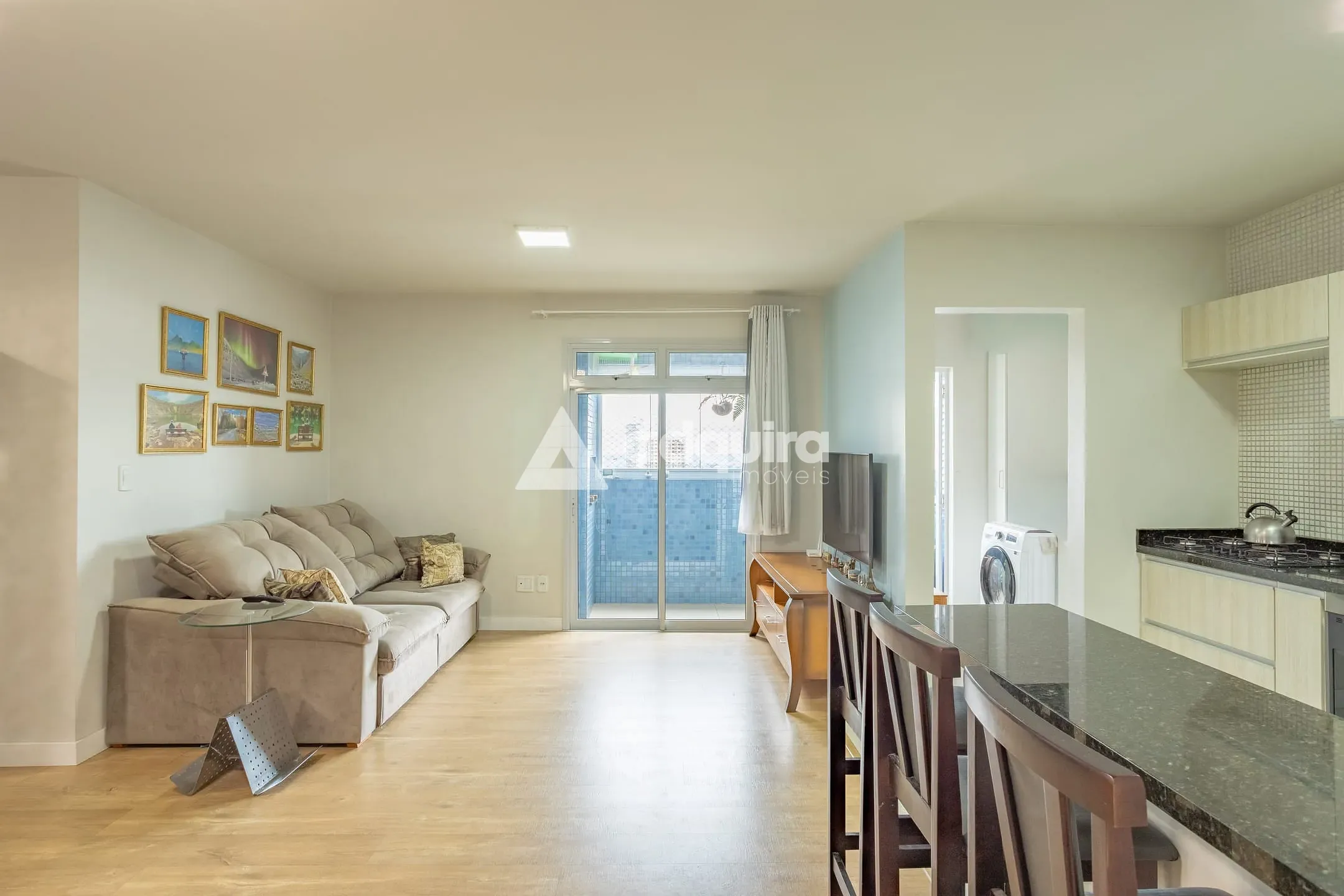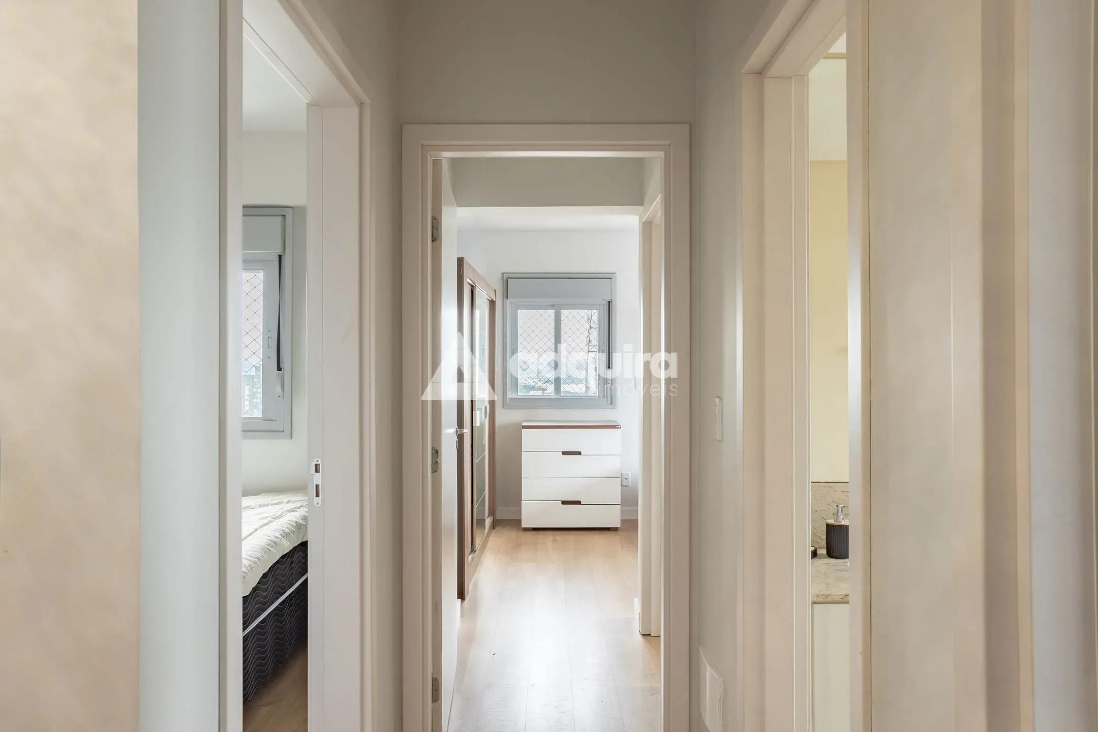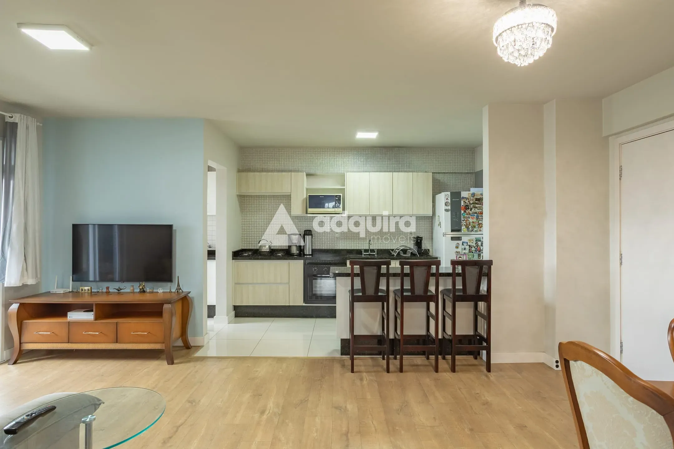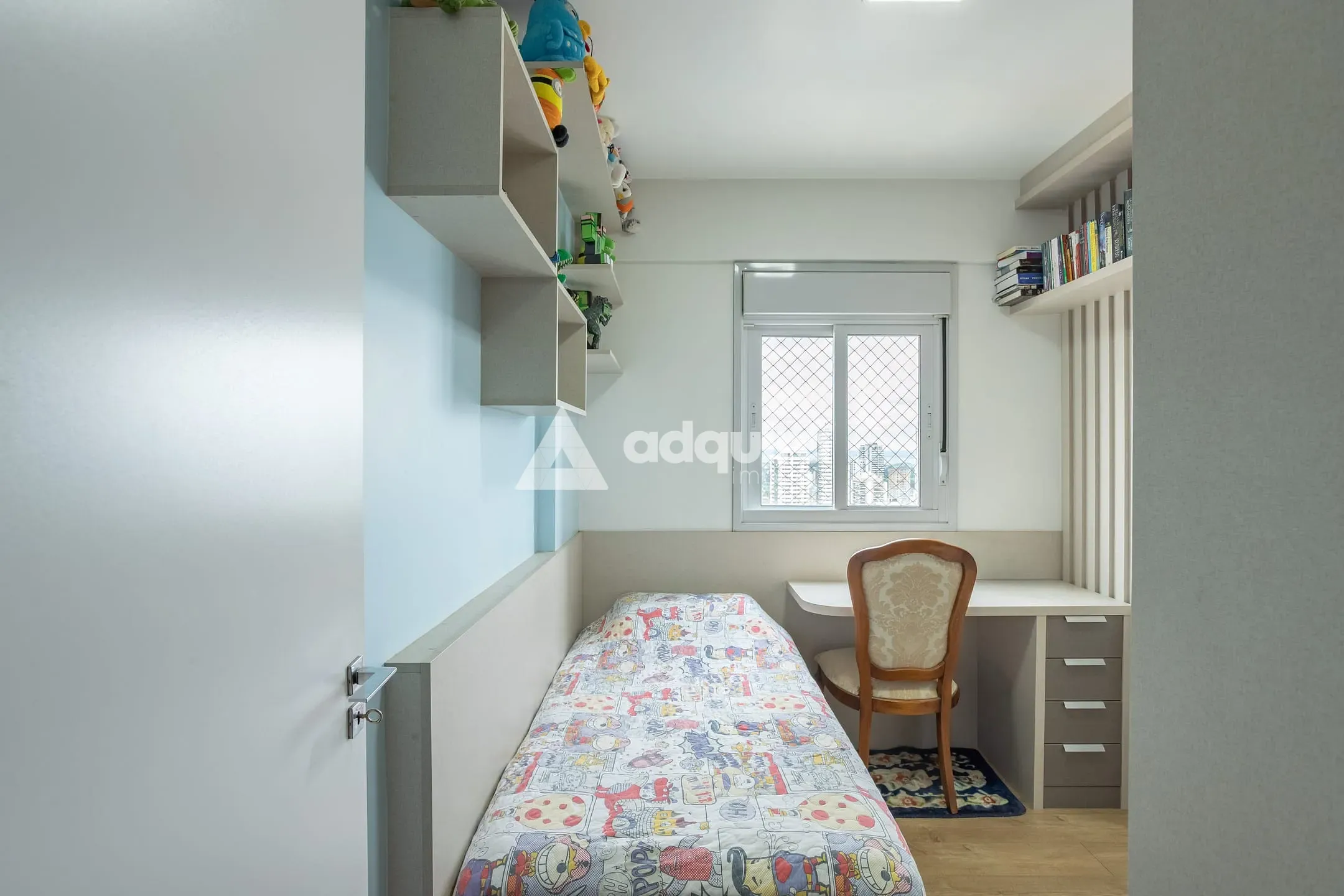 O apartamento conta com 3 quartos, sendo 1 suíte, com destaque para o quarto infantil totalmente mobiliado. A cozinha possui móveis planejados e bancada funcional para refeições rápidas, integrada a uma sala ampla e iluminada. Lavanderia com móveis sob medida, banheiros com acabamento planejado e box, além de 2 excelentes vagas de garagem, completam um conjunto pensado para praticidade e elegância no dia a dia.