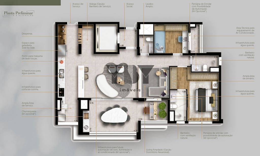 Desfrute de um estilo de vida privilegiado no Loomi Chácara Santo Antônio onde cada apartamento possui dois terraços privativos proporcionando espaços ao ar livre para relaxar e apreciar a vista panorâmica da cidade. Preço e disponibilidade do imóvel sujeitos a alteração sem aviso prévio.