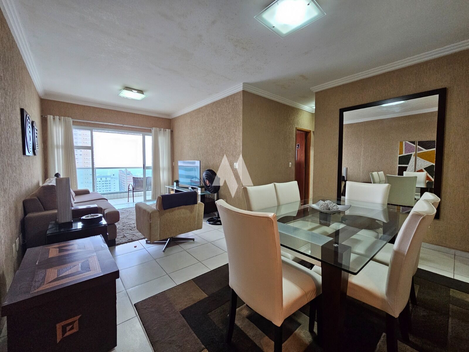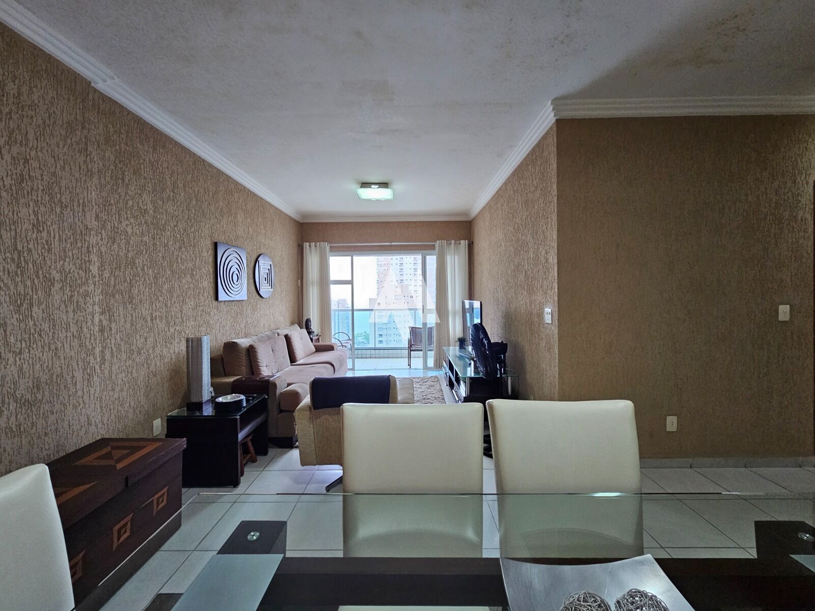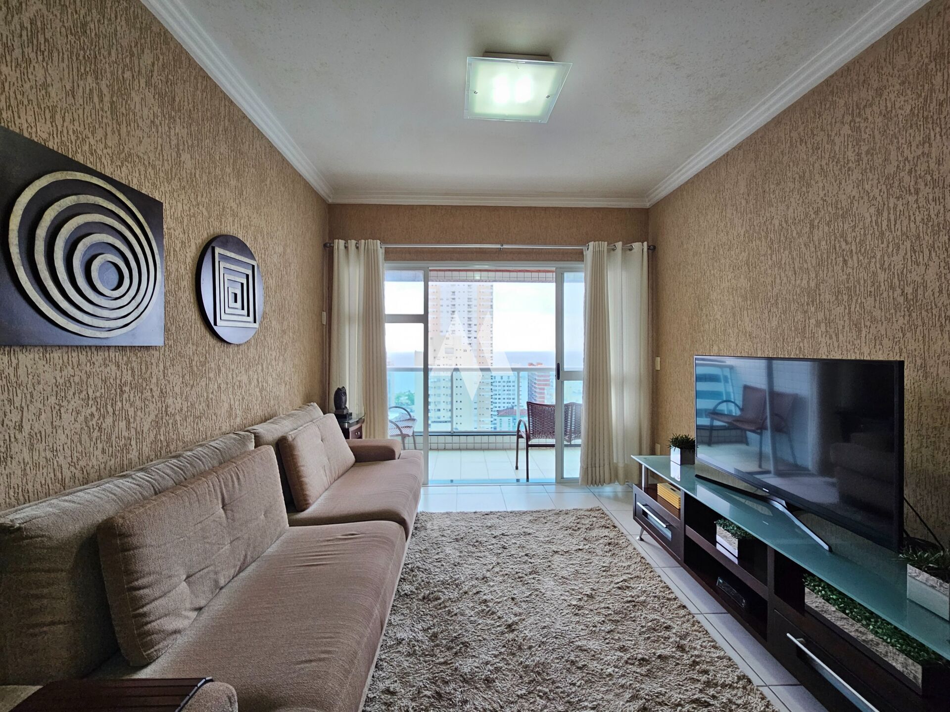 Os 114,00m2 privativos do apartamento proporcionam um excelente aproveitamento do espaço. O imóvel dispõe de duas salas (estar e jantar) e uma varanda mobiliável com vista livre para o mar, garantindo ambientes agradáveis e bem iluminados. Está em bom estado, com ar condicionado Split, armários planejados na cozinha e banheiro, box de vidro e piso cerâmico. O diferencial fica por conta da dependência de empregada revertida para closet e as duas entradas para maior praticidade. A localização é excelente, a apenas duas quadras da praia, meia quadra da Praça do Sesc e a uma quadra do Shopping Praiamar.