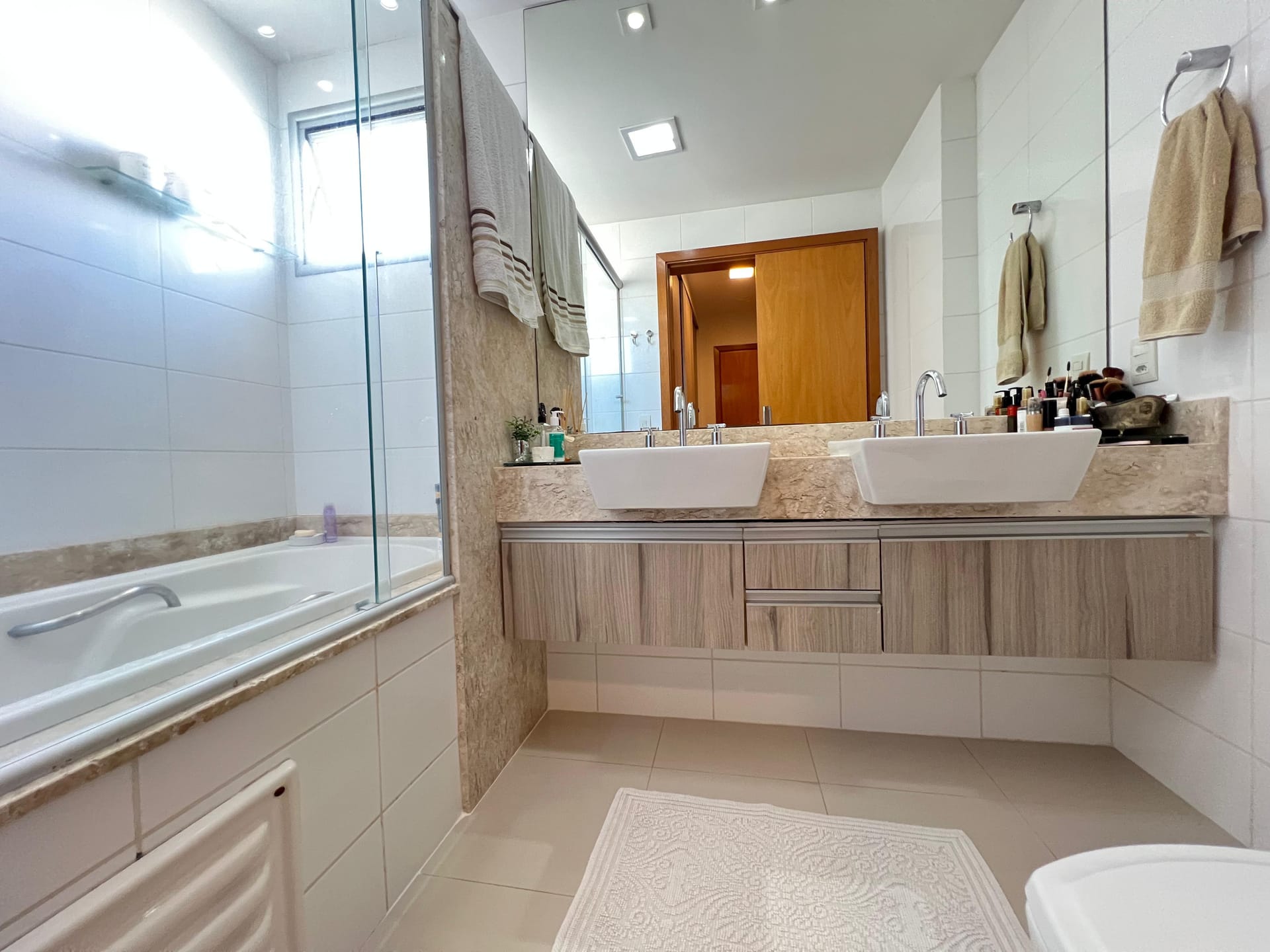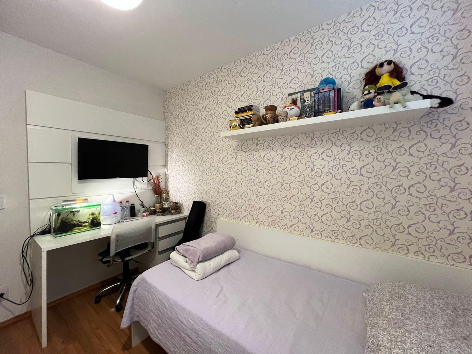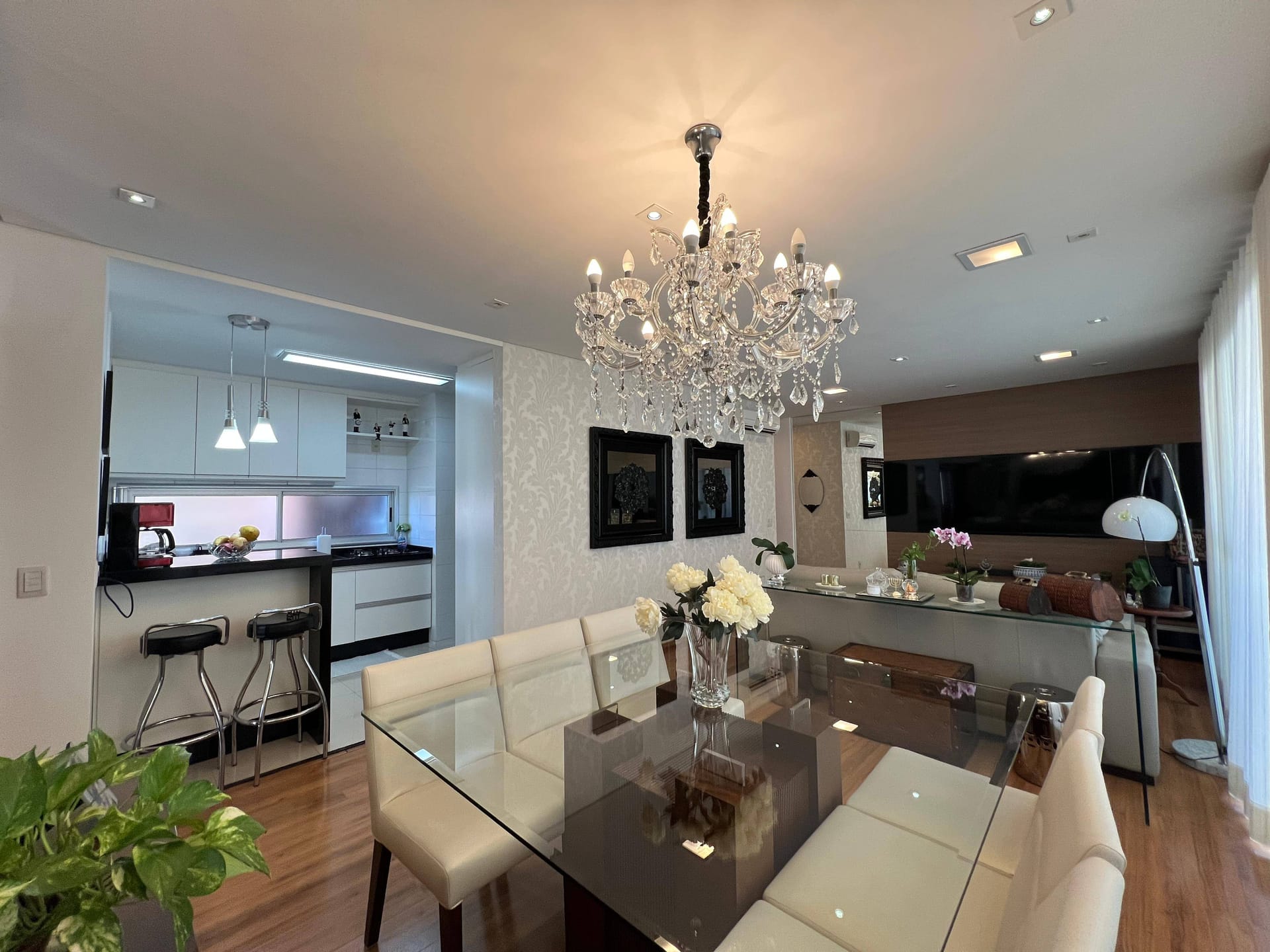 Amplo apartamento com 112m2, 2 vagas de garagem. Sol da manhã. Sala de estar com sala de jantar e cozinha integrada. Sacada com churrasqueira. Área de serviço espaçosa com dispensa para compras e eletrodoméstico. Suíte com closet e banheira, 2 banheiros + lavabo. Outros dois quartos planejados. 2 ar condicionados (sala e suíte) Condomínio com portaria 24 horas, Espaço gourmet, salão de festas, piscina, academia e brinquedoteca.