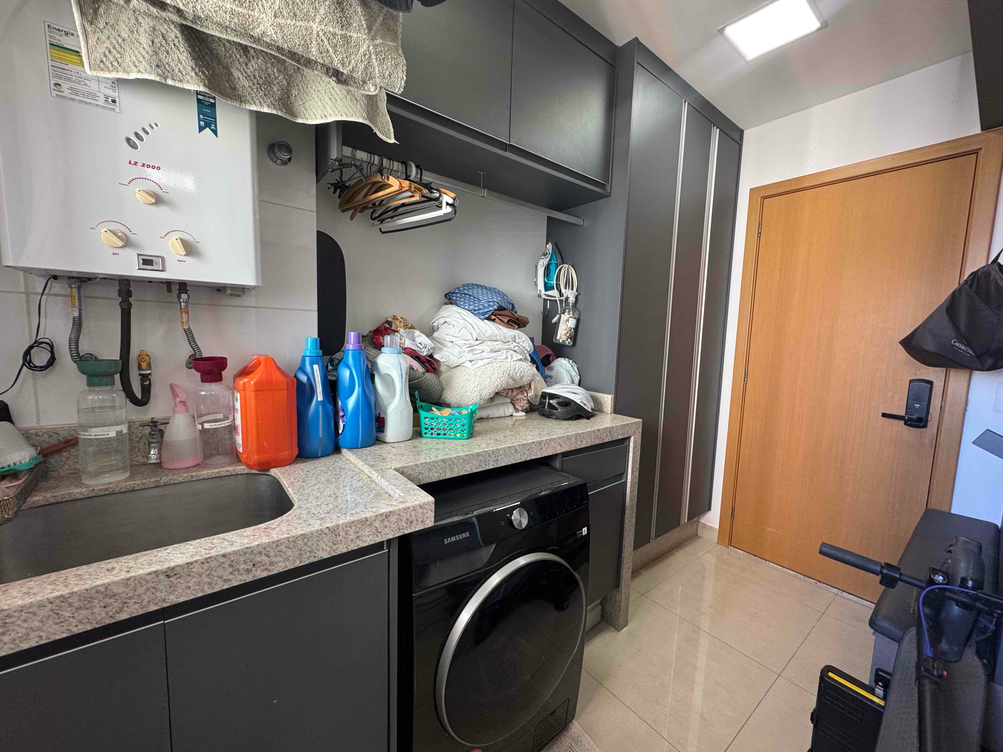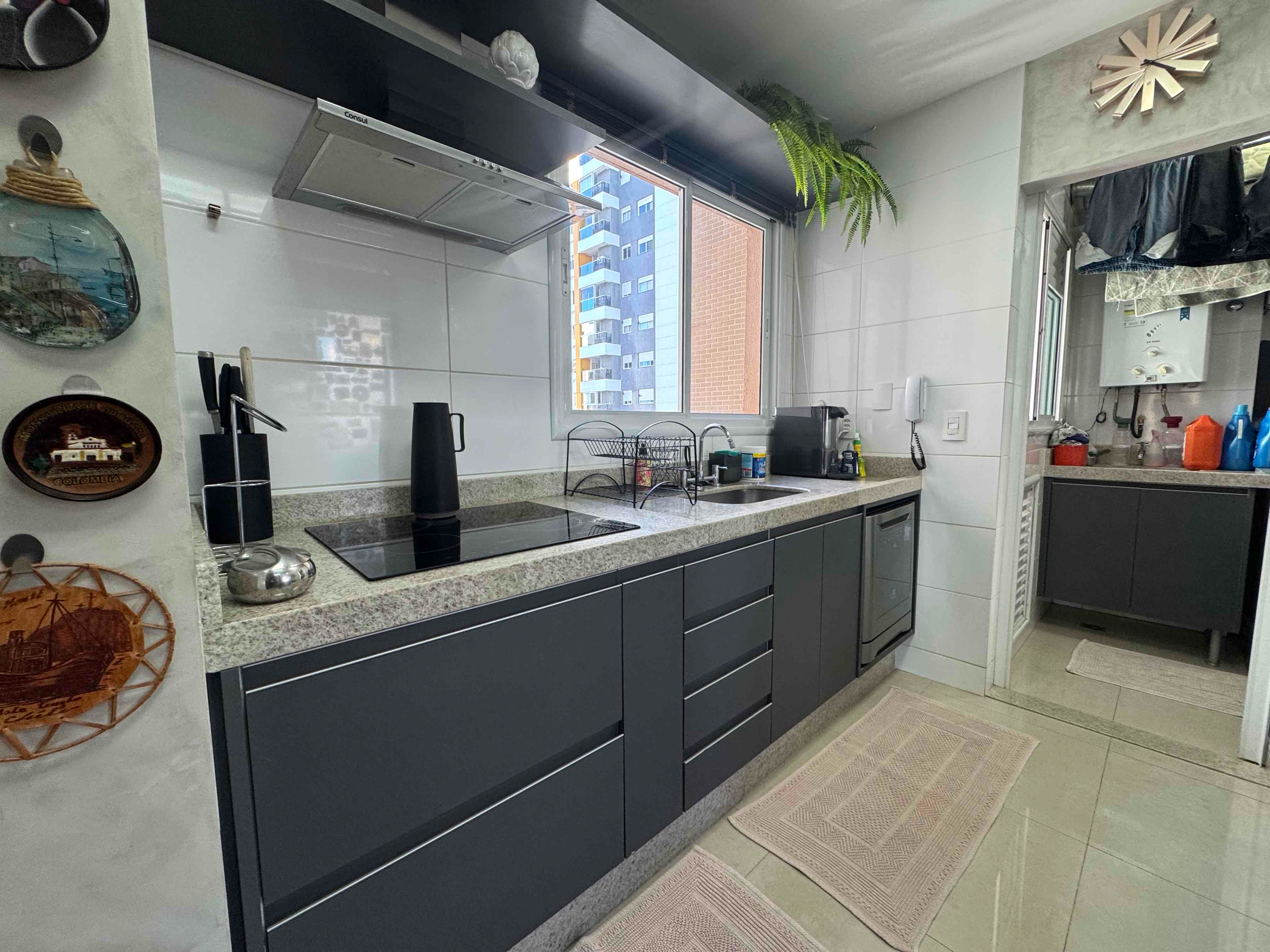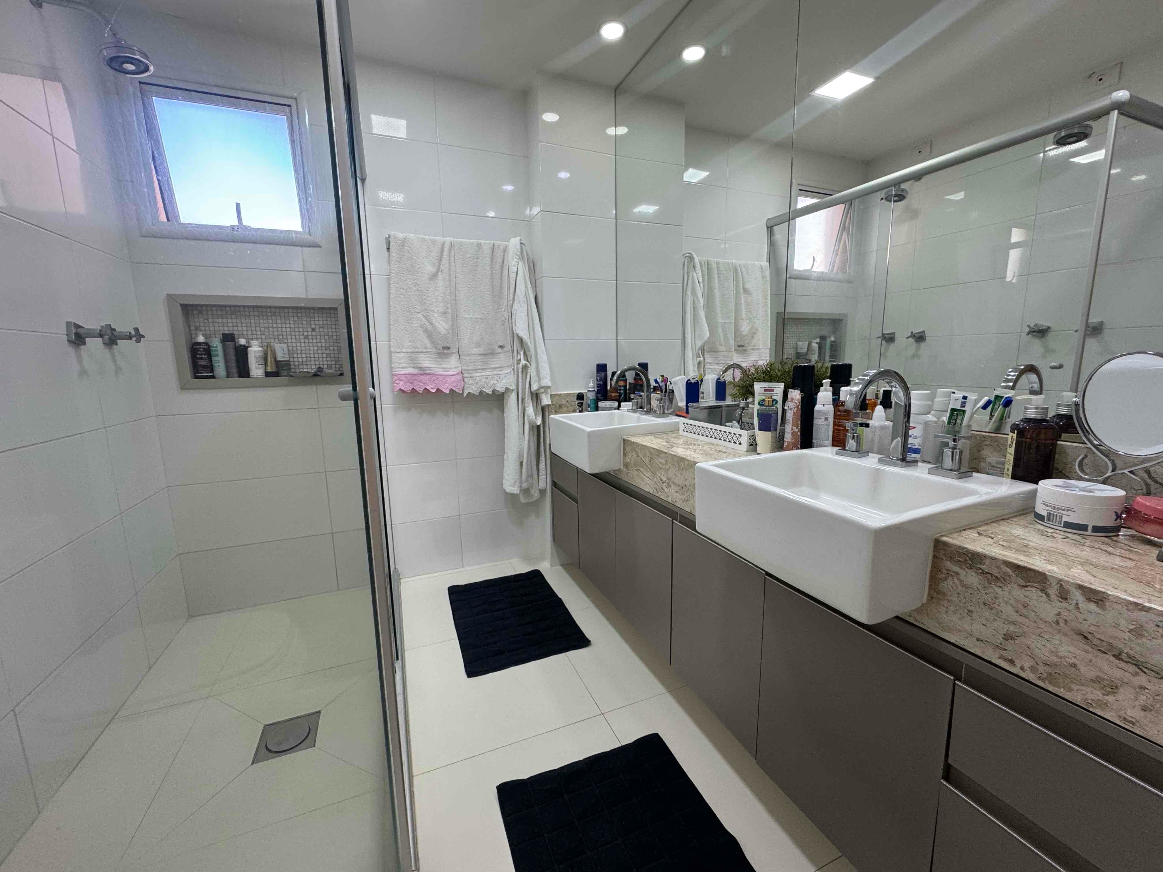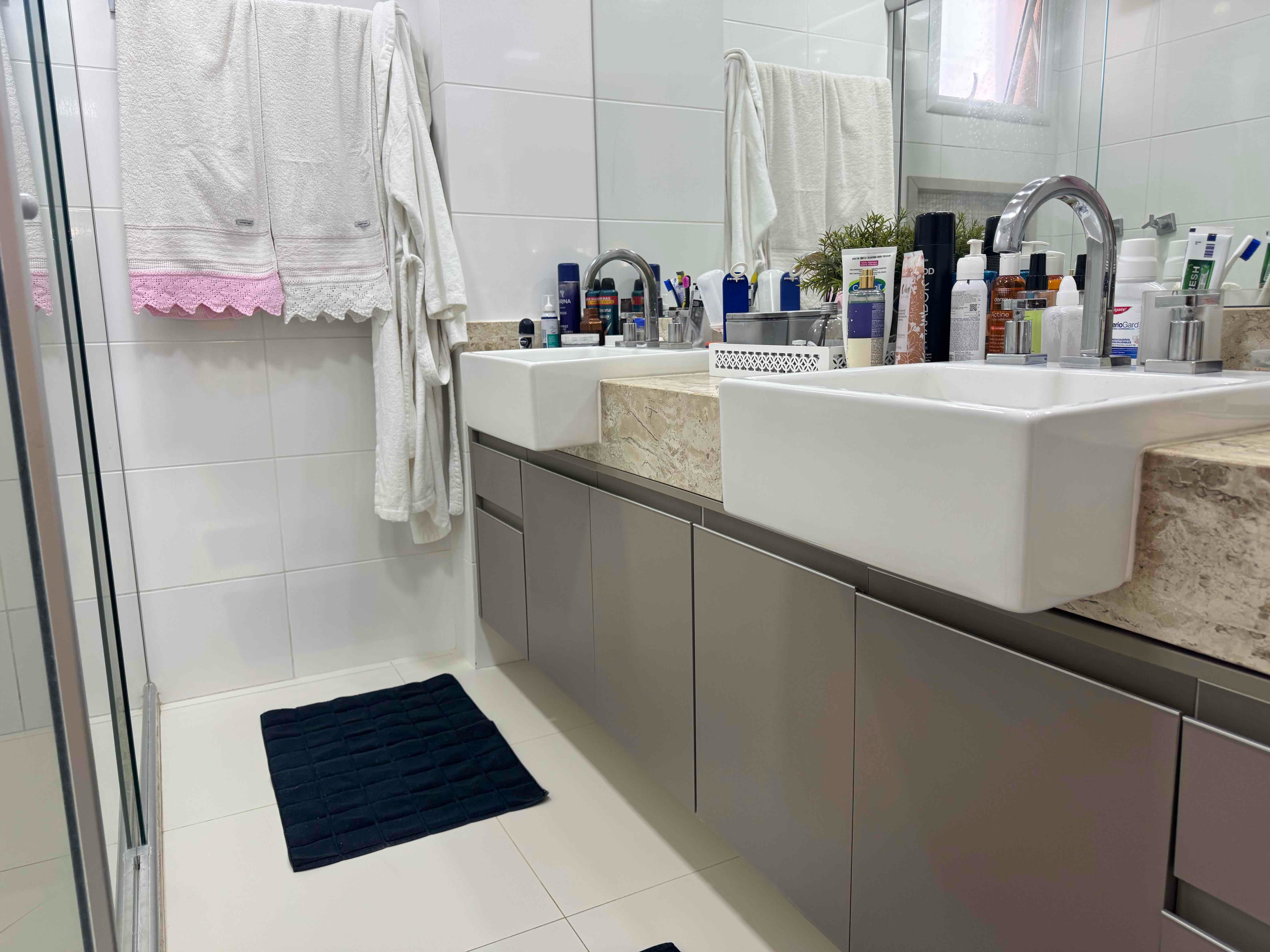 Apartamento em andar alto, sol da manhã e climatizado. São 3 quartos repletos de armários, sendo 01 suíte com cuba dupla e chuveiro duplo. Apartamento mobiliado e decorado. A cozinha foi alterado a planta original, Apartamento com entrada de serviço e lavabo. Churrasqueira integrada as salas. 2 Vagas de garagem.