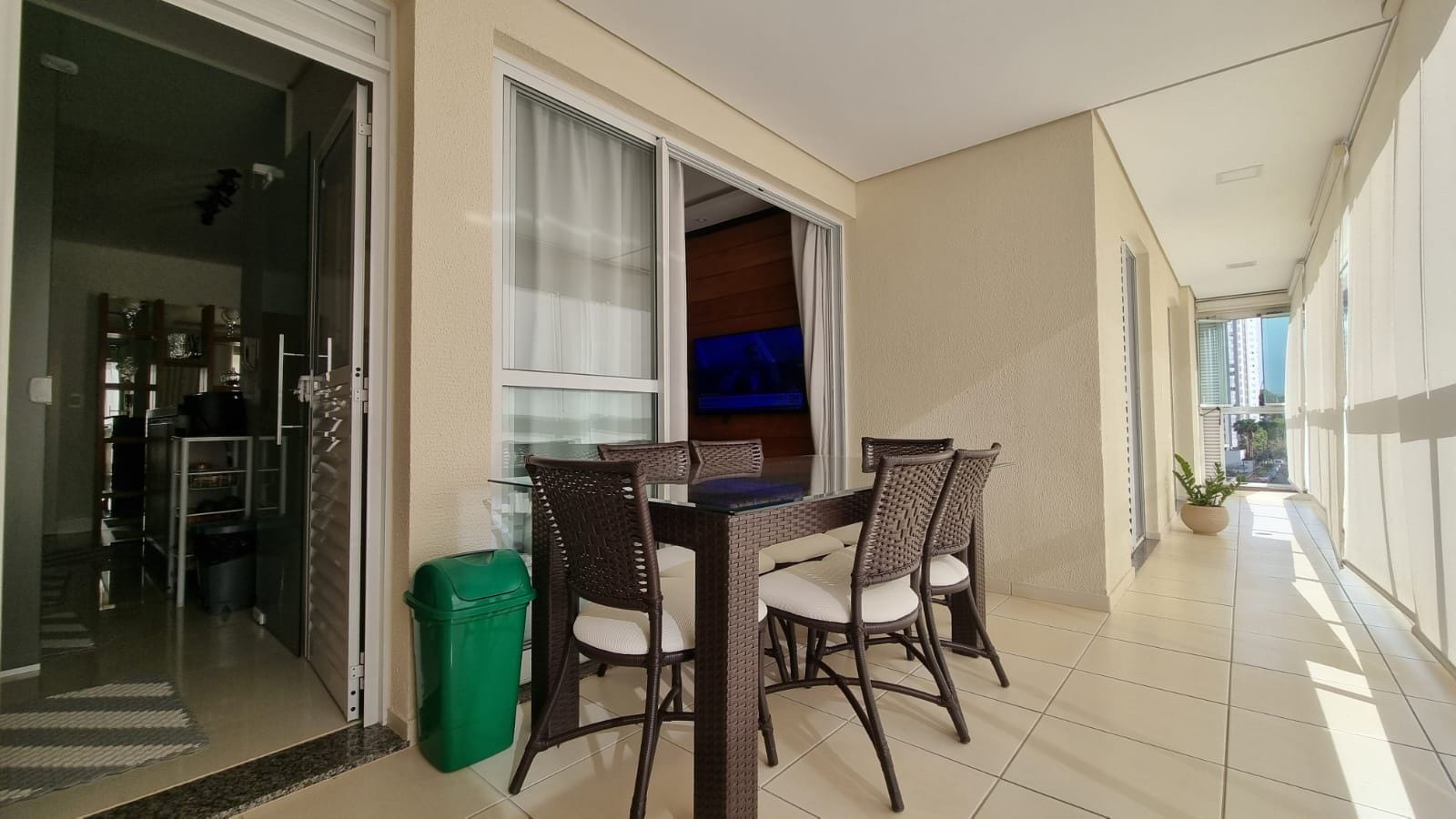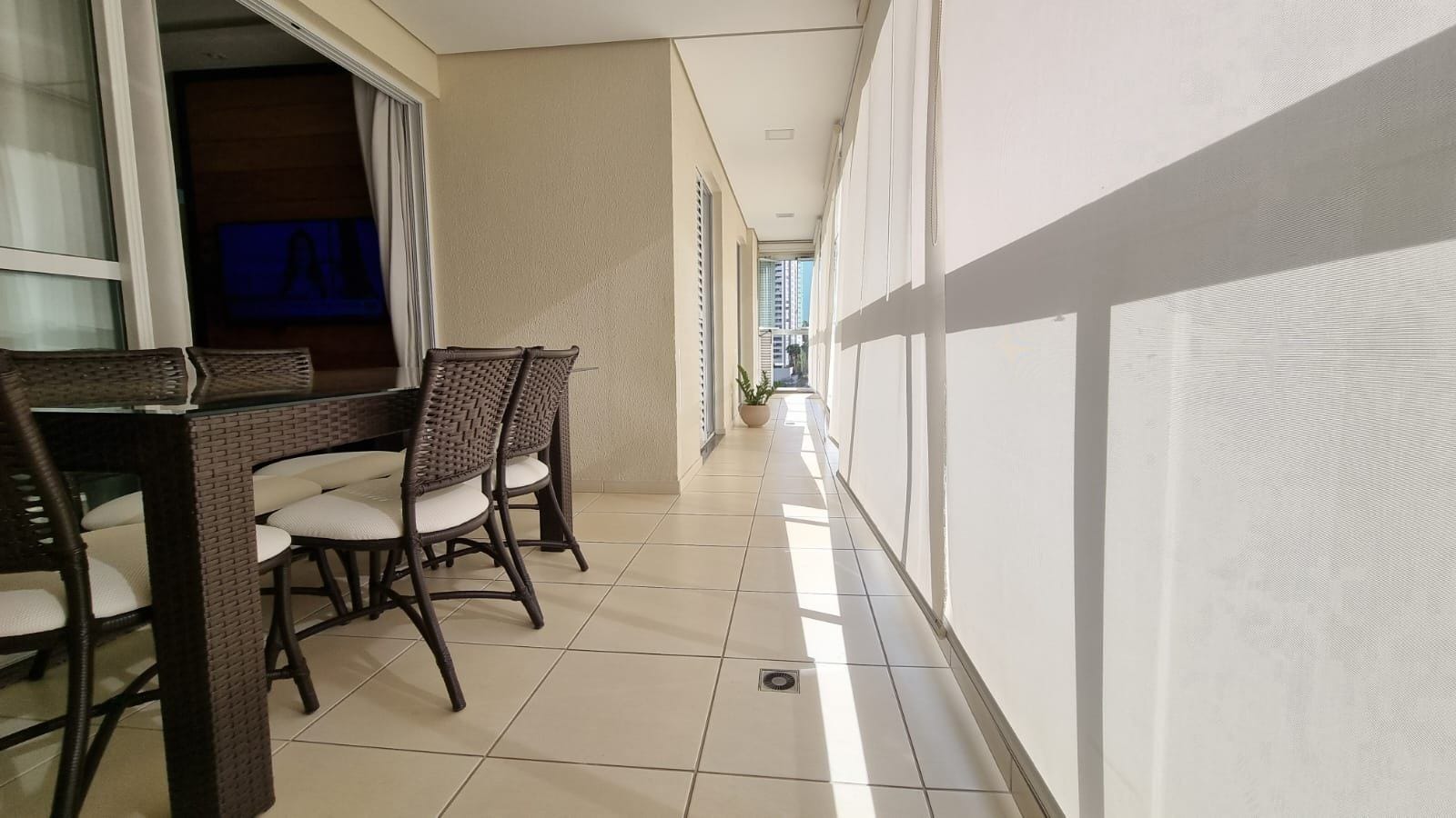 3 quartos (1 suíte), 93m² de área construída, 2 vagas de garagem, cozinha equipada com eletrodomésticos em inox, ar condicionado, pisos em madeira, acabamento premium em todos os ambientes e balcão com vista.