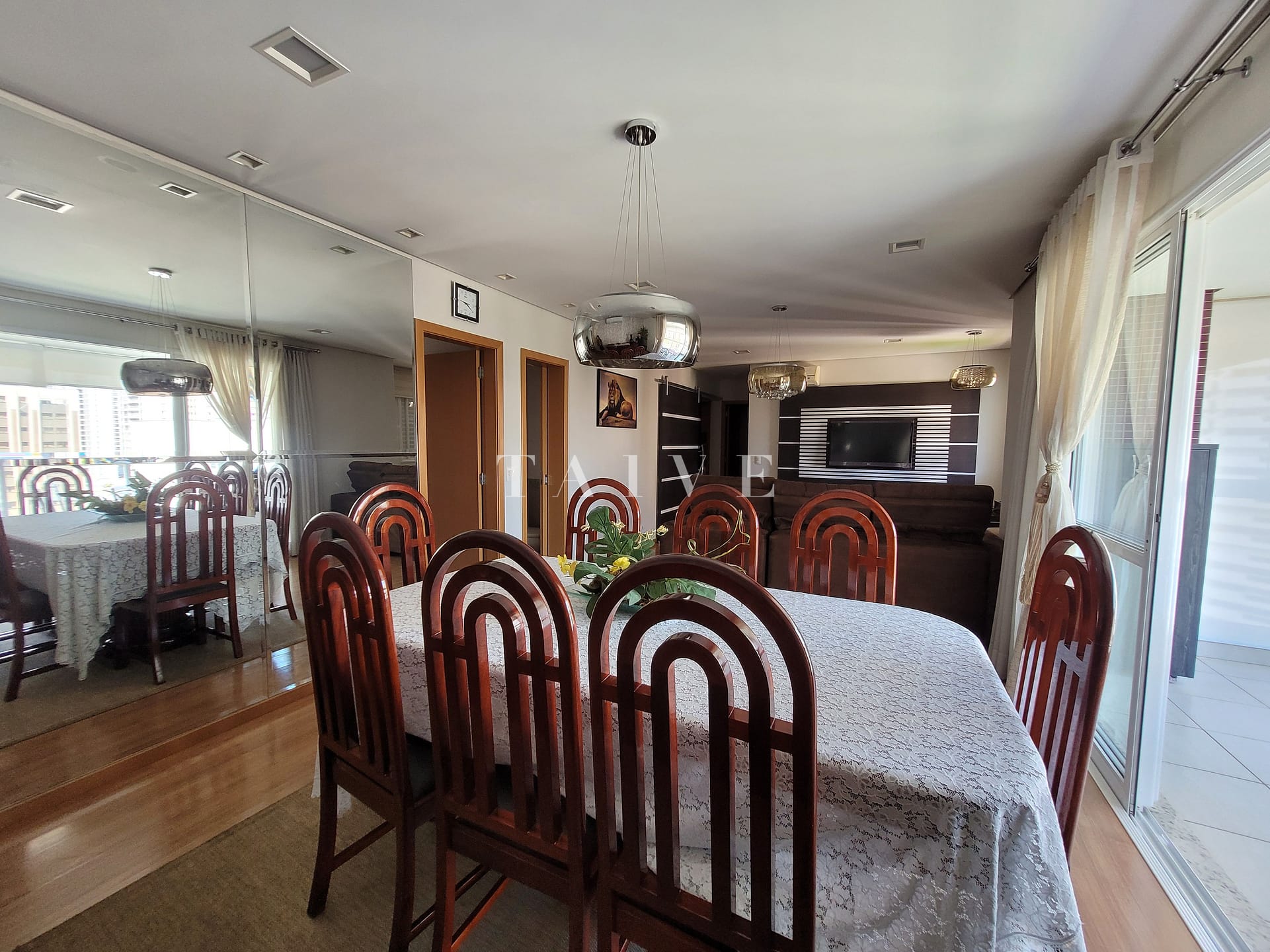 O apartamento conta com diversas comodidades, como churrasqueira, varanda, sacada, piso laminado, armários embutidos na cozinha, quartos e banheiros, além de lavanderia e salas de jantar e estar.