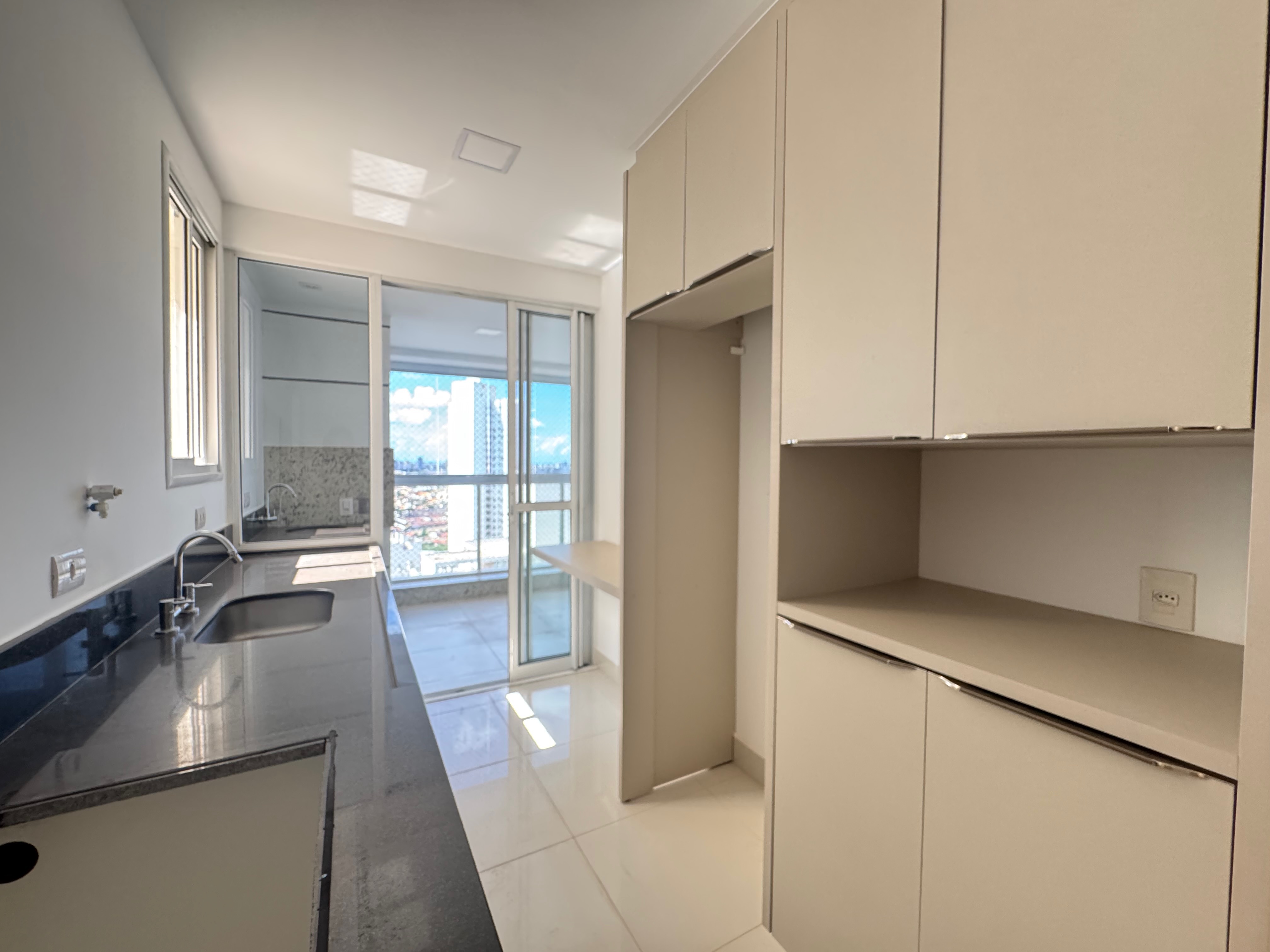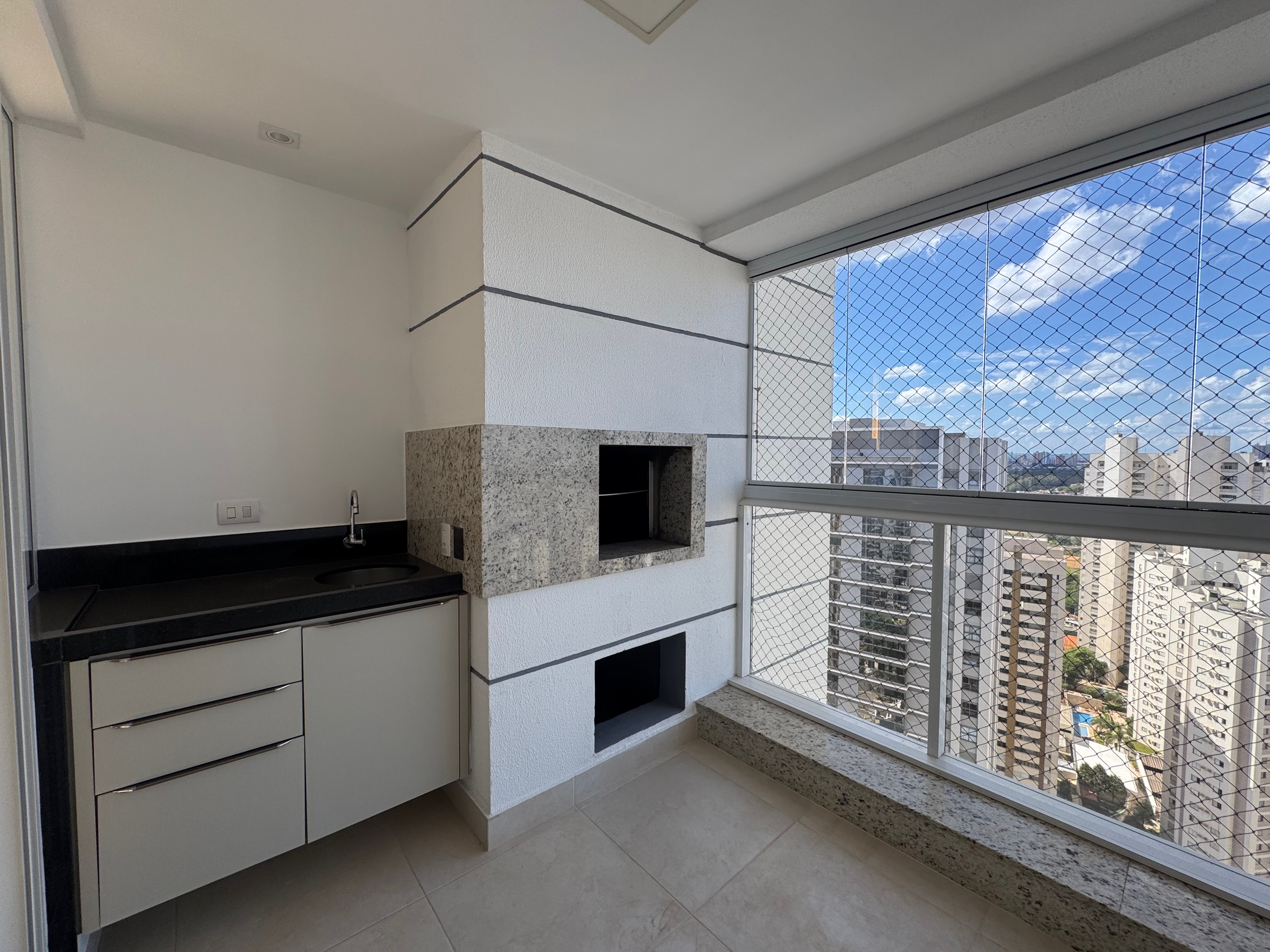 Este apartamento completo em armarios, acolhedor está totalmente equipado, com 3 suítes, lavabo, área de serviço e dispensa. Na cozinha, uma churrasqueira com balcão em granito, armários. 3 vagas paralelas.