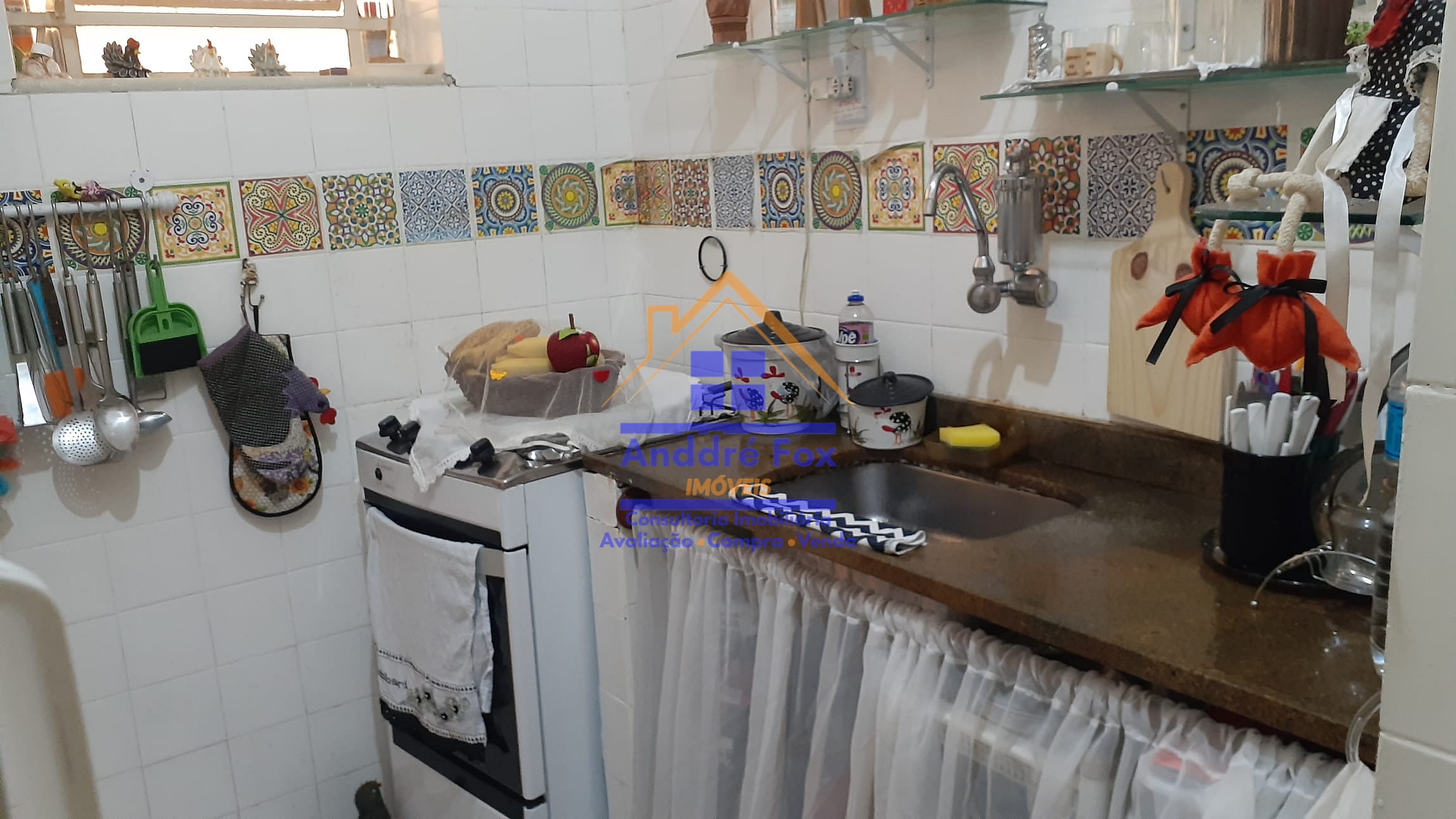 Cozinha com azulejos até o teto; e