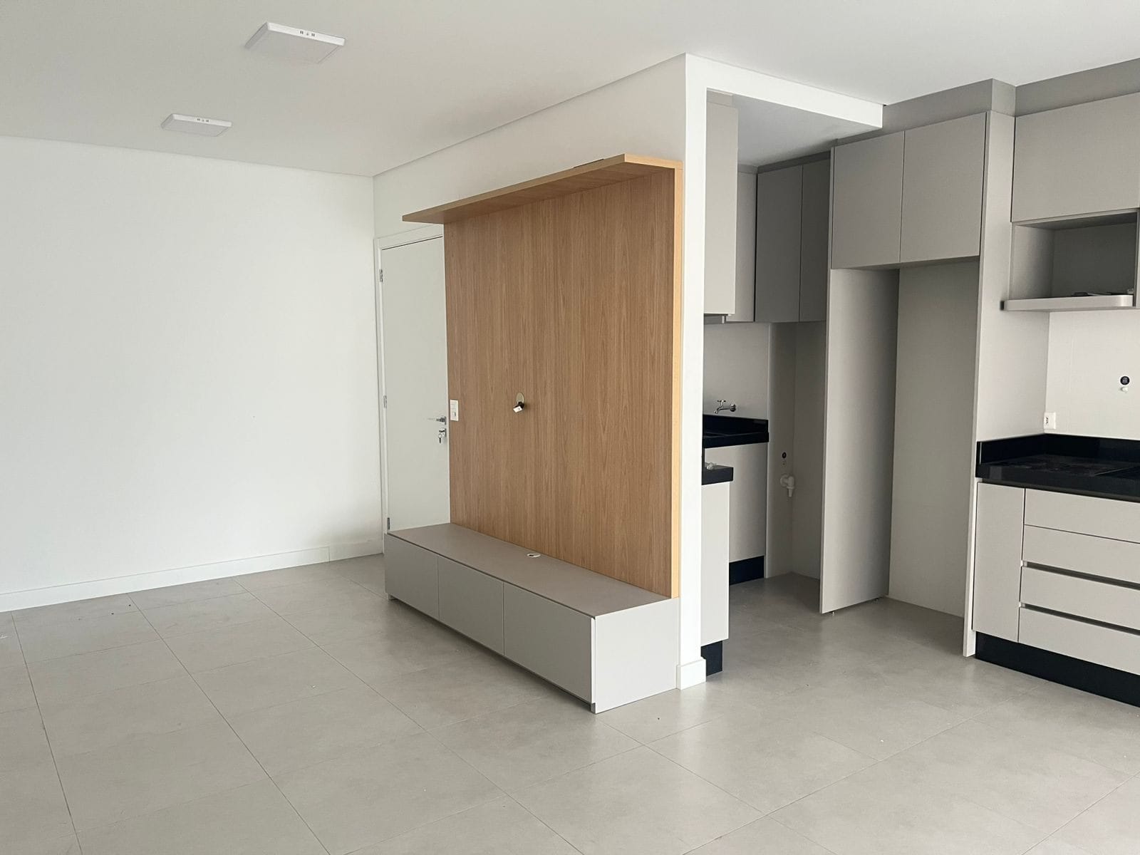 Ambientes bem distribuídos, com armários planejados completos, garantindo organização e aproveitamento inteligente dos espaços. A cozinha é equipada com cooktop, oferecendo praticidade no dia a dia, enquanto a sala ampla traz conforto e versatilidade para receber visitas ou relaxar.