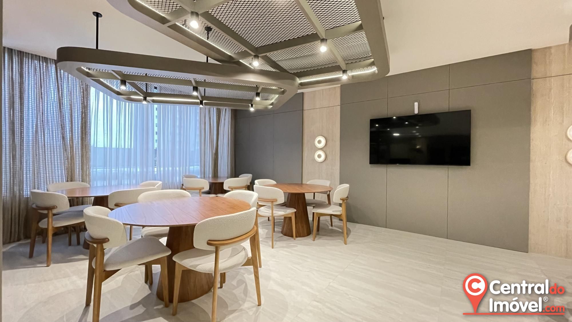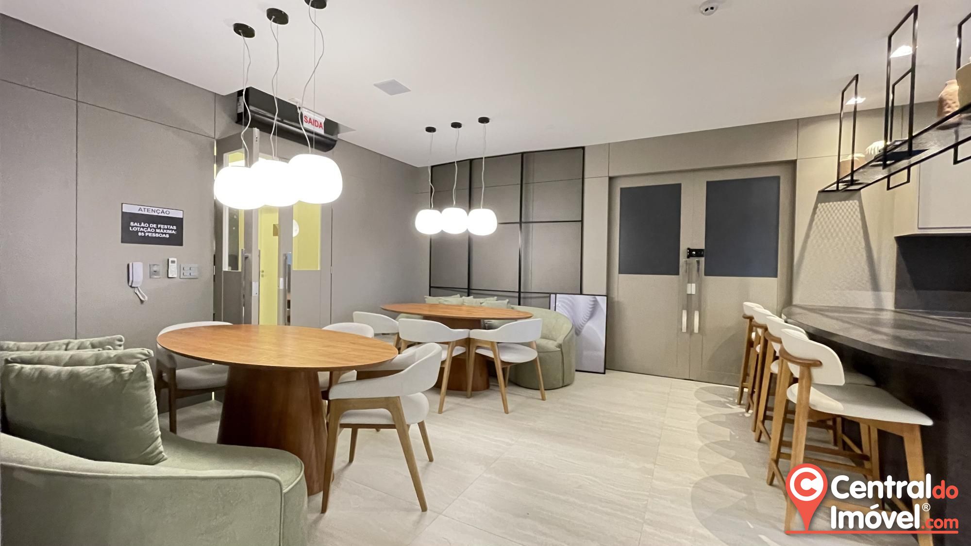 Características da unidade: acabamento em gesso, aquecimento a gás, área de serviço, churrasqueira, circuito de TV, hidrômetro individual, interfone, lavabo, living amplo, piso porcelanato, sacada e varanda.