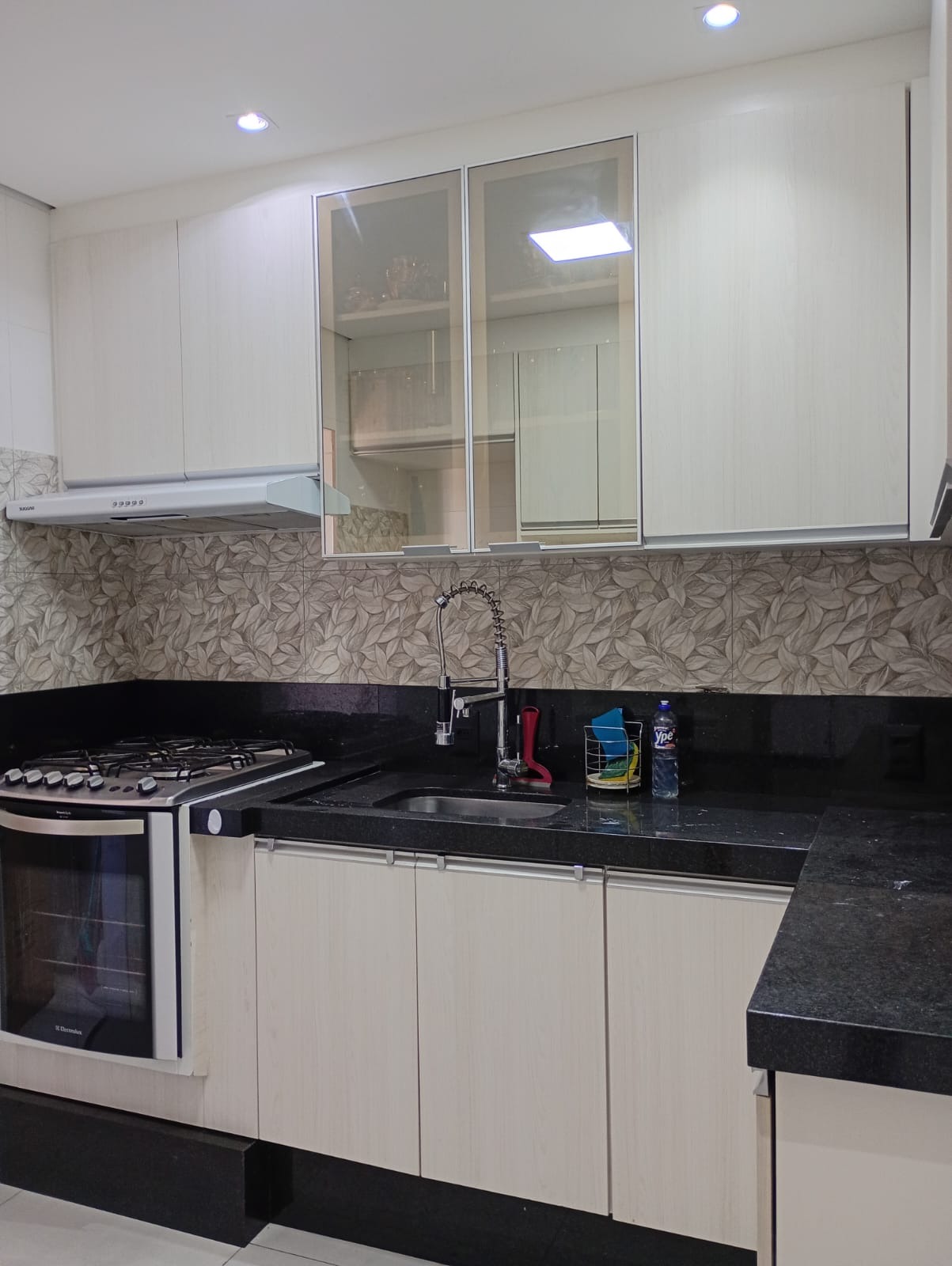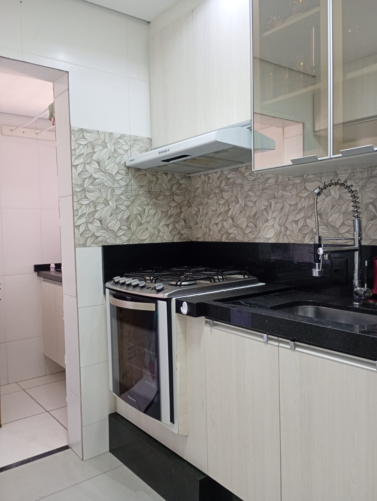 Armário e fogão c forno embutido.