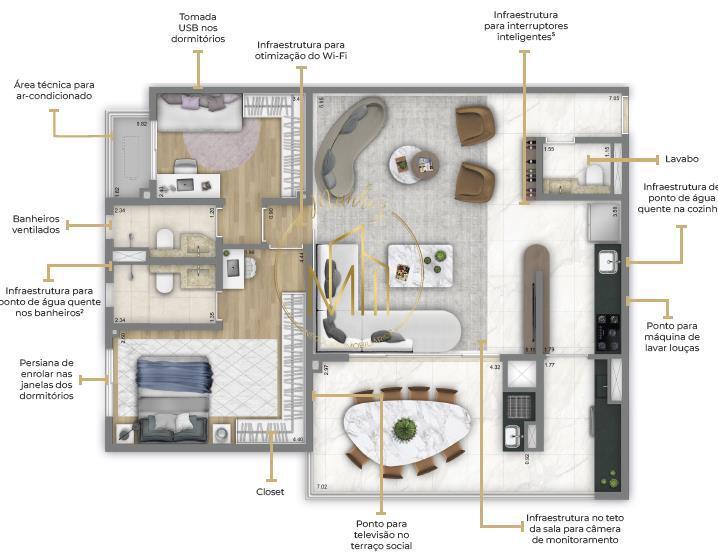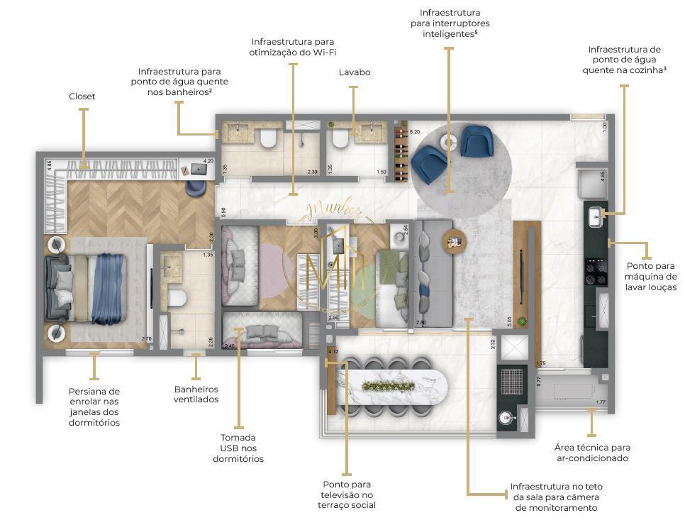 Área Privativa de 104,22 m².