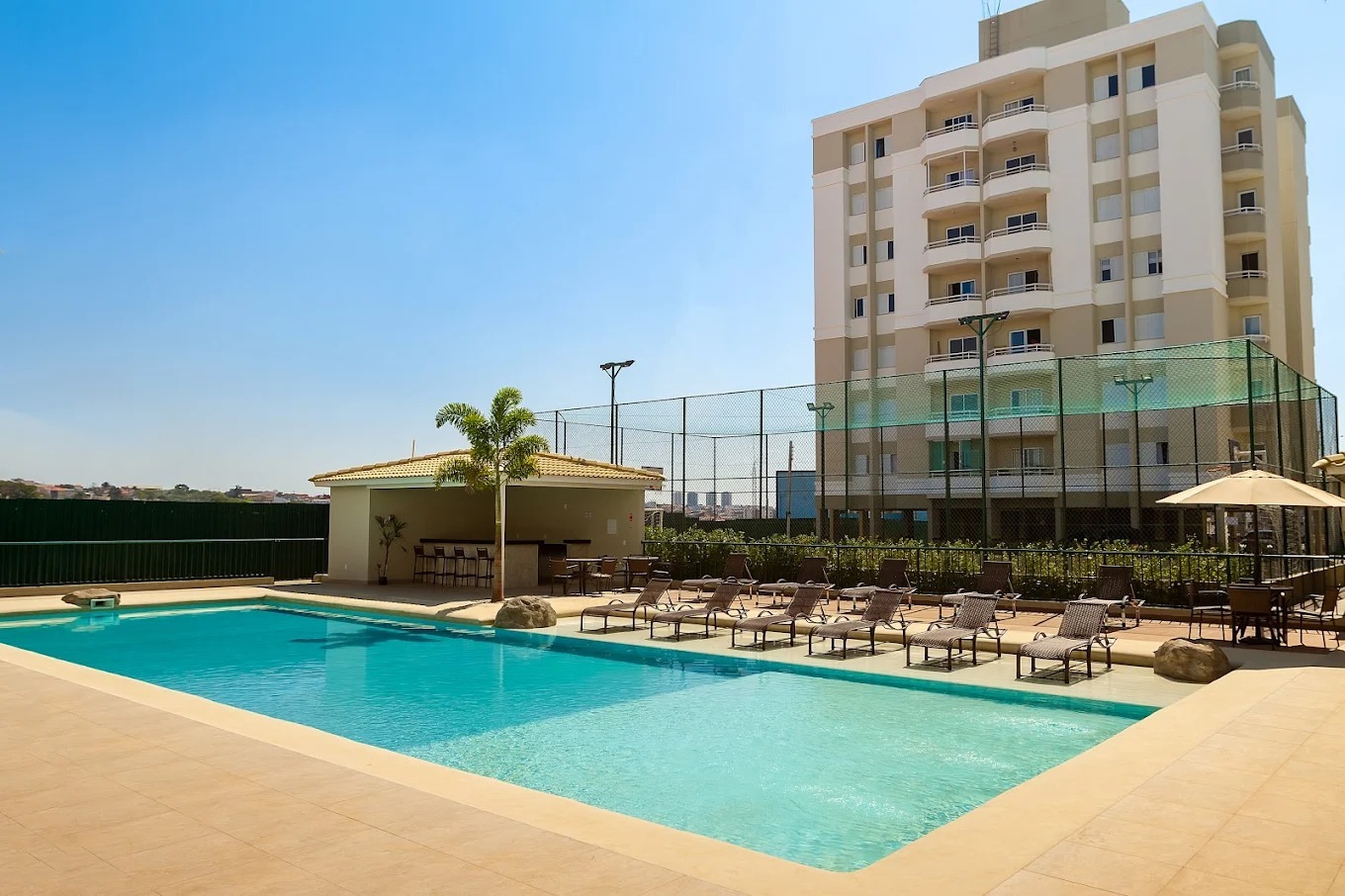 O Nature Residencial Clube oferece uma infraestrutura completa de lazer e conveniência, com piscina adulto e infantil, academia equipada, salão de festas, áreas com churrasqueira, espaços de convivência, elevadores, portaria e segurança 24 horas, em um condomínio fechado e com permissão para animais de estimação.