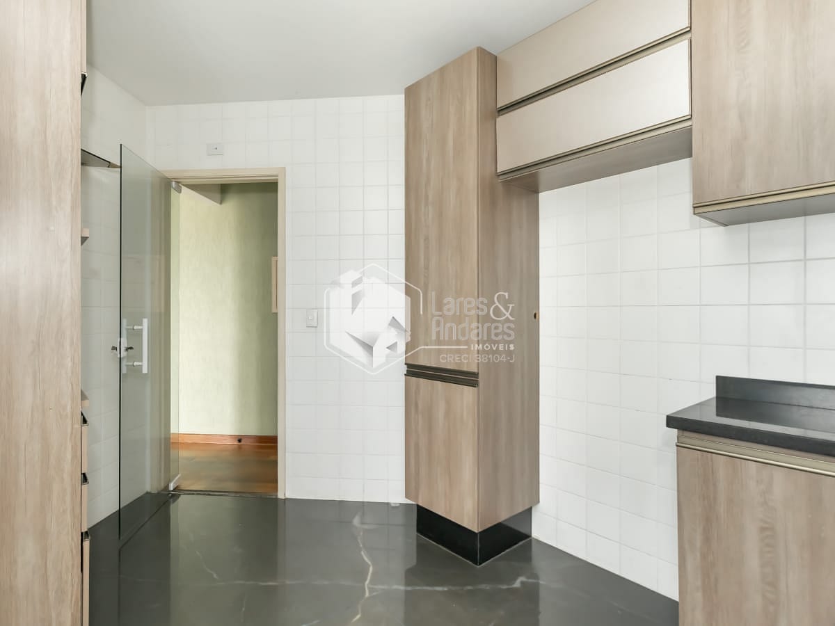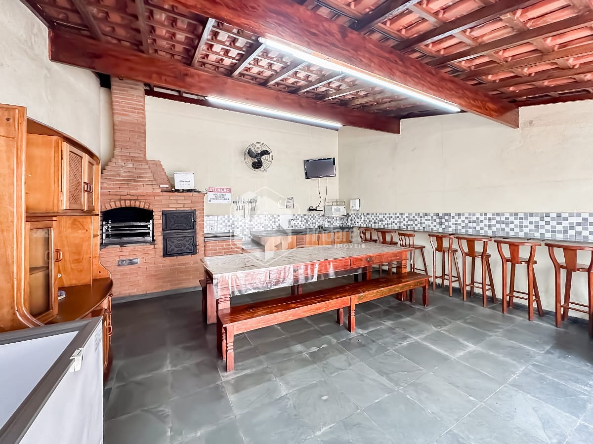 A sala é aconchegante, integrada à sacada com vista, ideal para momentos de descanso. A cozinha planejada alia design e praticidade, com armários sob medida, além de área de serviço bem ventilada.
