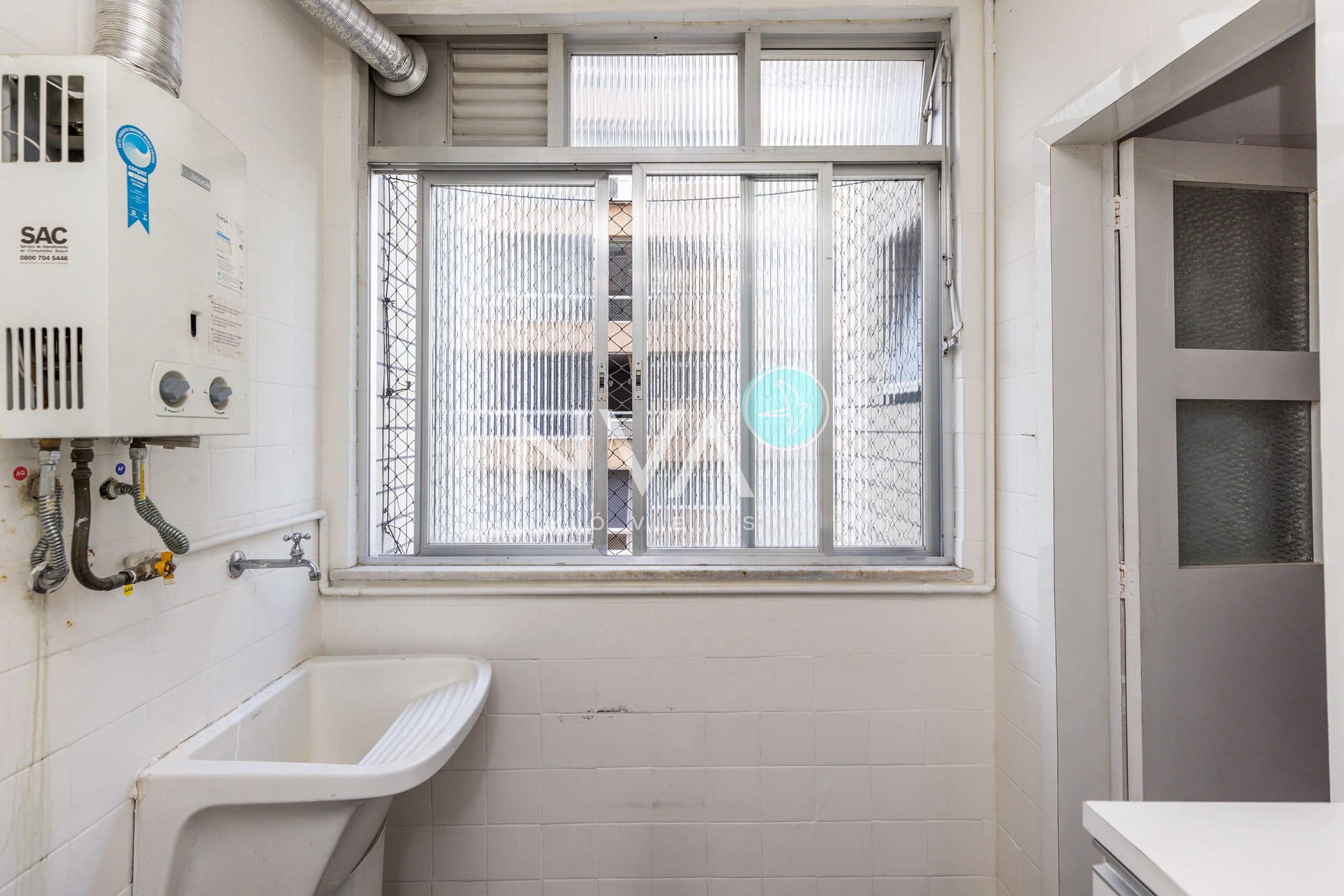 O apartamento possui uma cozinha ampla, com armários, e um quarto de serviço, além de ar-condicionado e aquecimento a gás. O banheiro também conta com armários, proporcionando praticidade e conforto aos moradores. A sala espaçosa e os três dormitórios oferecem ótima distribuição do espaço, tornando o imóvel ideal para famílias ou casais.