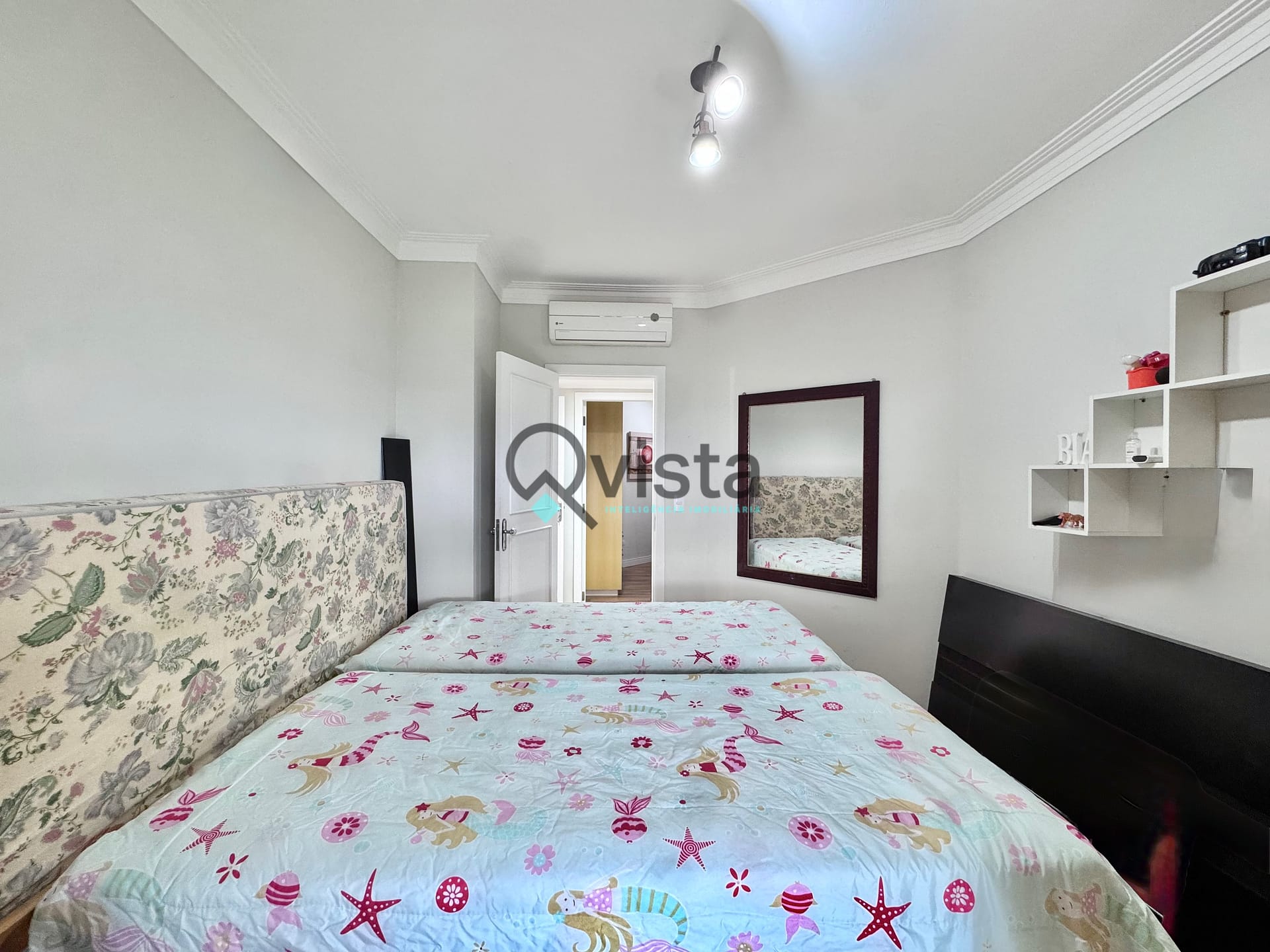 Ar condicionado na sala e no quartos;