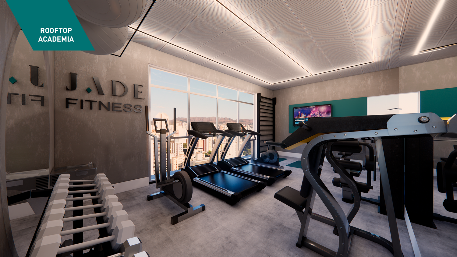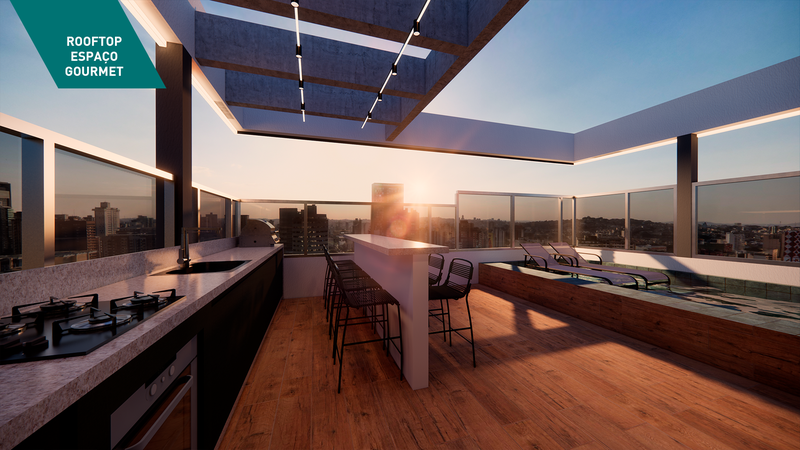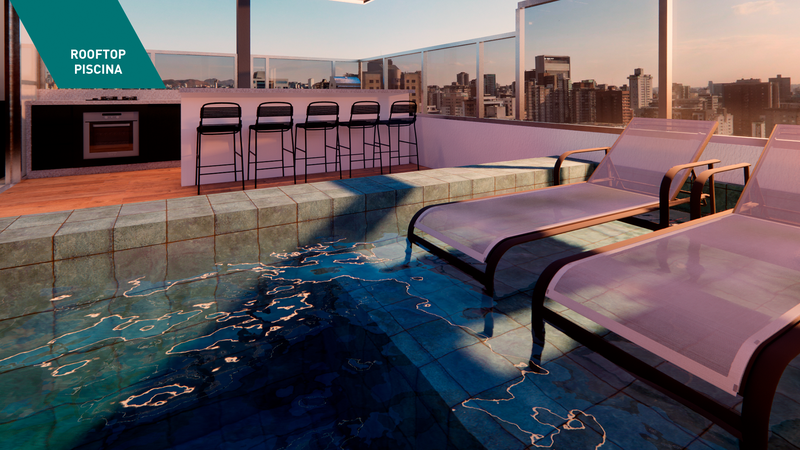 Lazer no rooftop, com uma vista incrível da cidade